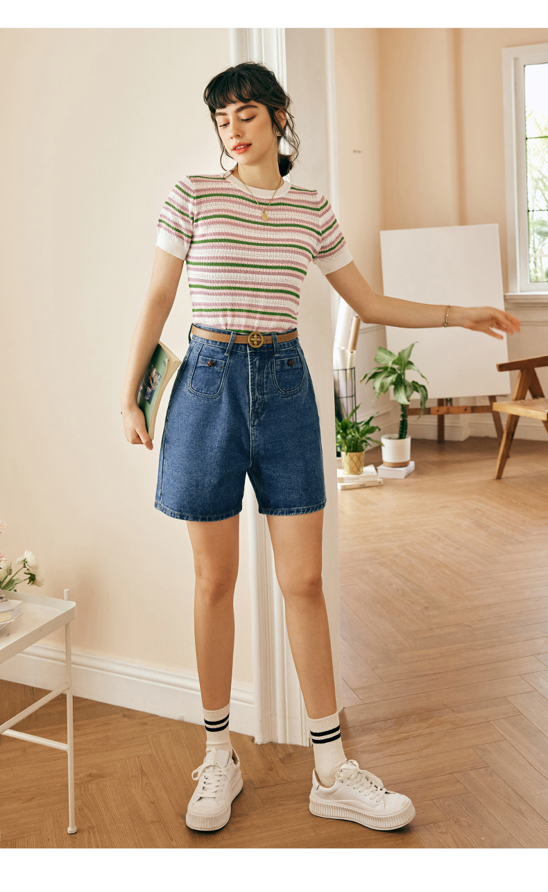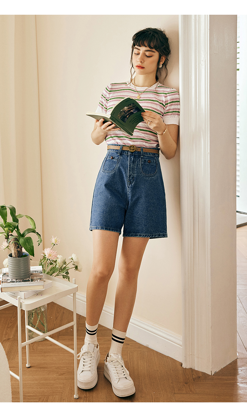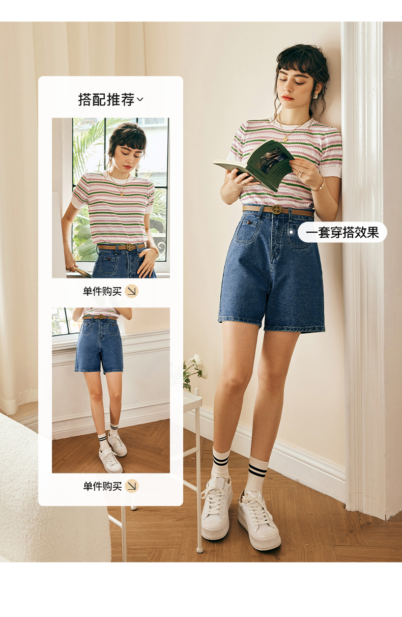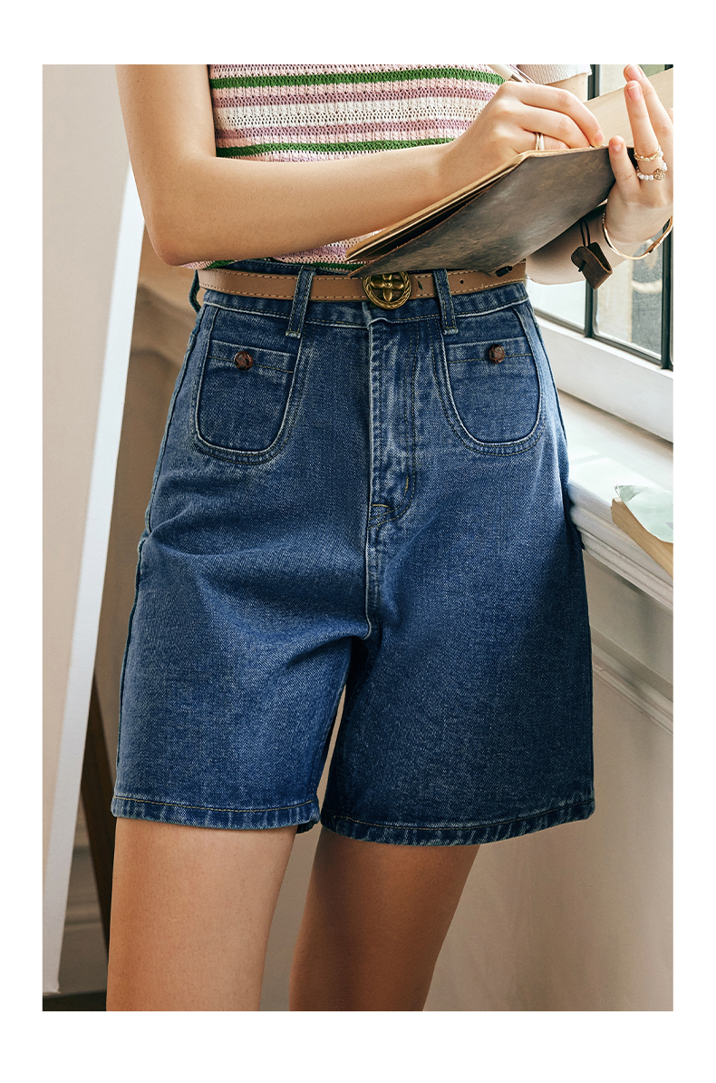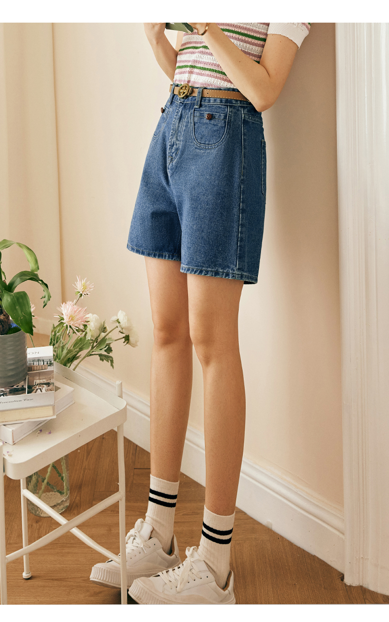 OLrain欧芮儿法式短款牛仔裤女春季2023年新款高腰阔腿直筒五分裤