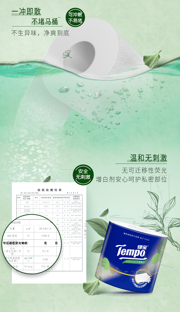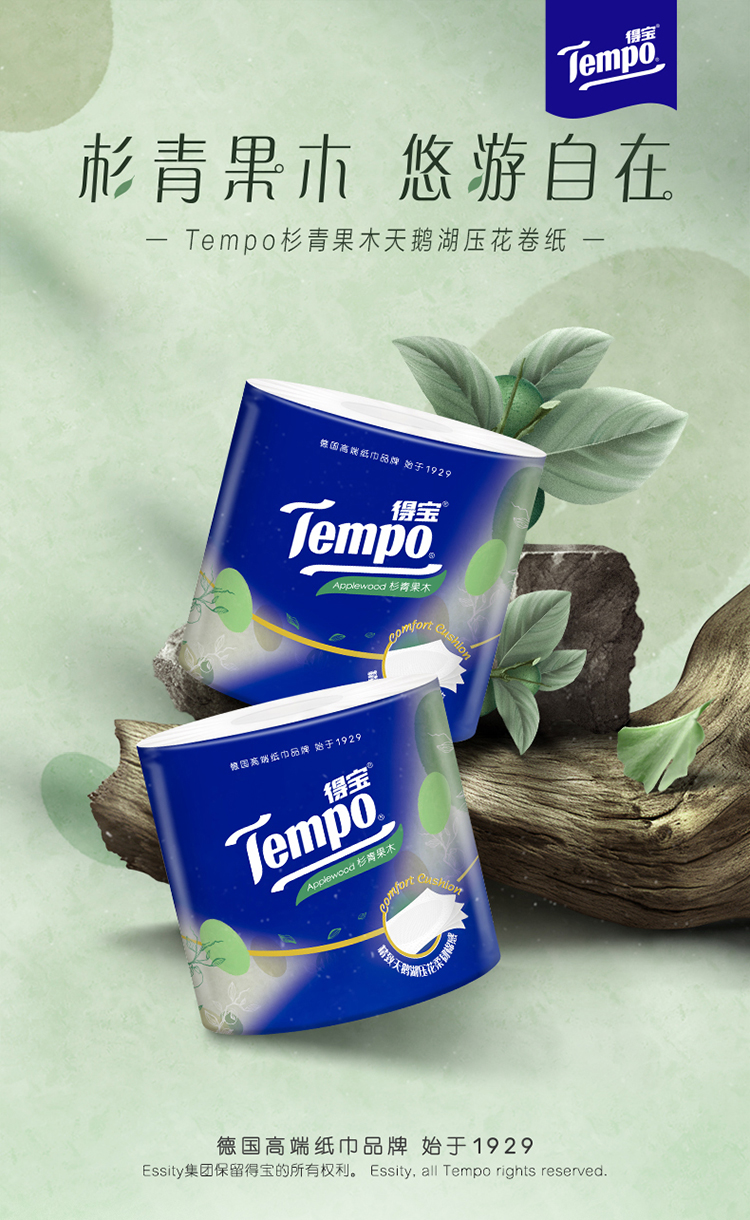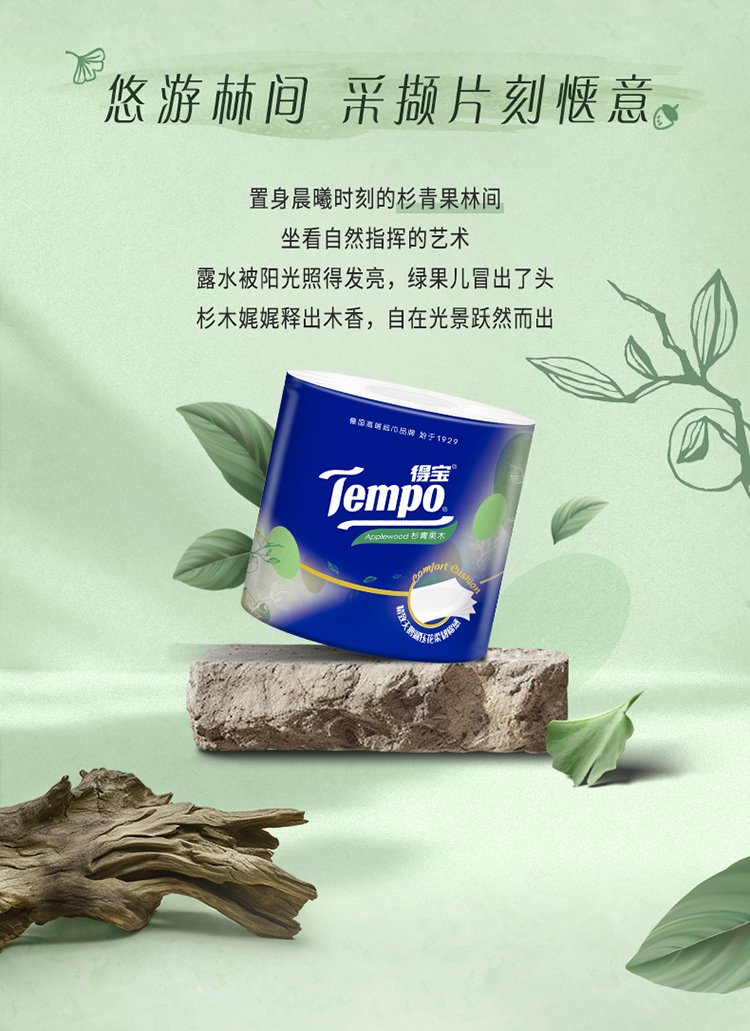 『得宝Tempo』杉青果木香味卷纸160克16卷 天鹅湖压花 易冲散