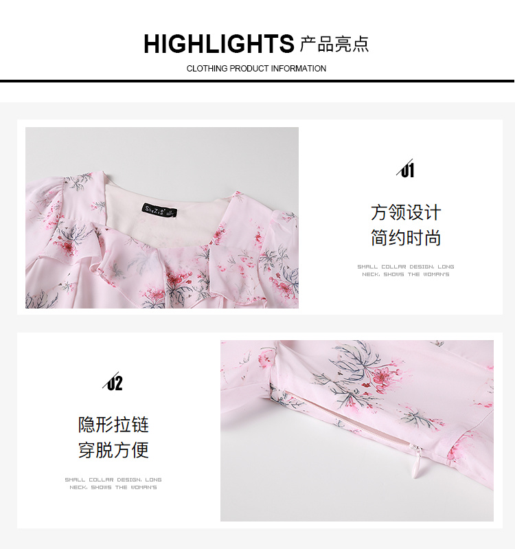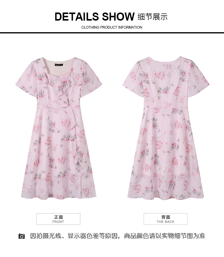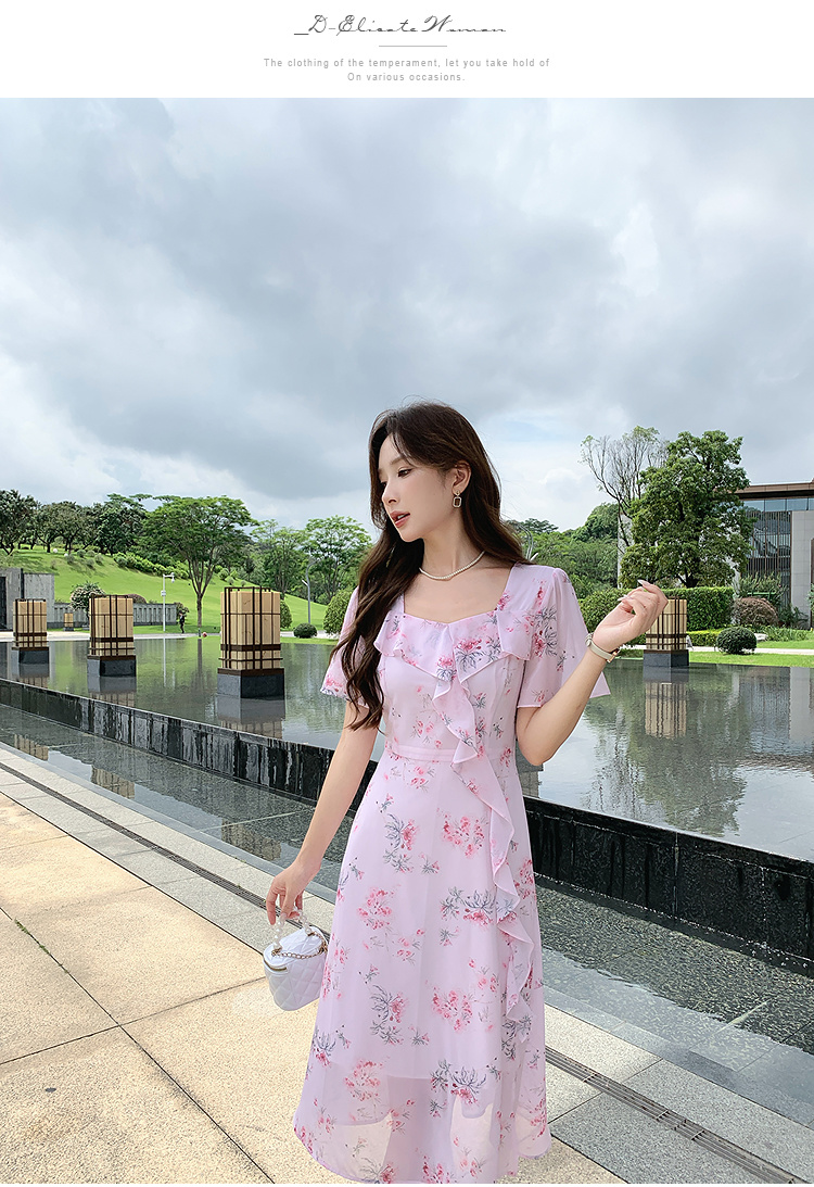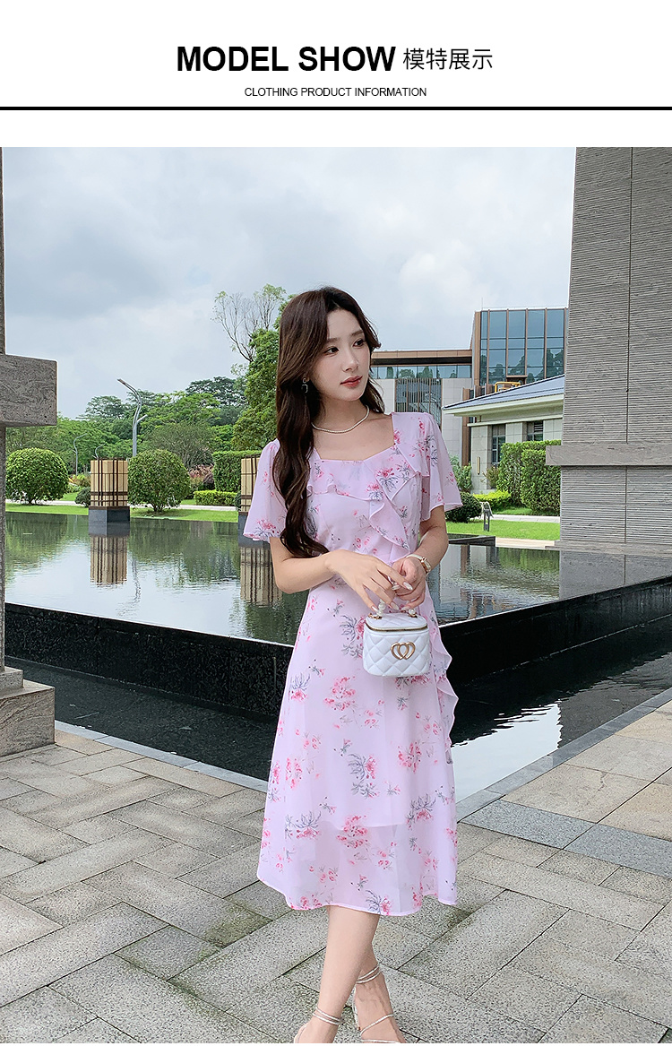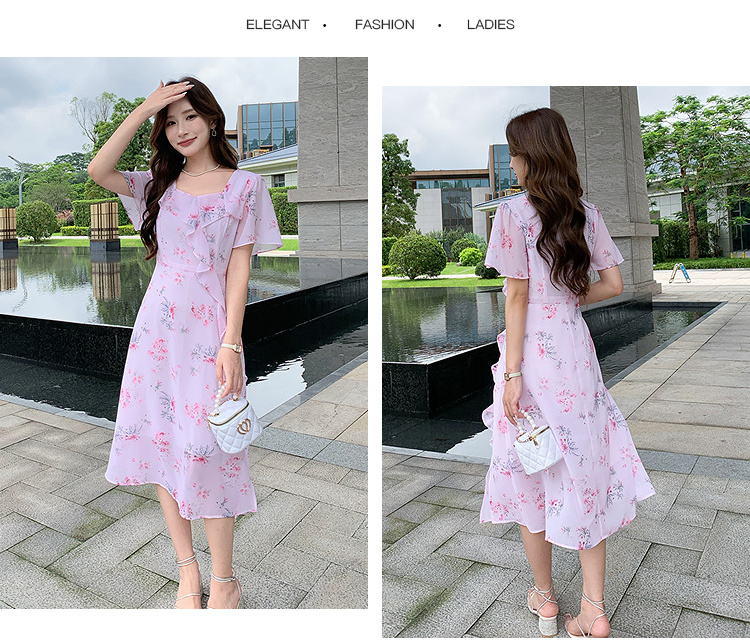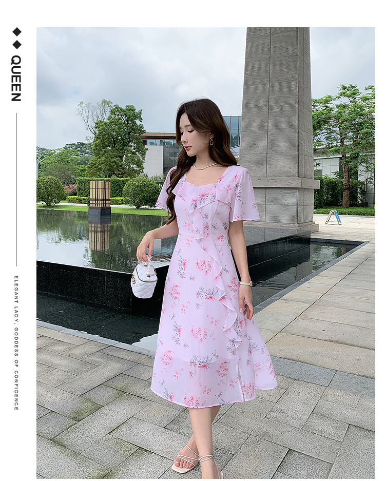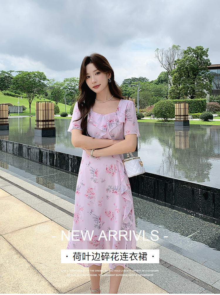 奢姿大码女装2025夏季减龄荷叶边方领连衣裙胖妹妹碎花时尚裙子9952858492
