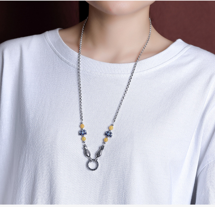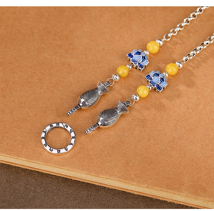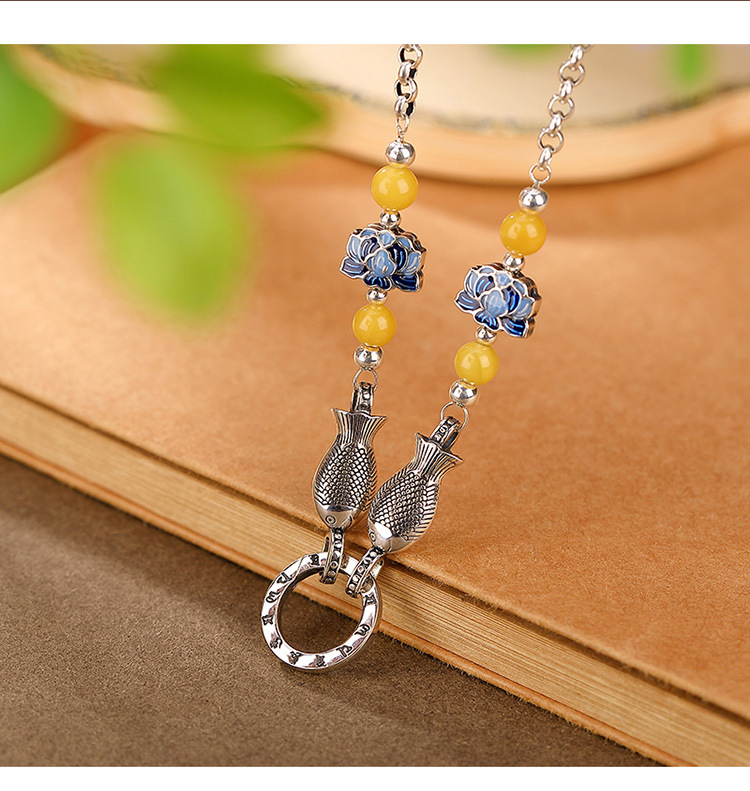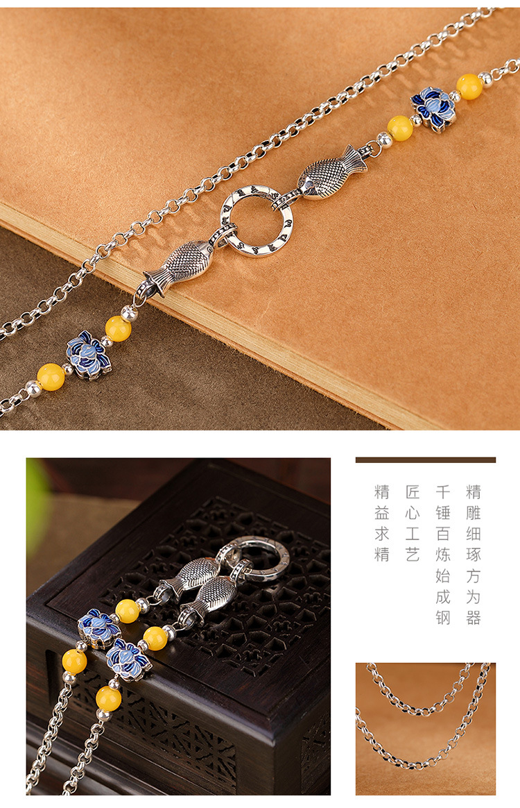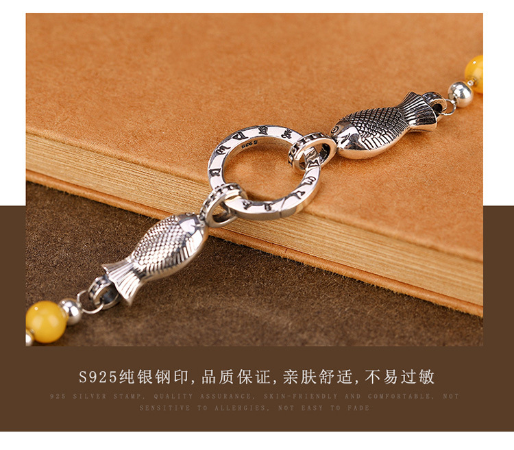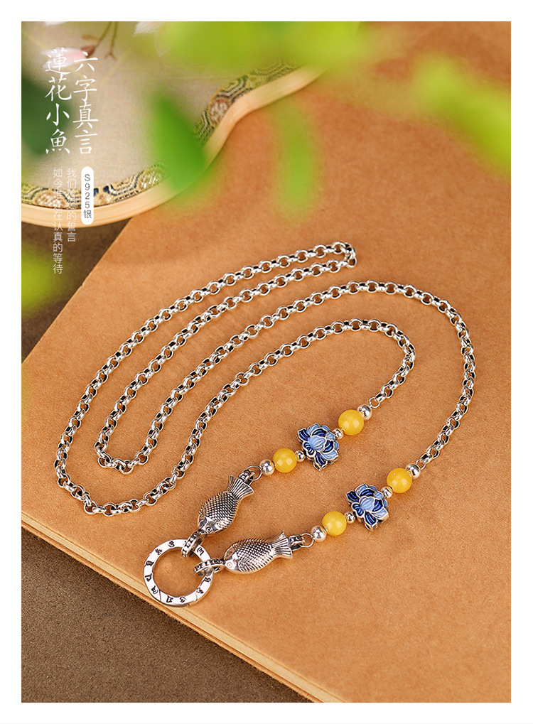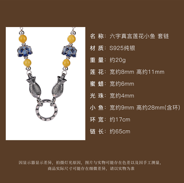 【莲花小鱼】S925纯银景泰蓝蜜蜡六字真言百搭套链【CW-23225】