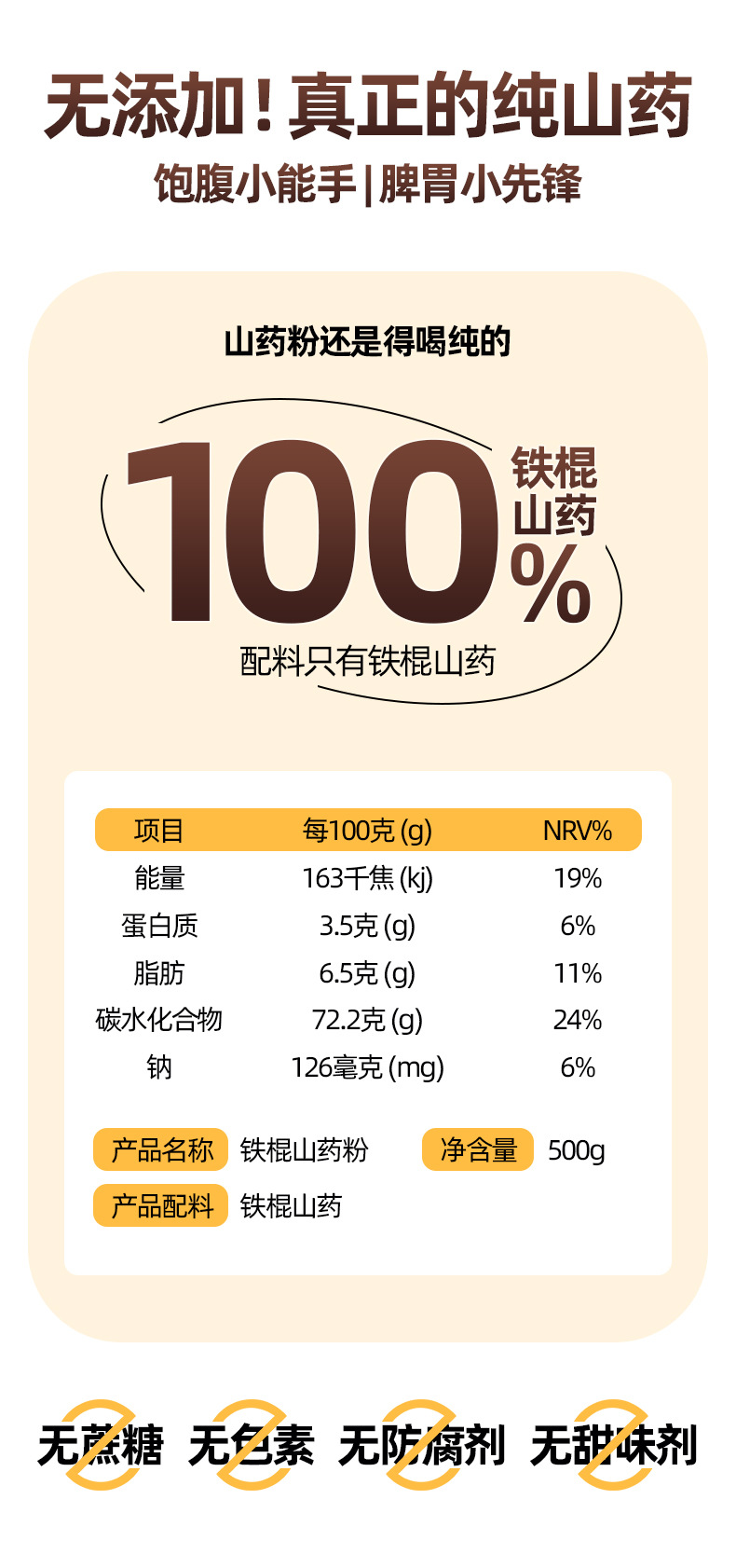 【纯铁棍山药粉】铁棍山药粉500g 冲泡即食养淮怀山药粉胃河南焦作山药糊