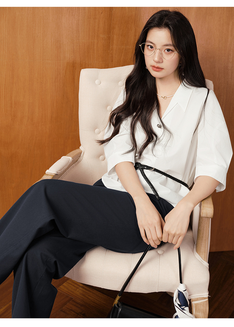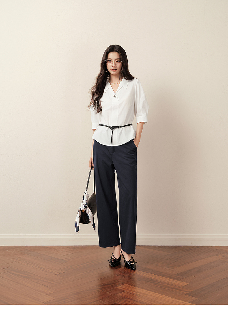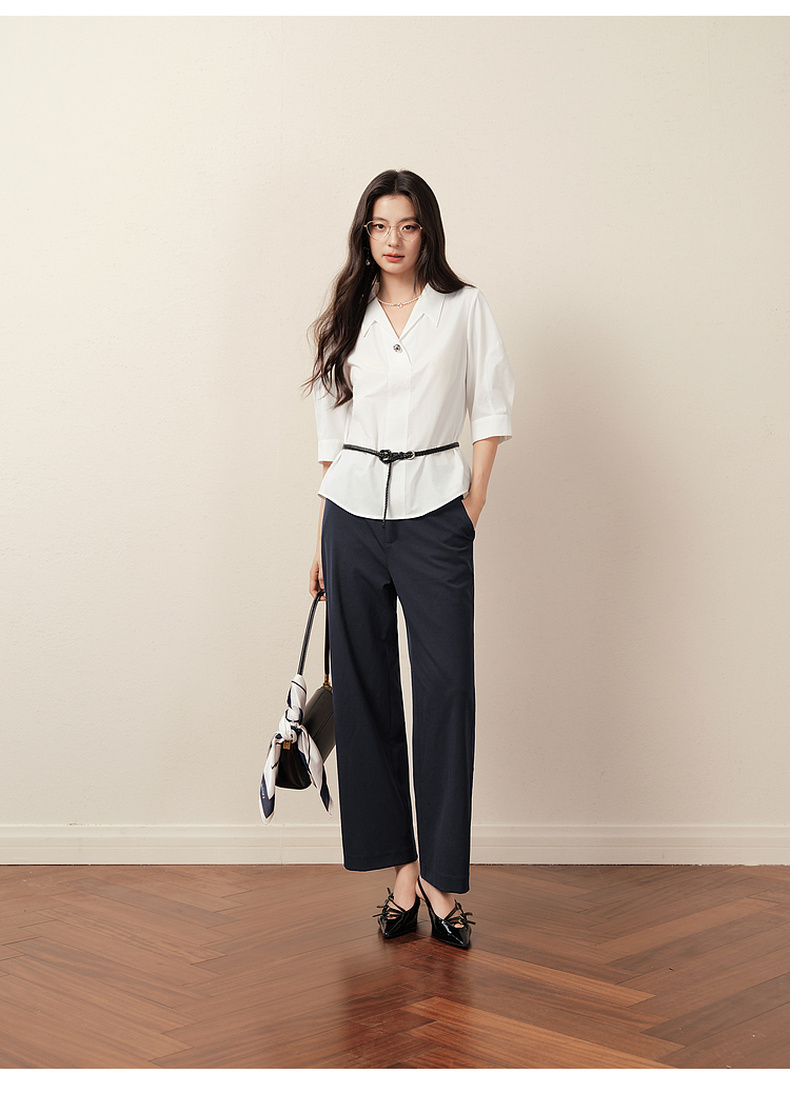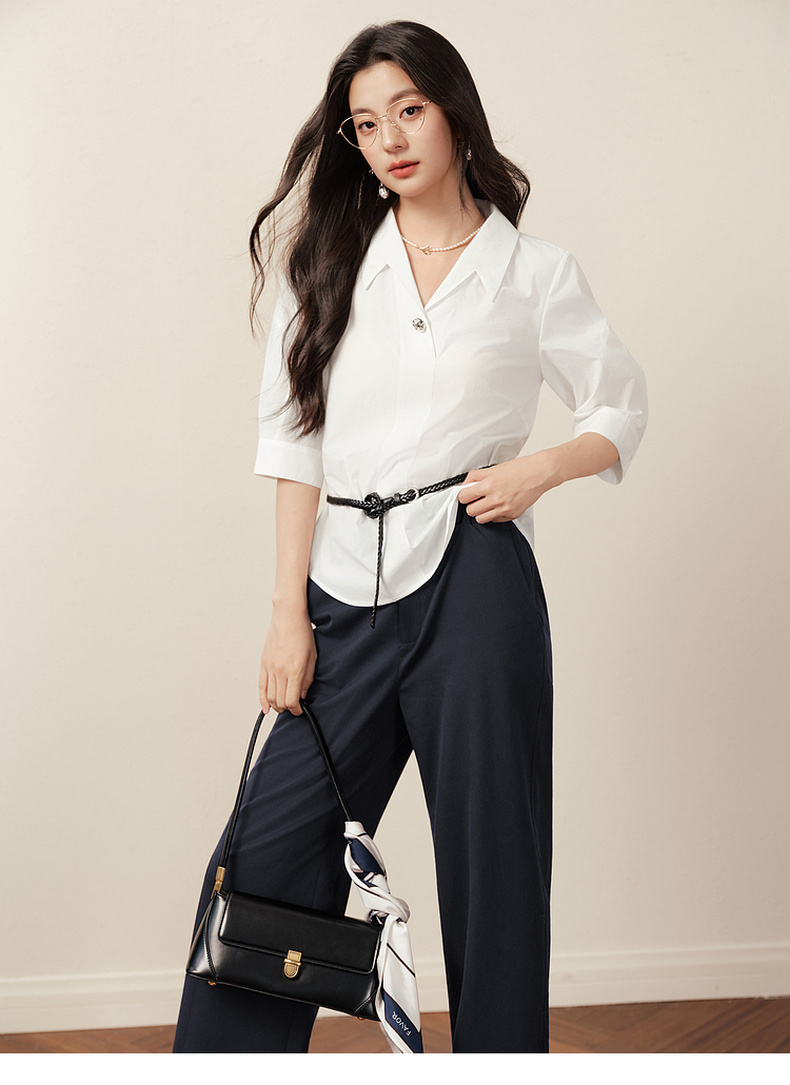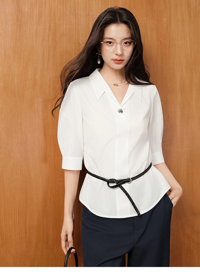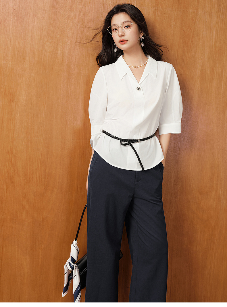 【商场同款】诗凡黎翻领通勤衬衫2025秋新款七分袖上衣3G7121241