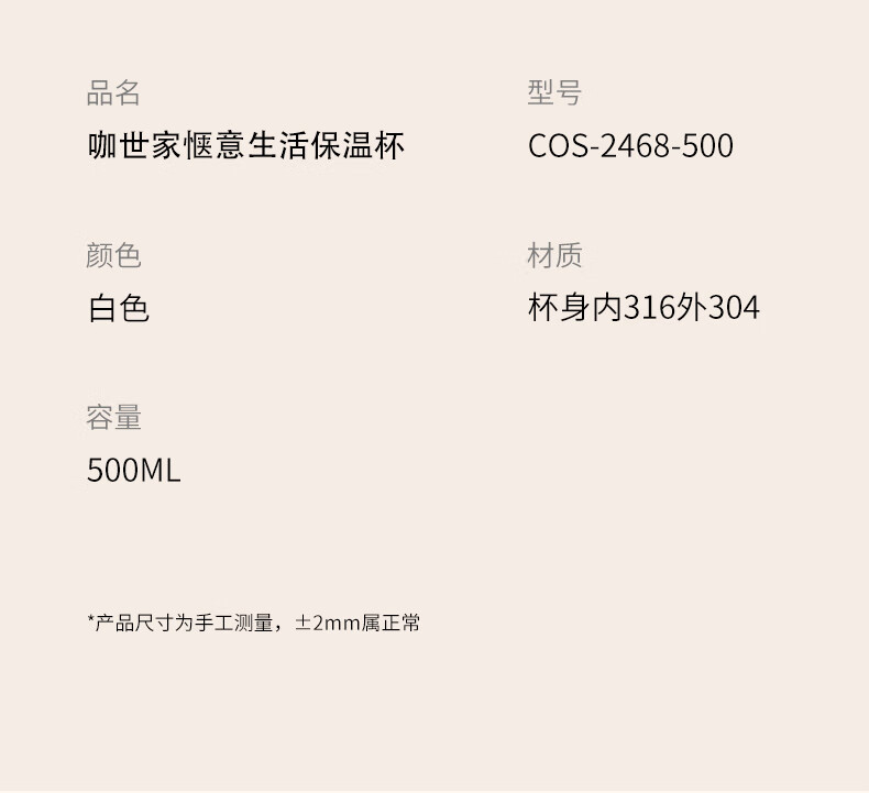 【分仓直发包邮】Costa咖世家惬意生活保温杯COS-2468-500