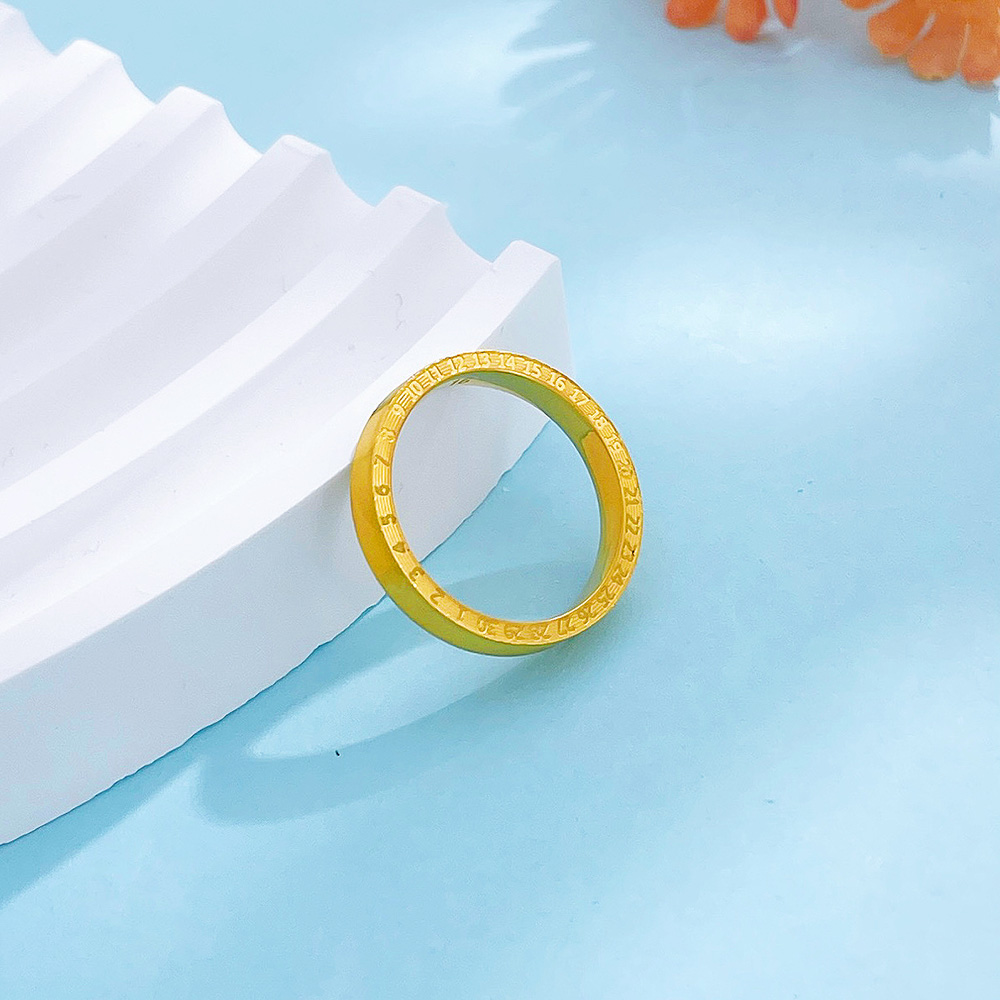【限时克减150元】足金999.9 #520快乐 #怦然心动 【精品】空心固口时光爱恋爱心数字年轮圈戒(面宽约3.1-3.5mm)(ANWJZ00121)预售产品下单后不退款不退货不换货不补差价