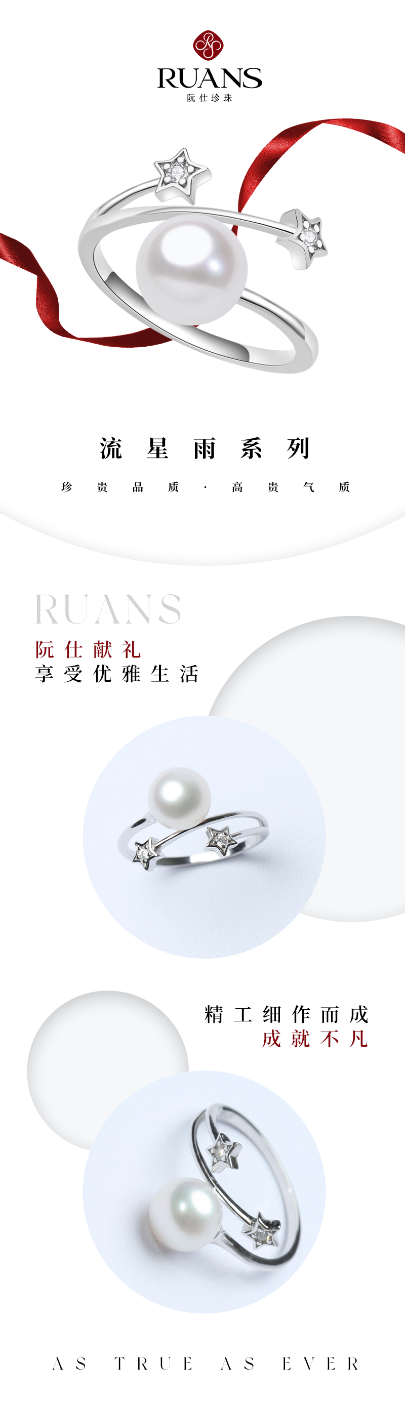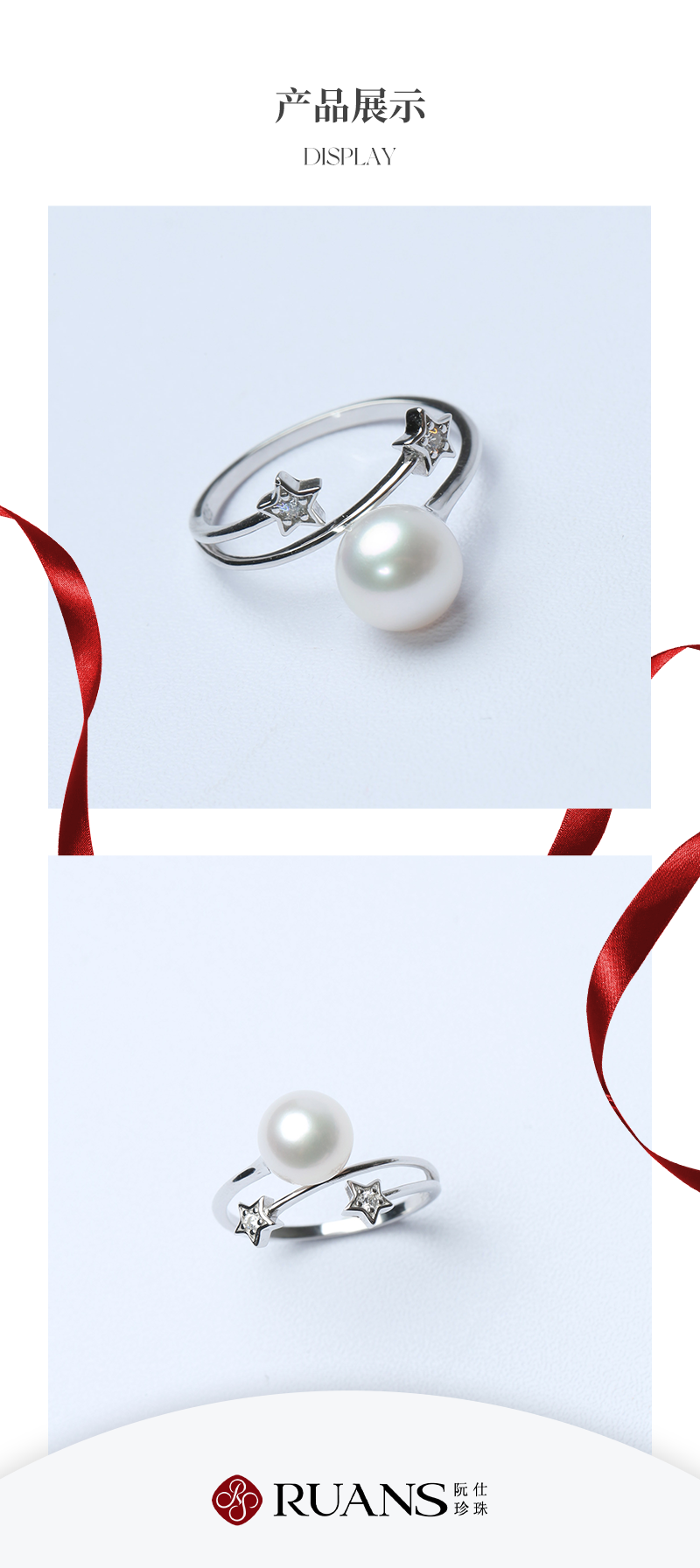 阮仕流星雨系列 S925银淡水珍珠戒指 7.5-8mm 正圆无瑕 极强光