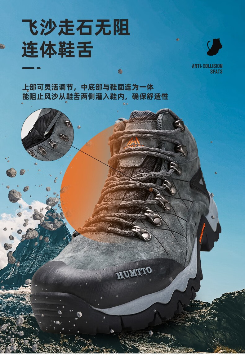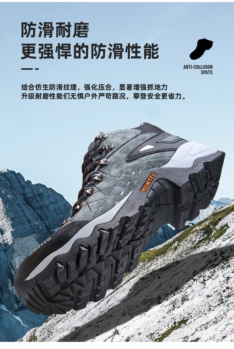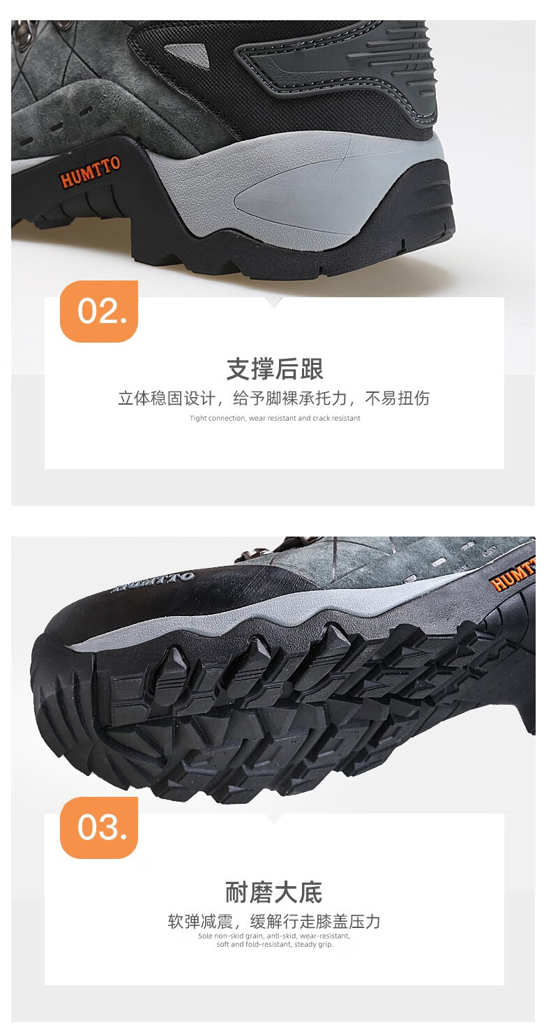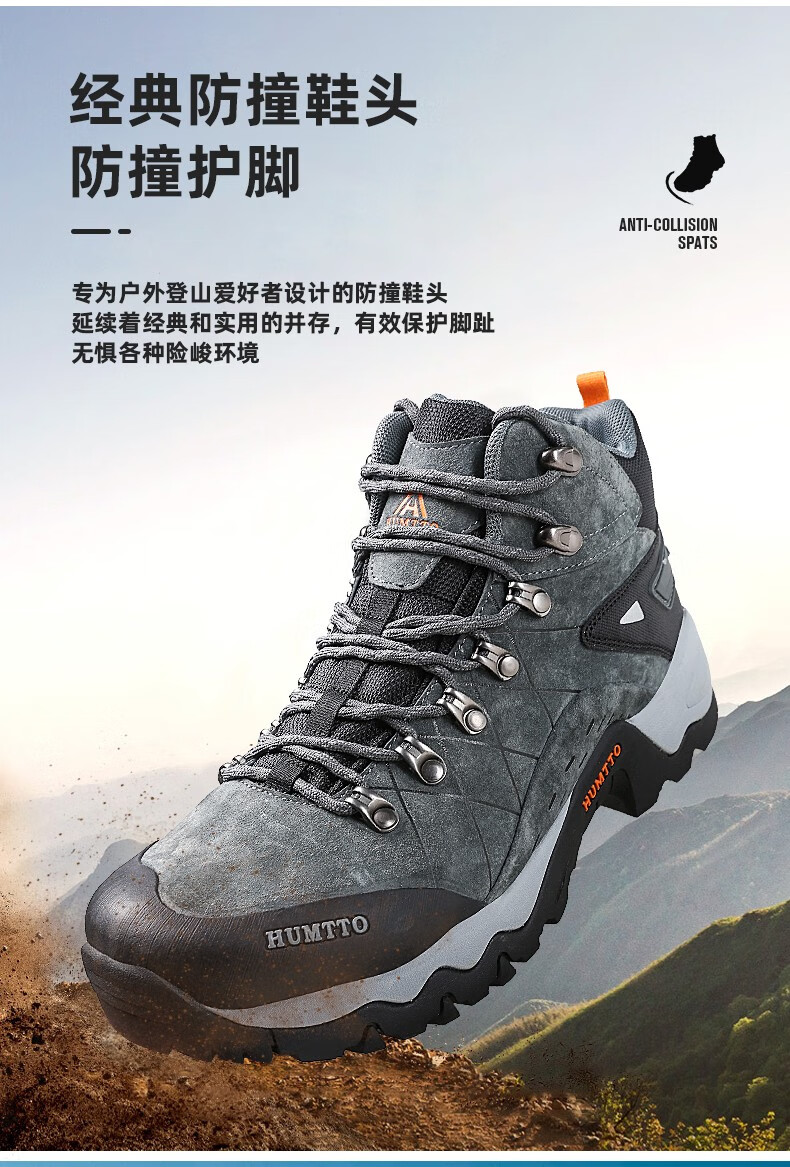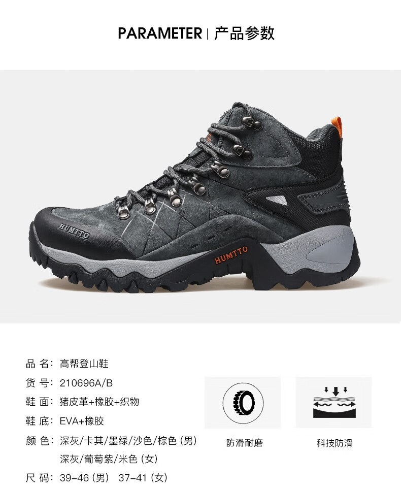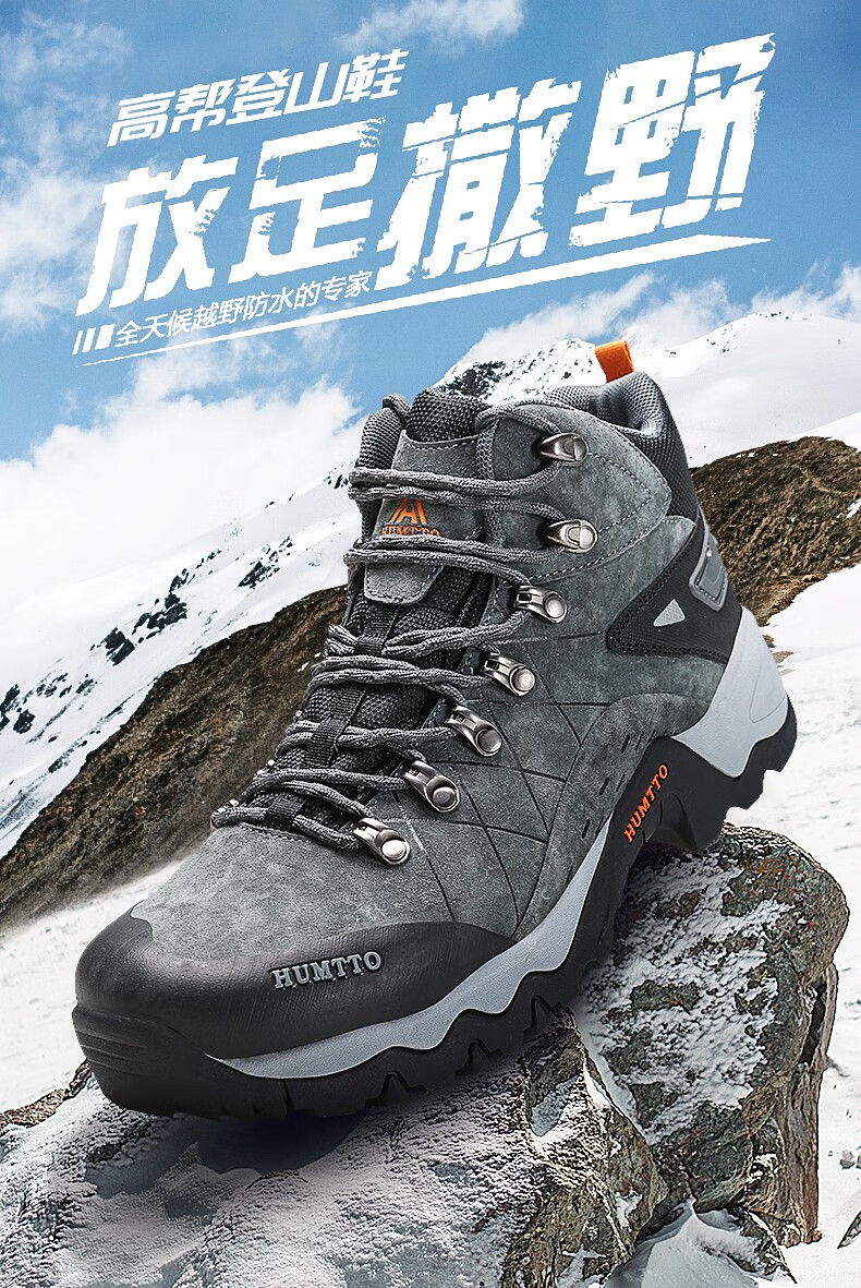 悍途(HUMTTO)秋冬新款户外防滑耐磨缓震情侣款高帮登山鞋210696
