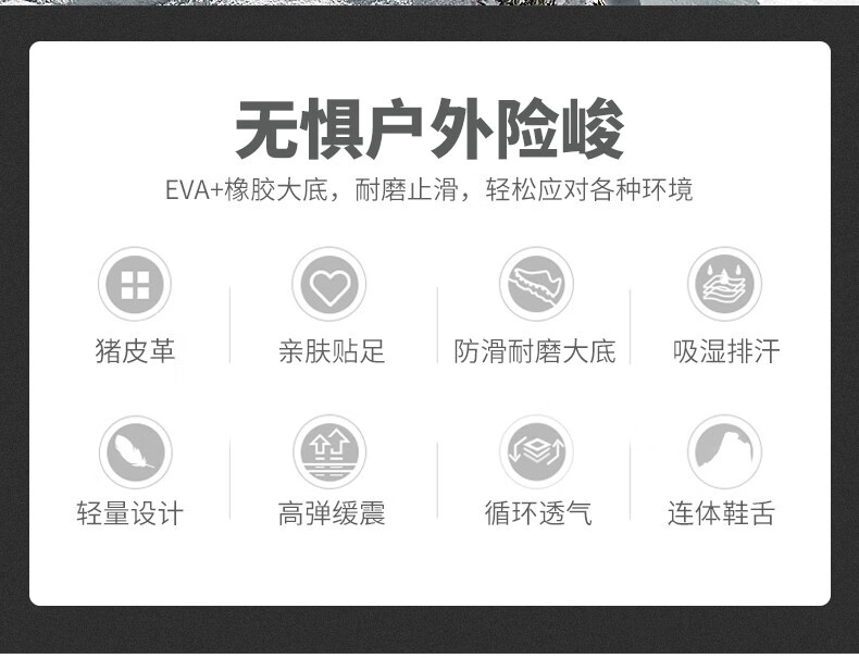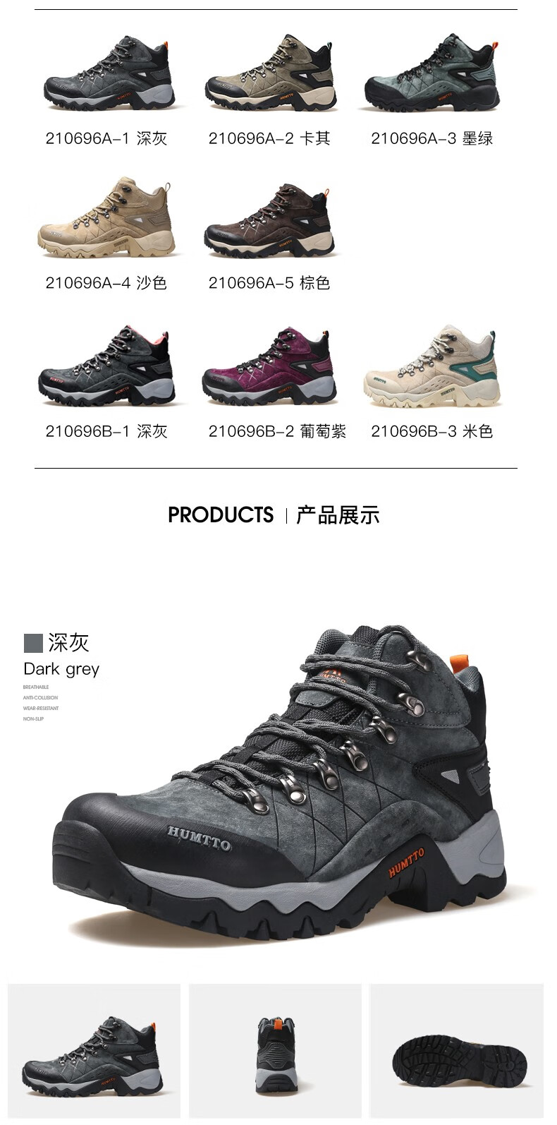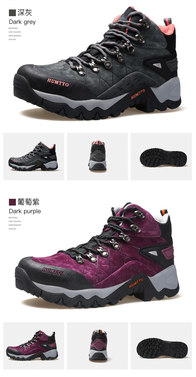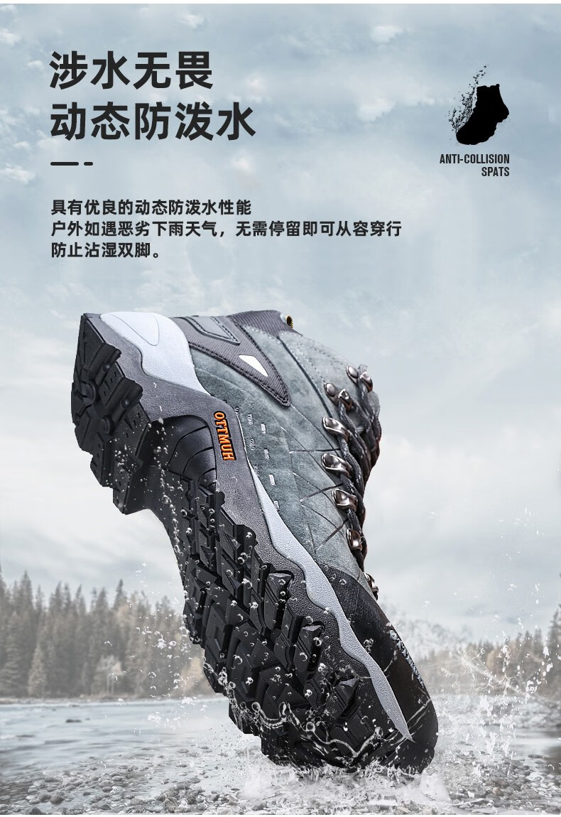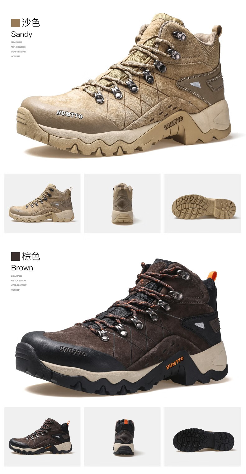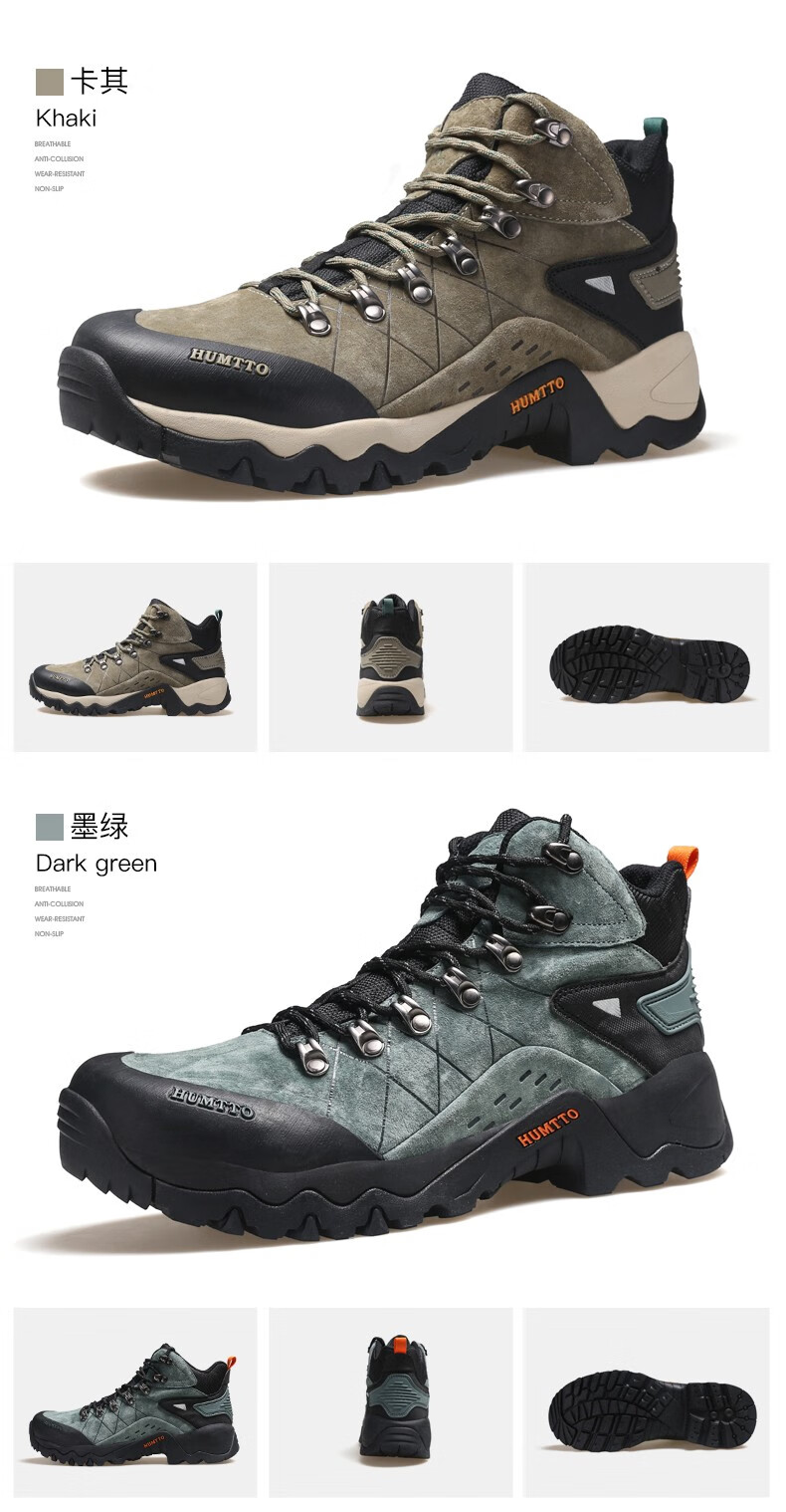 悍途(HUMTTO)秋冬新款户外防滑耐磨缓震情侣款高帮登山鞋210696