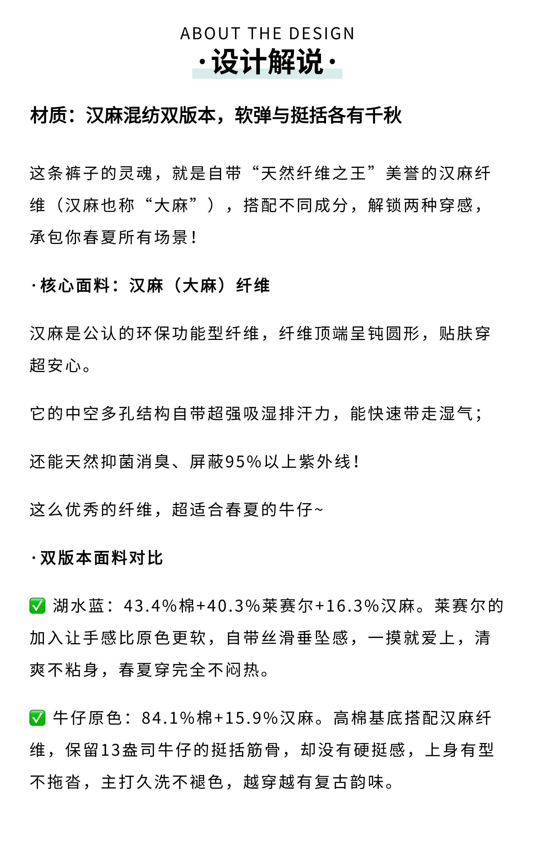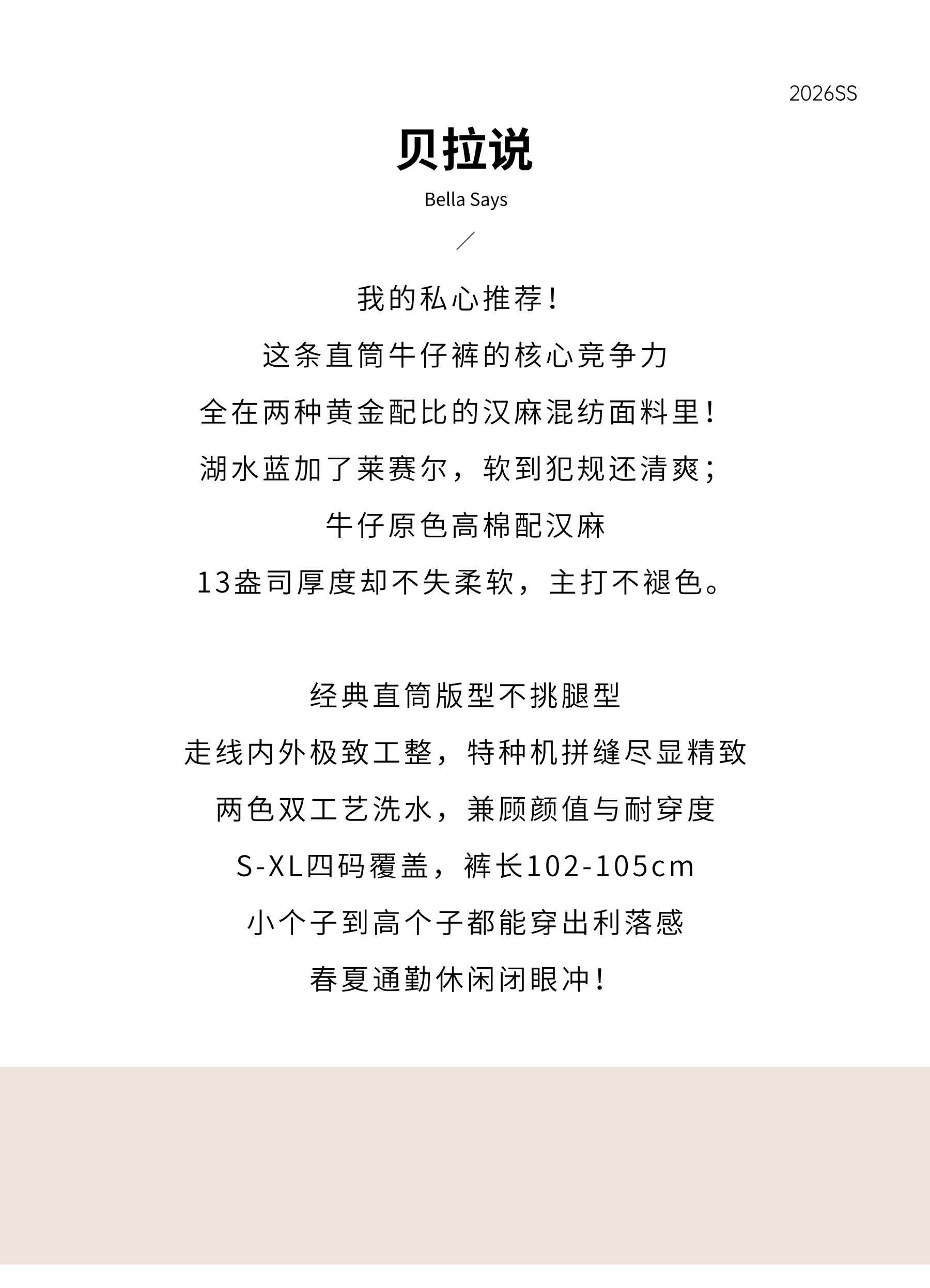 【贝拉推荐】定格时刻 直筒牛仔裤 汉麻混纺双版本牛仔 软弹与挺括一次满足 天然YI菌 抗紫外线 会呼吸的牛仔