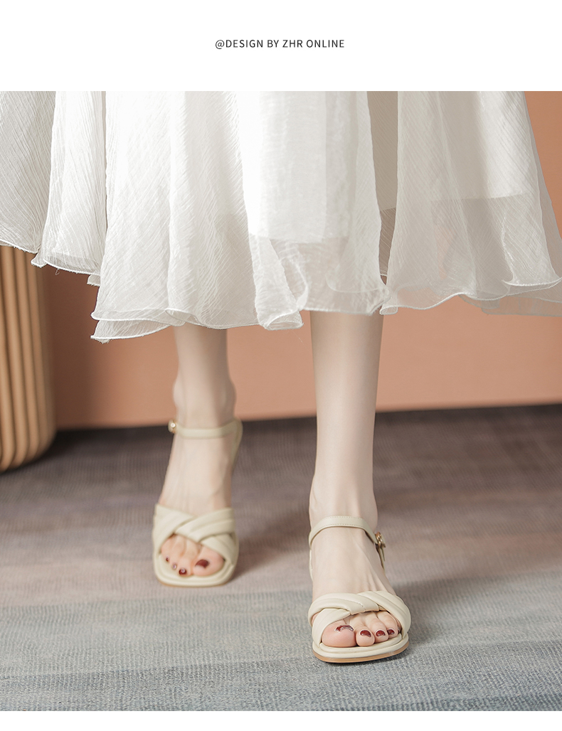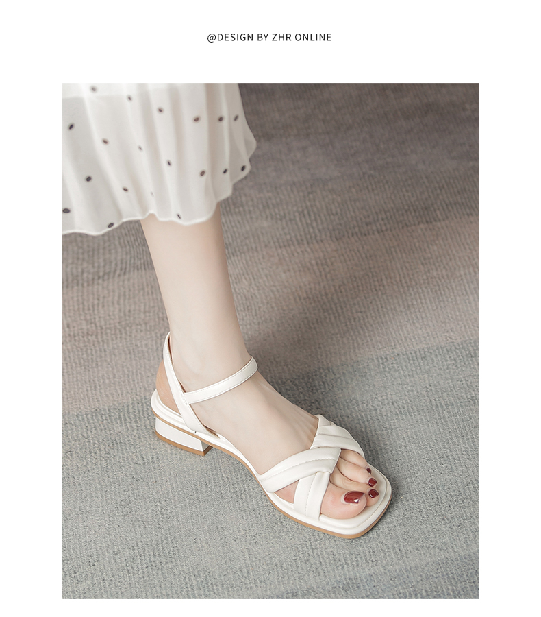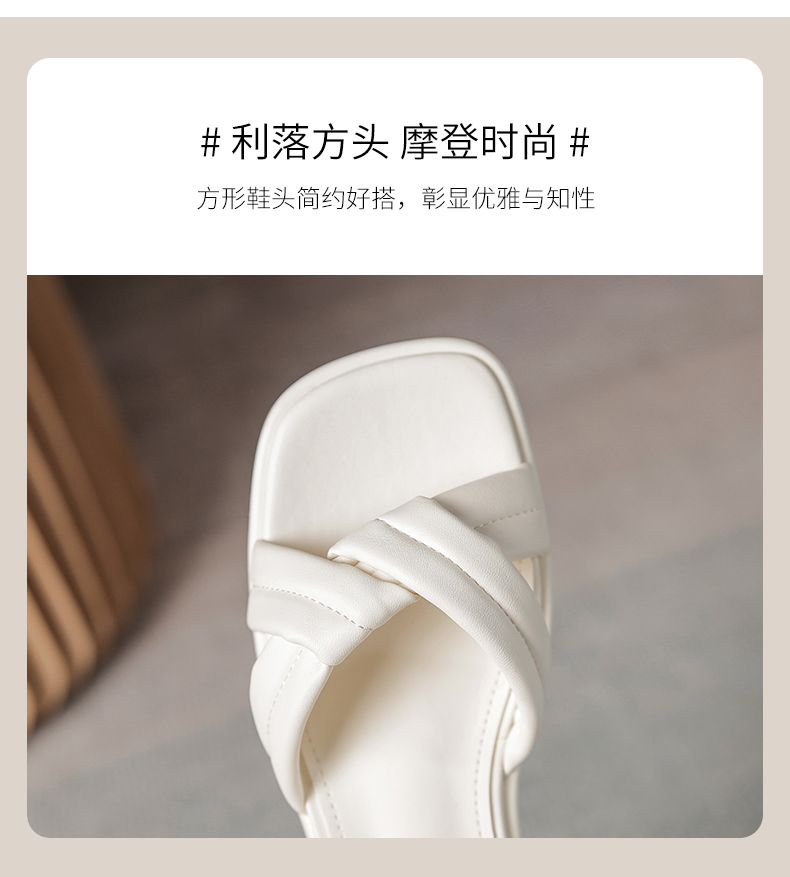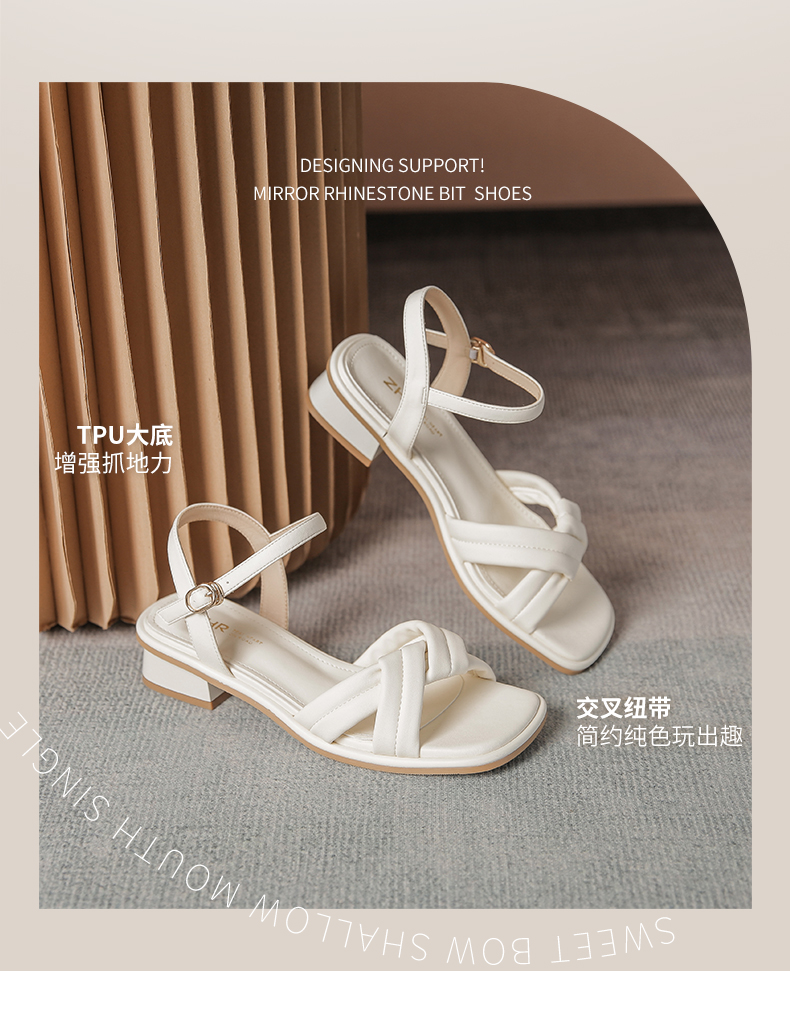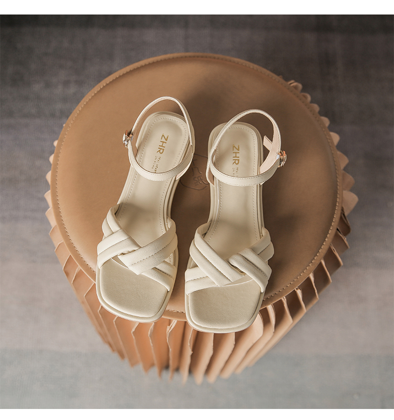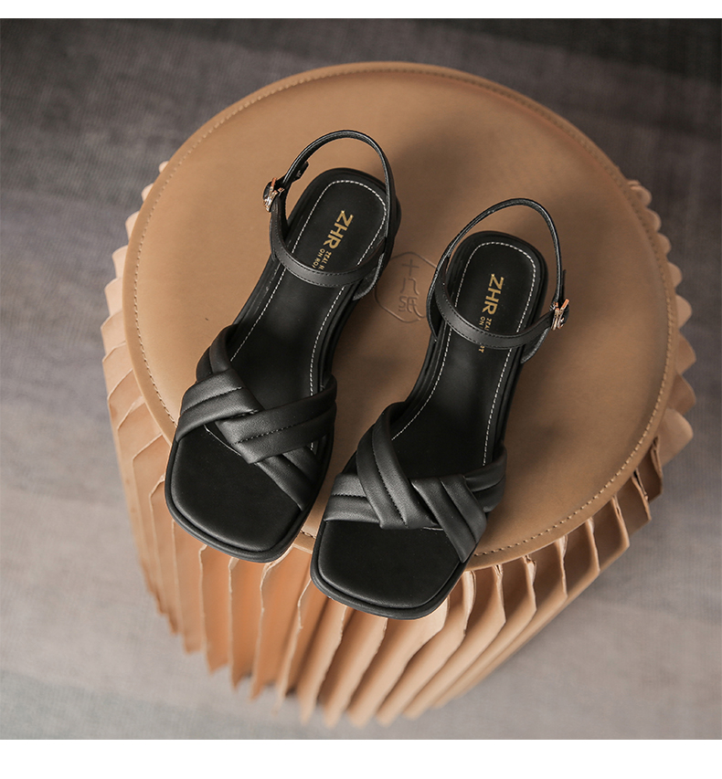 ZHR方头凉鞋名媛小香风女2023新款复古优雅女单鞋通勤轻便时装鞋