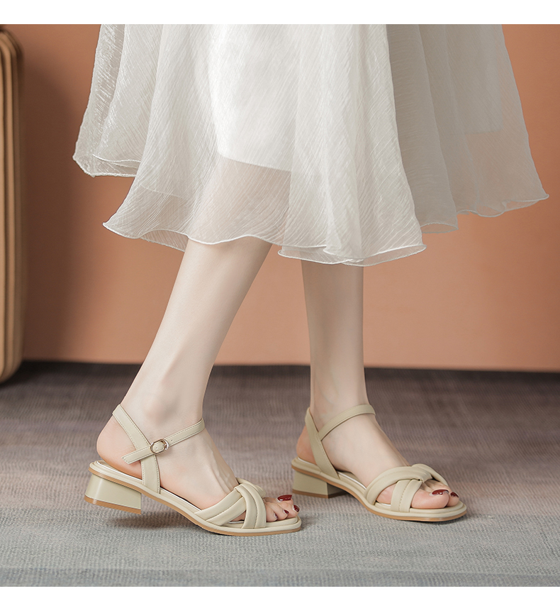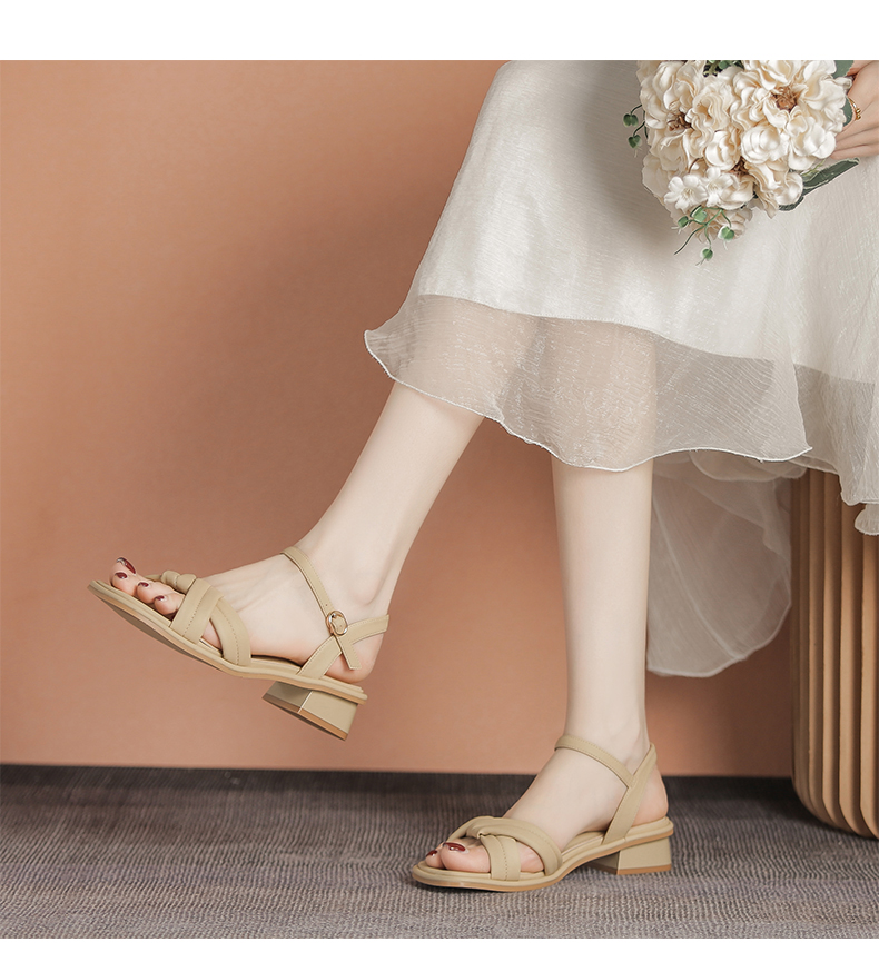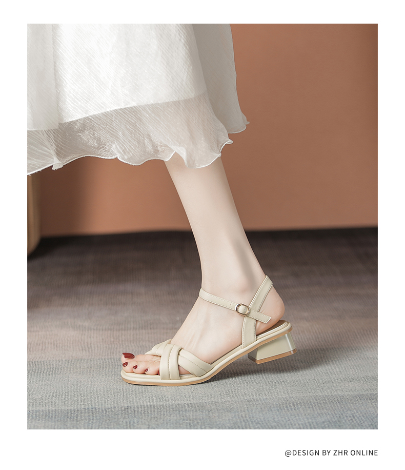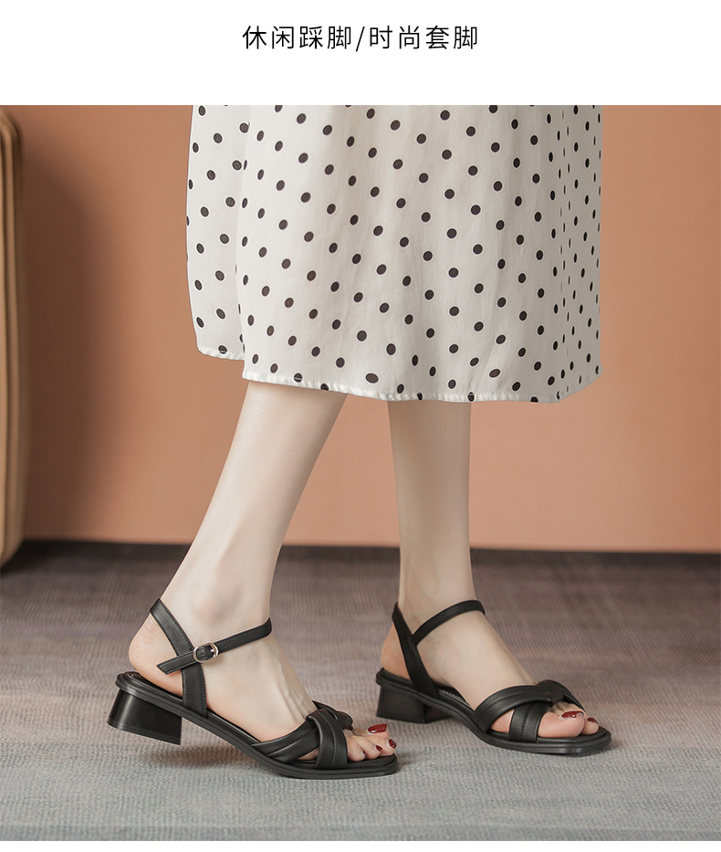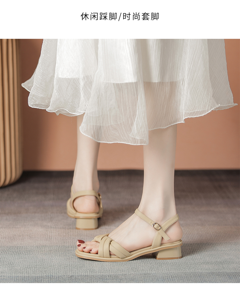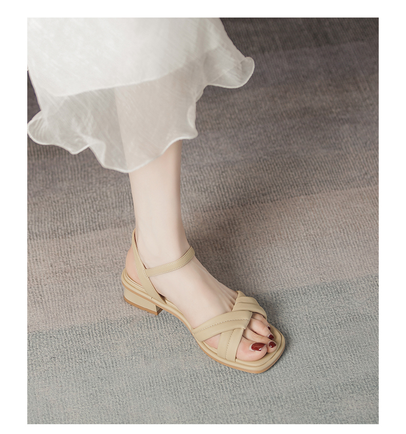 ZHR方头凉鞋名媛小香风女2023新款复古优雅女单鞋通勤轻便时装鞋