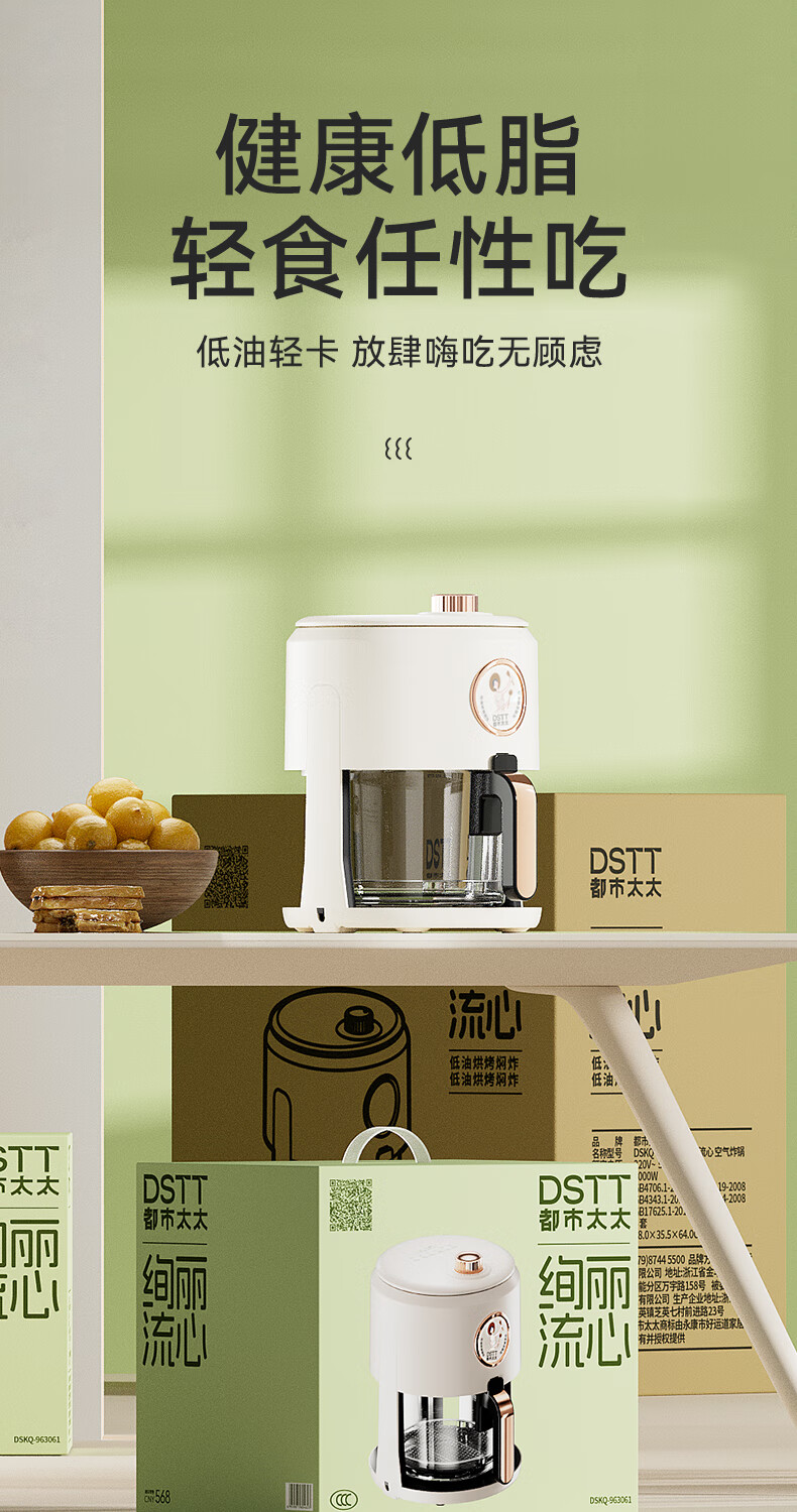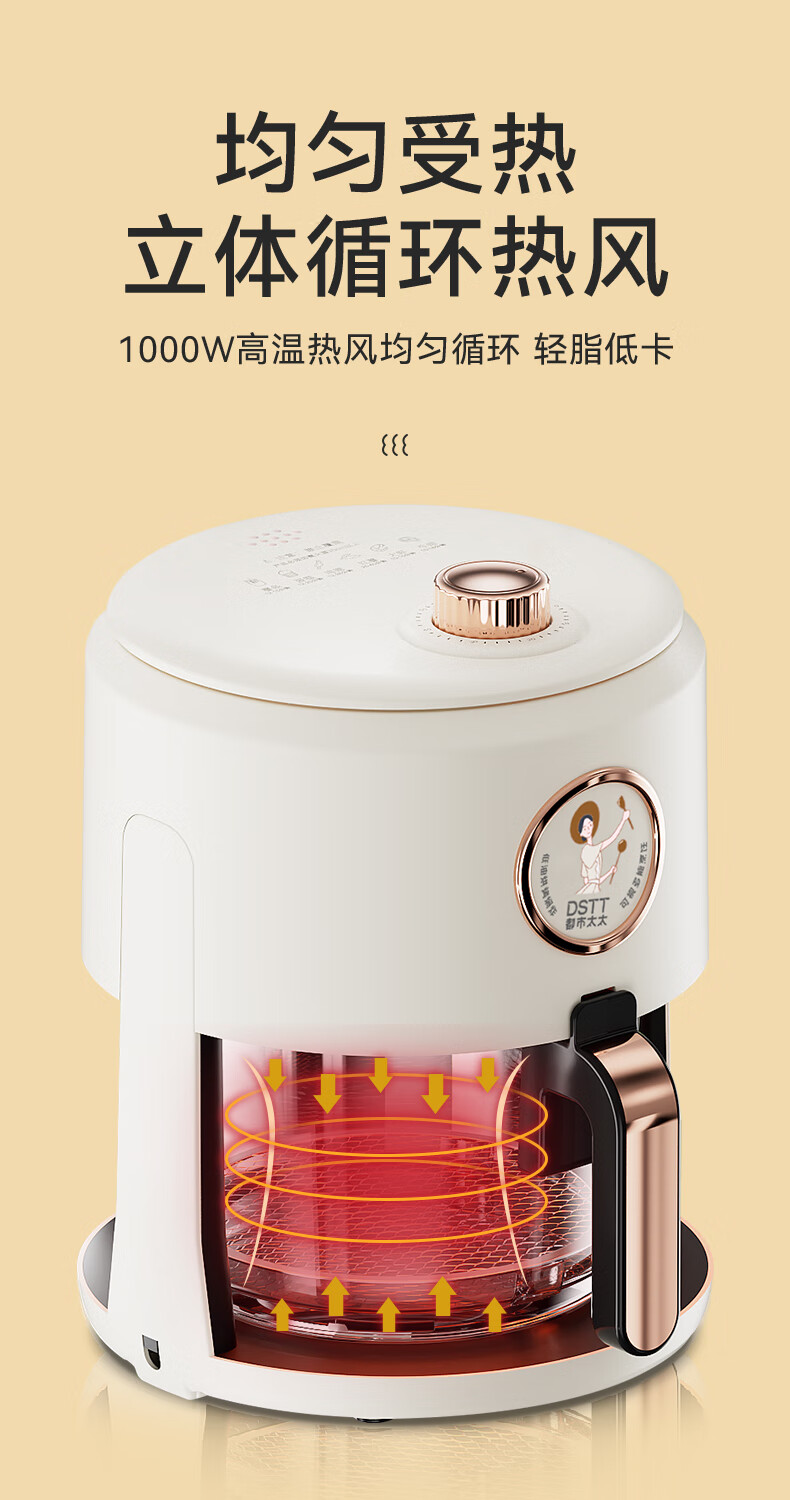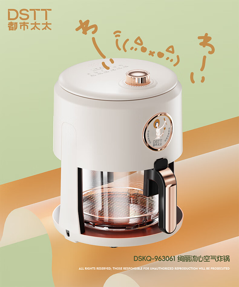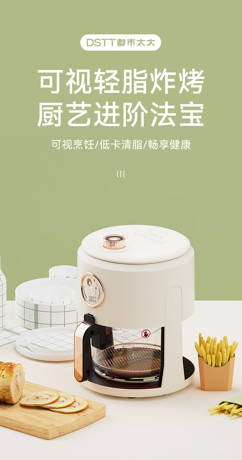 都市太太都市太太绚丽流心空气炸锅家用3L容量不用翻面高效烘烤蒸汽嫩炸无油低脂可视空气炸锅
