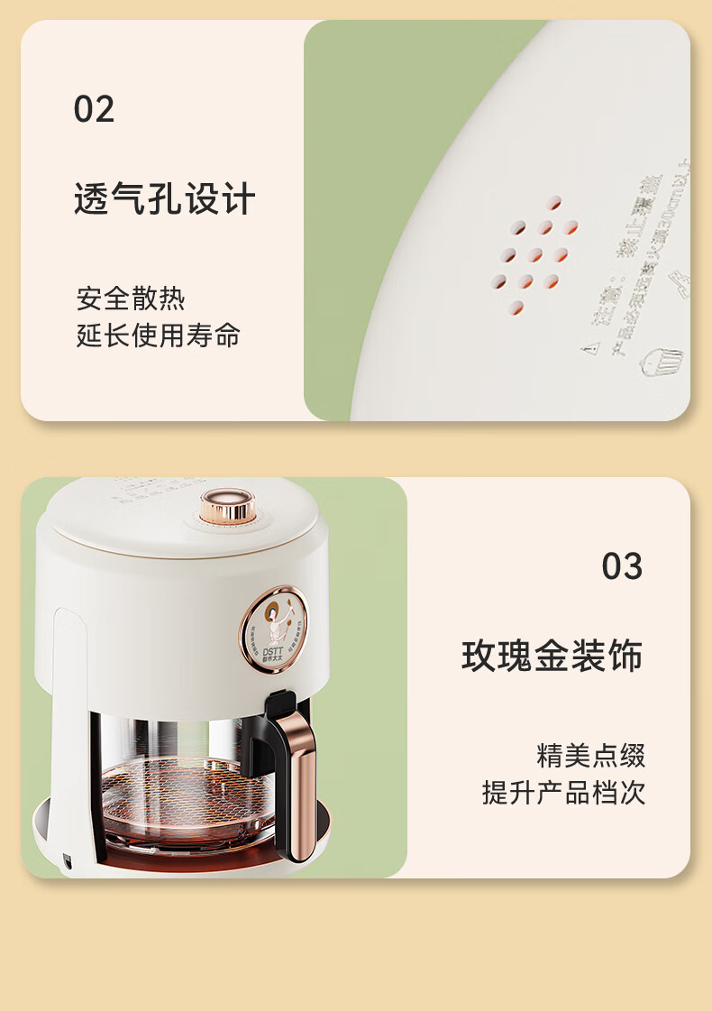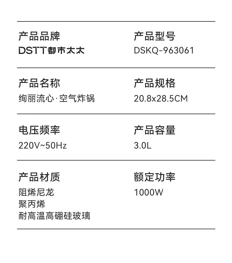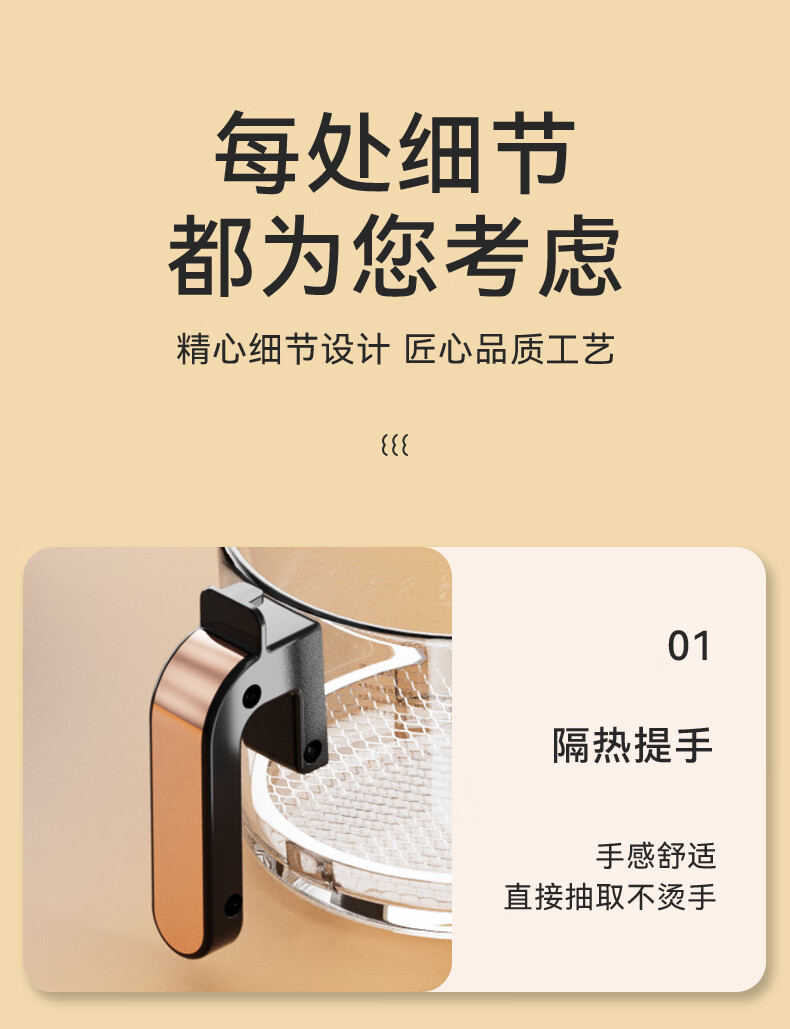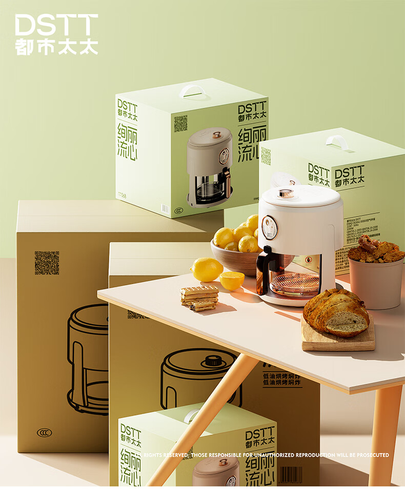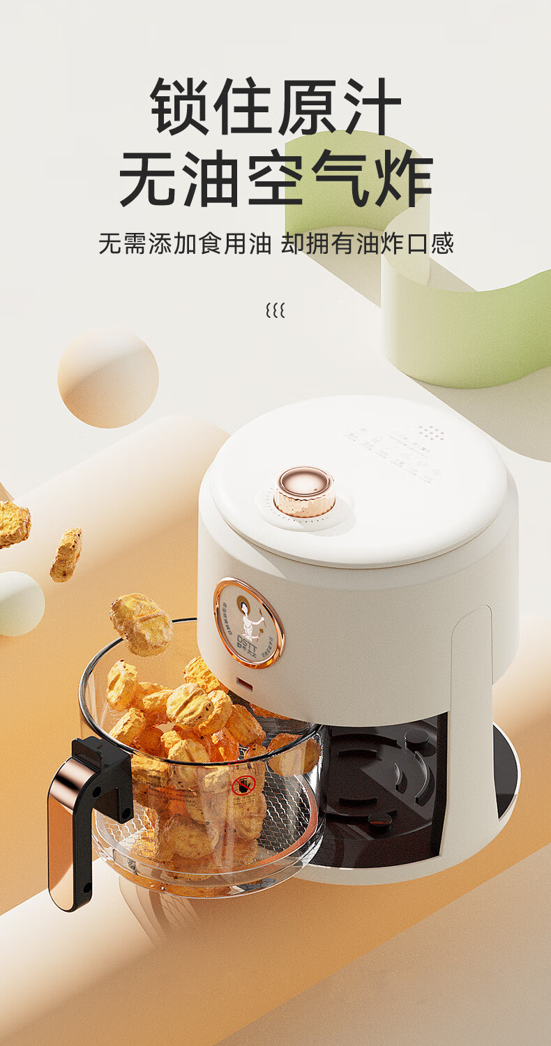 都市太太都市太太绚丽流心空气炸锅家用3L容量不用翻面高效烘烤蒸汽嫩炸无油低脂可视空气炸锅