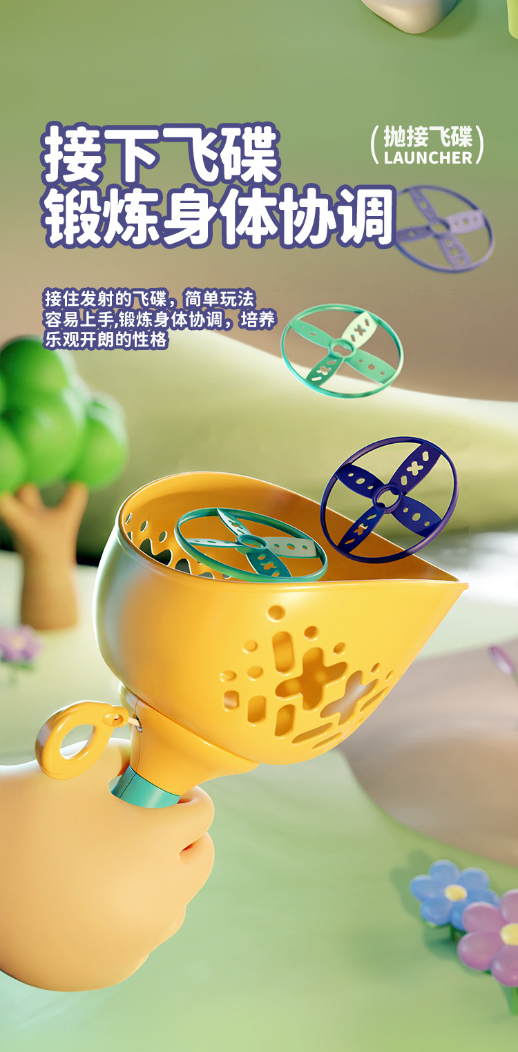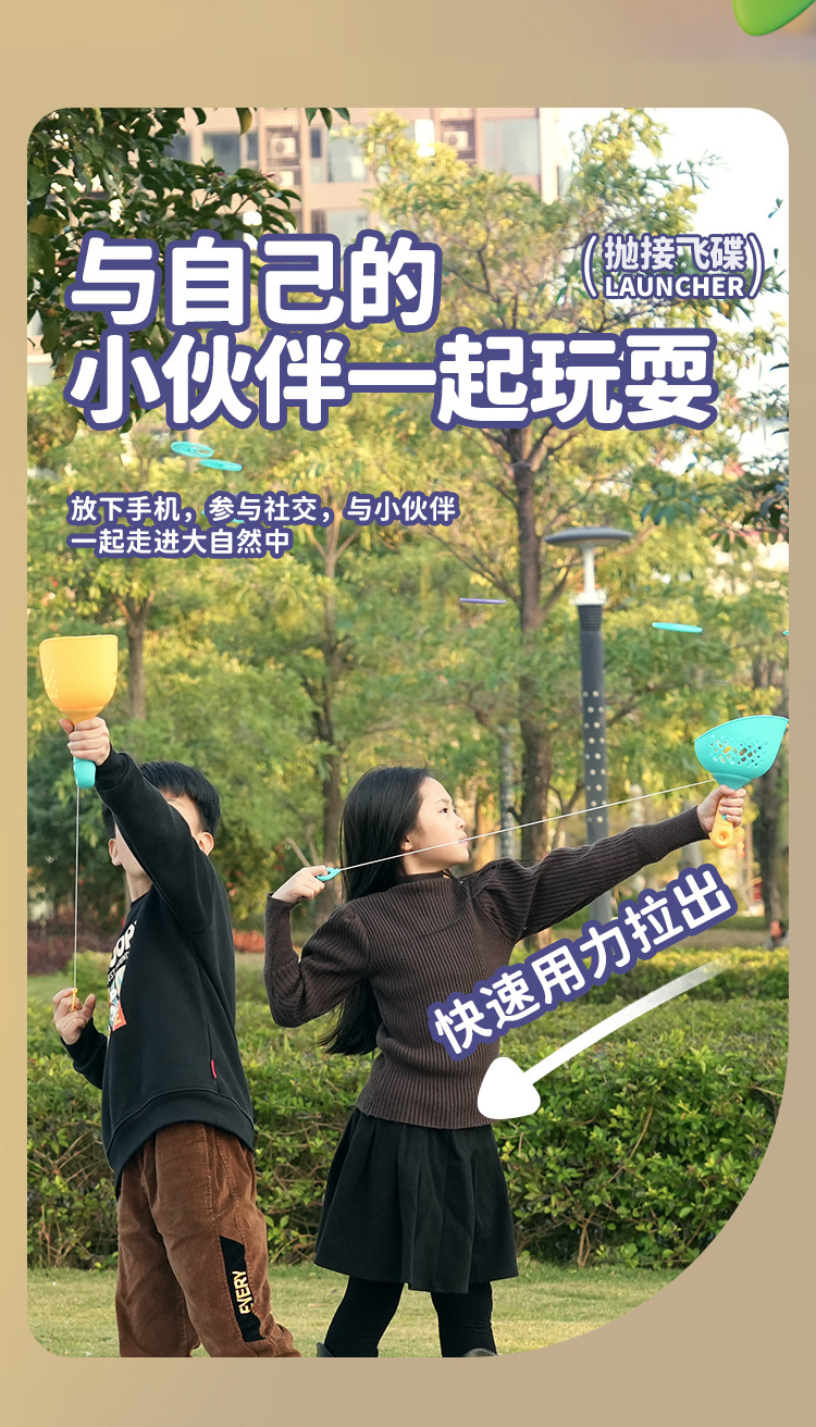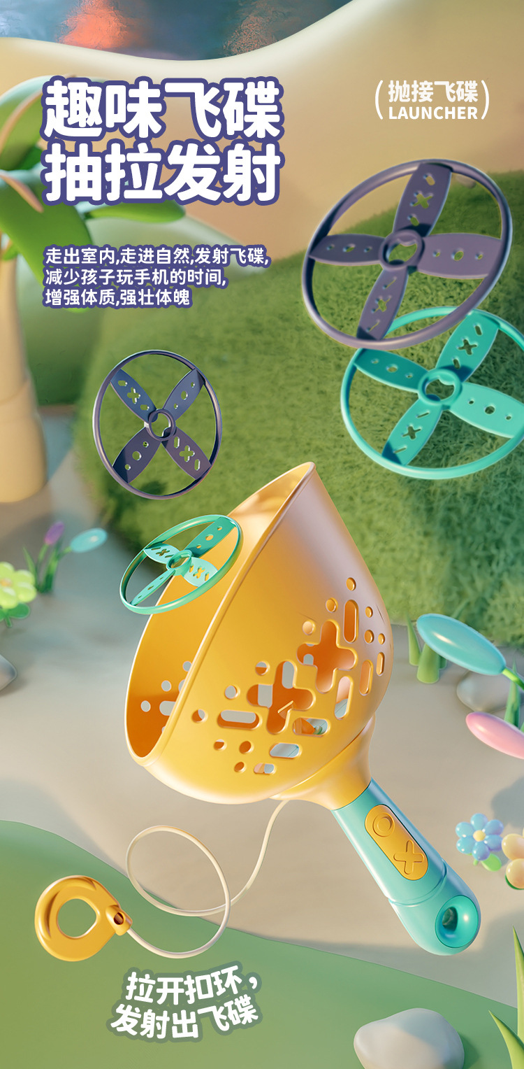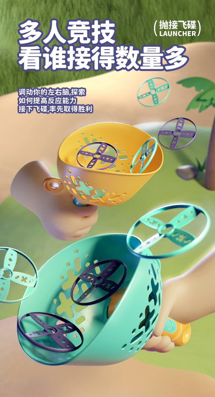【抽拉发射 抛接飞碟】儿童对球抛接飞碟 弹射飞盘 夏季出行 户外体育玩具 提高身体反应力