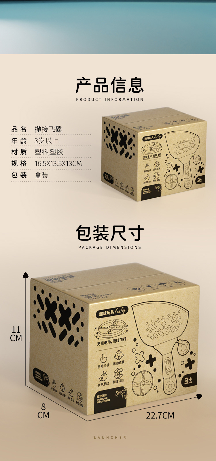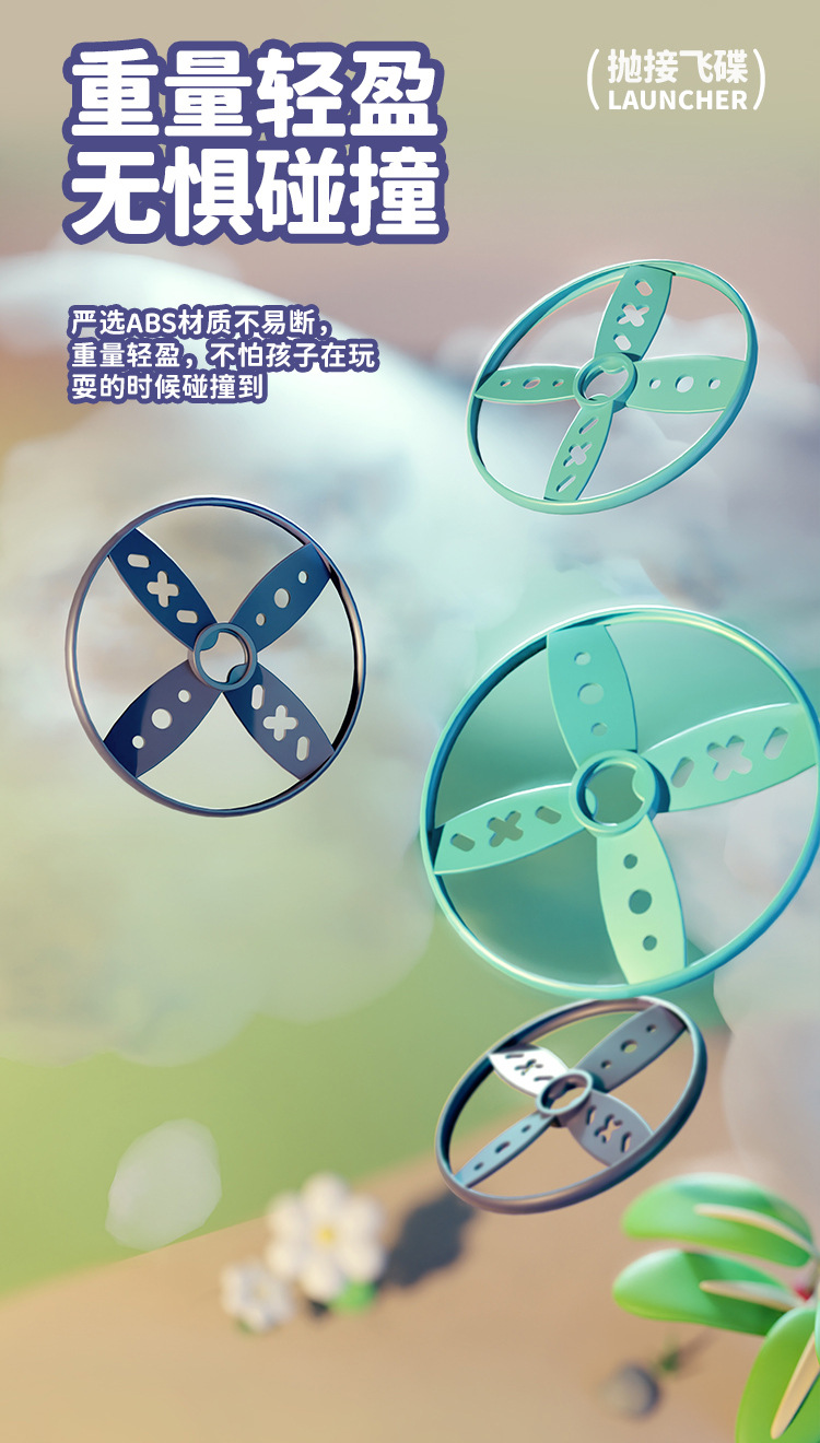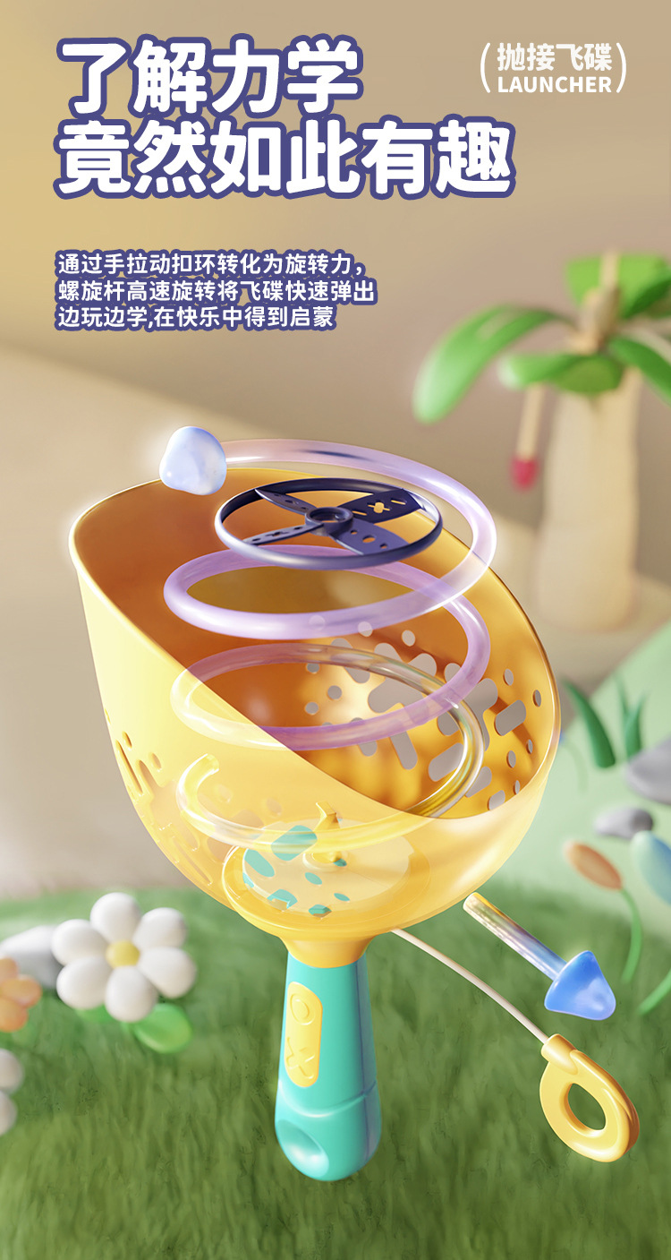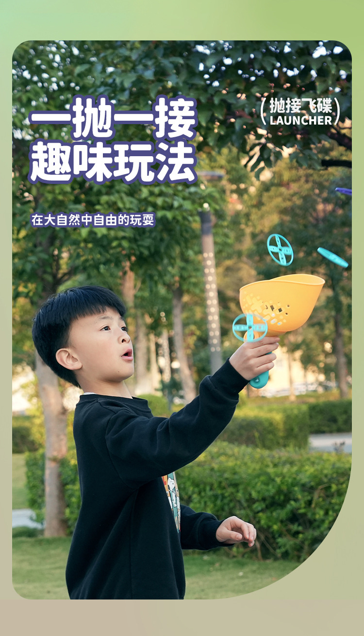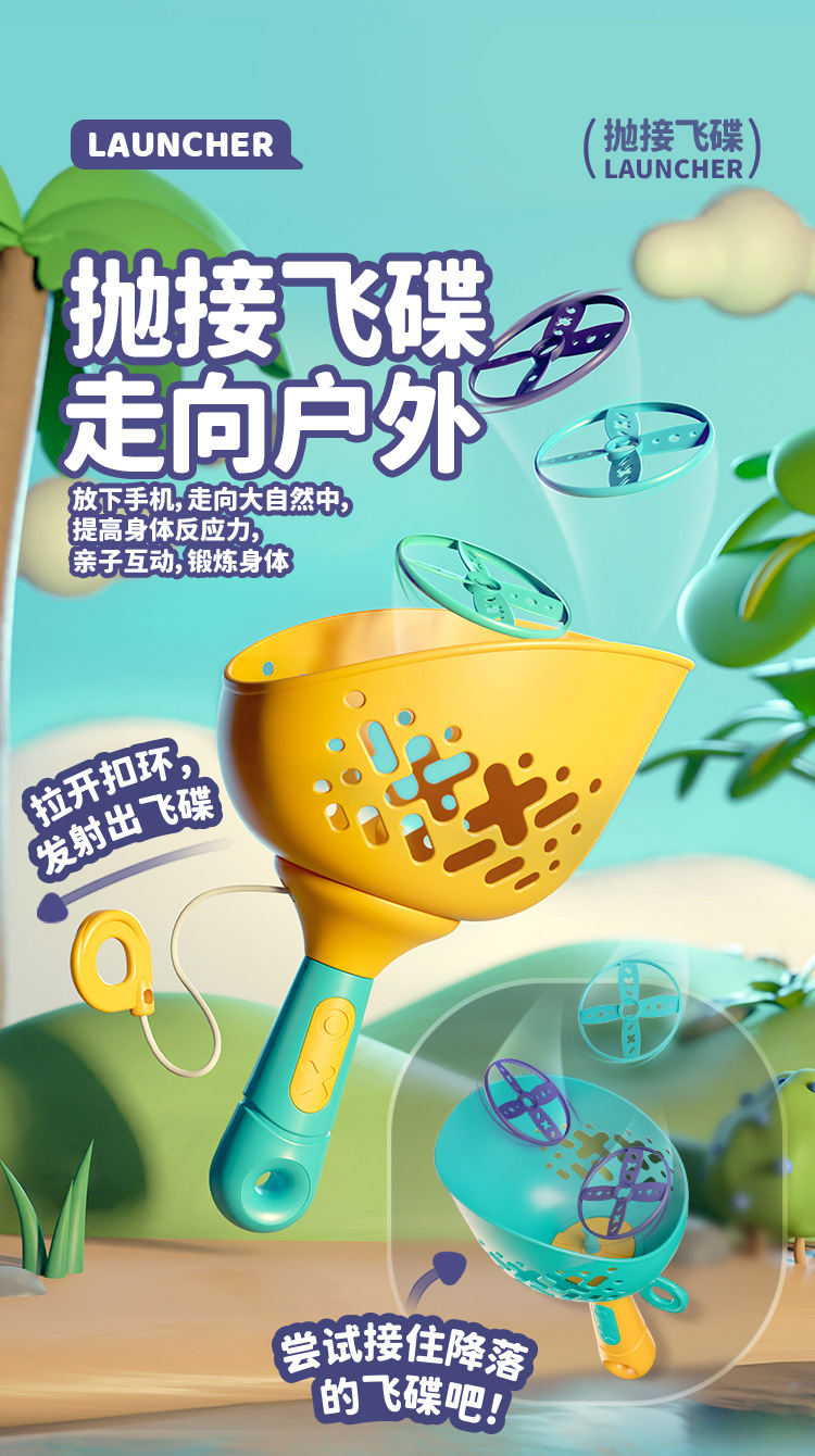 【抽拉发射 抛接飞碟】儿童对球抛接飞碟 弹射飞盘 夏季出行 户外体育玩具 提高身体反应力
