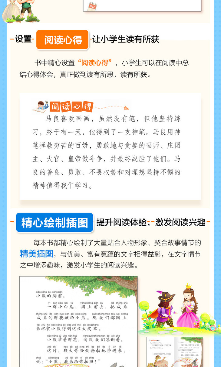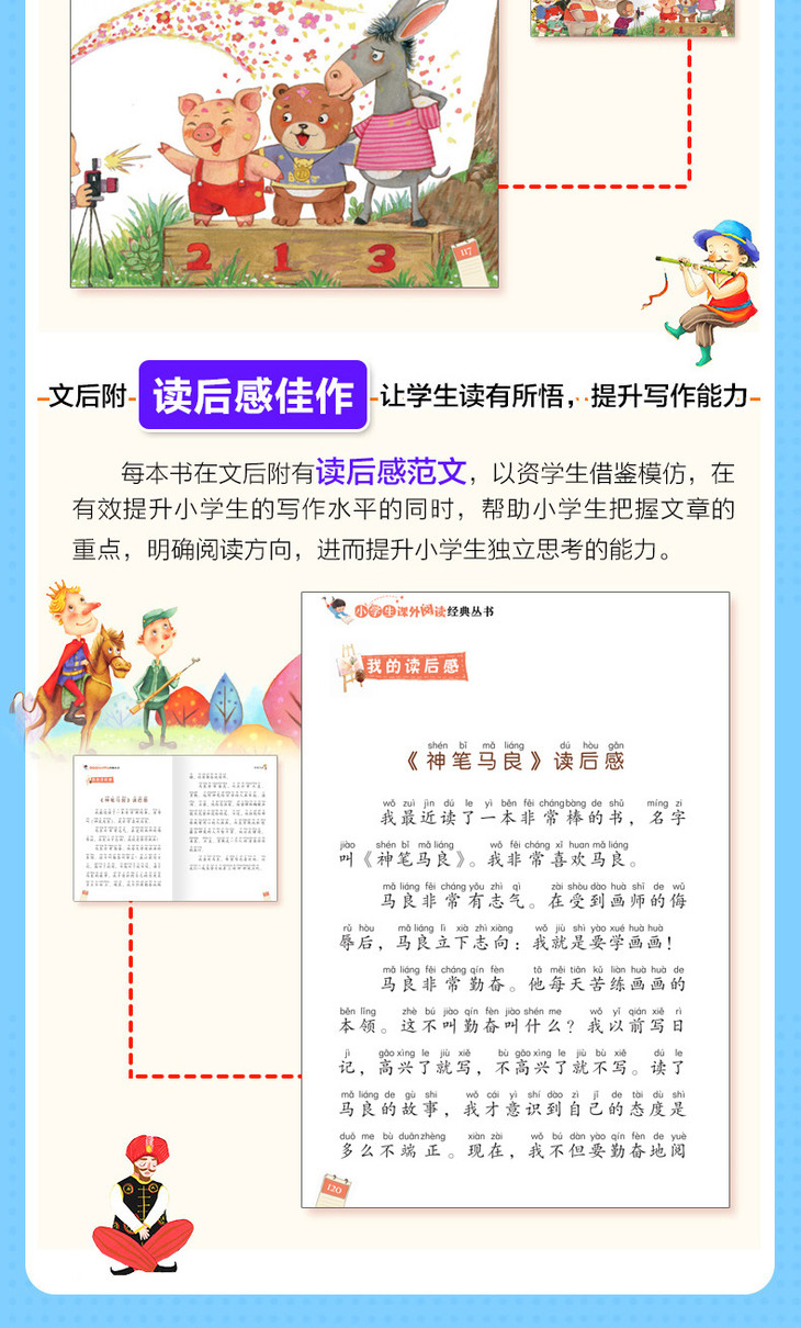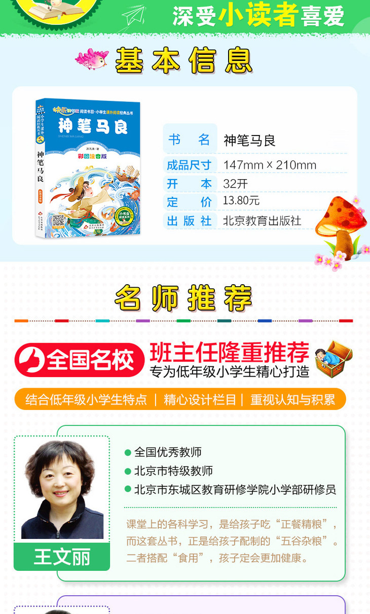《神笔马良》是为人们所熟知的故事,是中国儿童文学的瑰宝。马良的形象深入人心,影响了几代人。马良已经成为中国儿童智慧、勇敢、正义的化身。阅读此书,读者可以从主人公身上学到勤奋、勇敢、善良、乐于助人的精神。