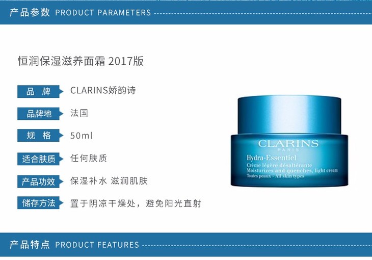 【精品推荐】【香港直邮】Clarins/娇韵诗 2017版 恒润保湿滋养面霜 50ml 适合所有肌肤