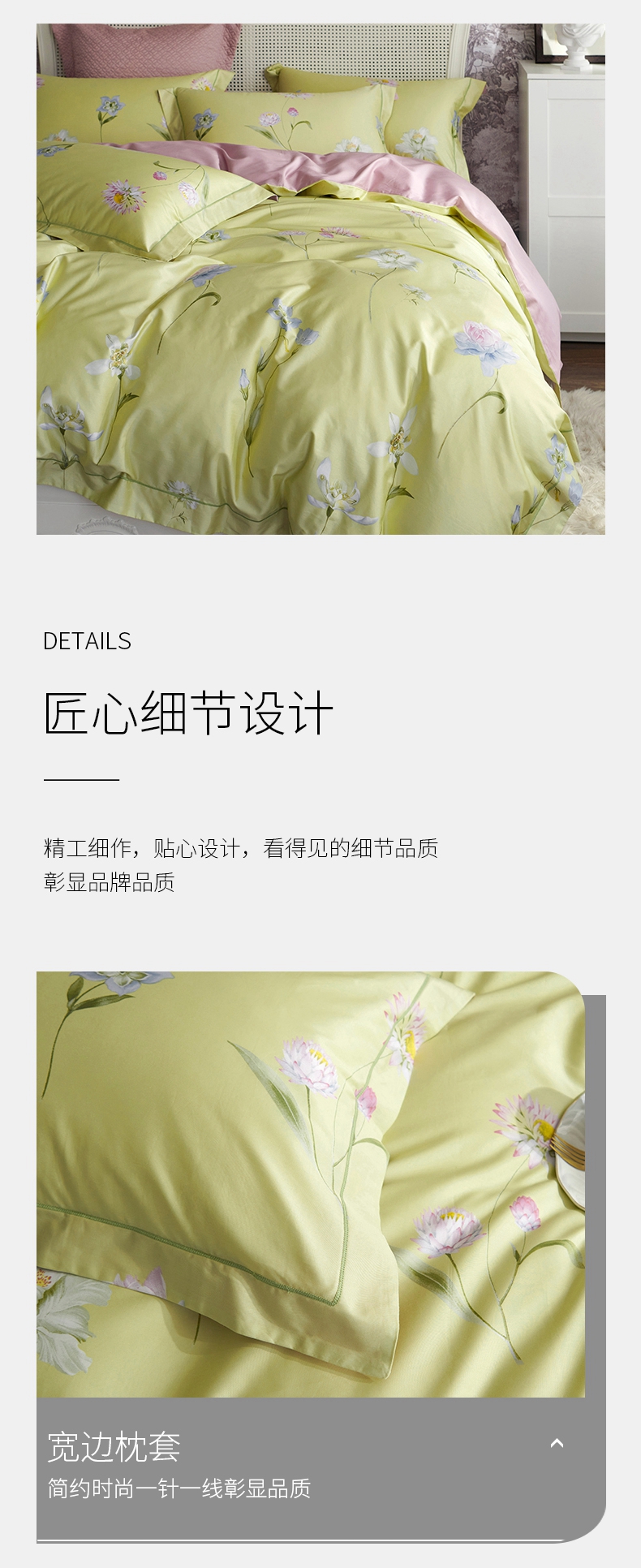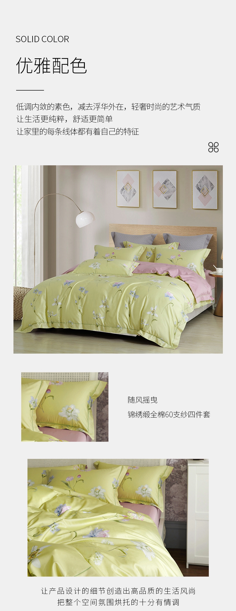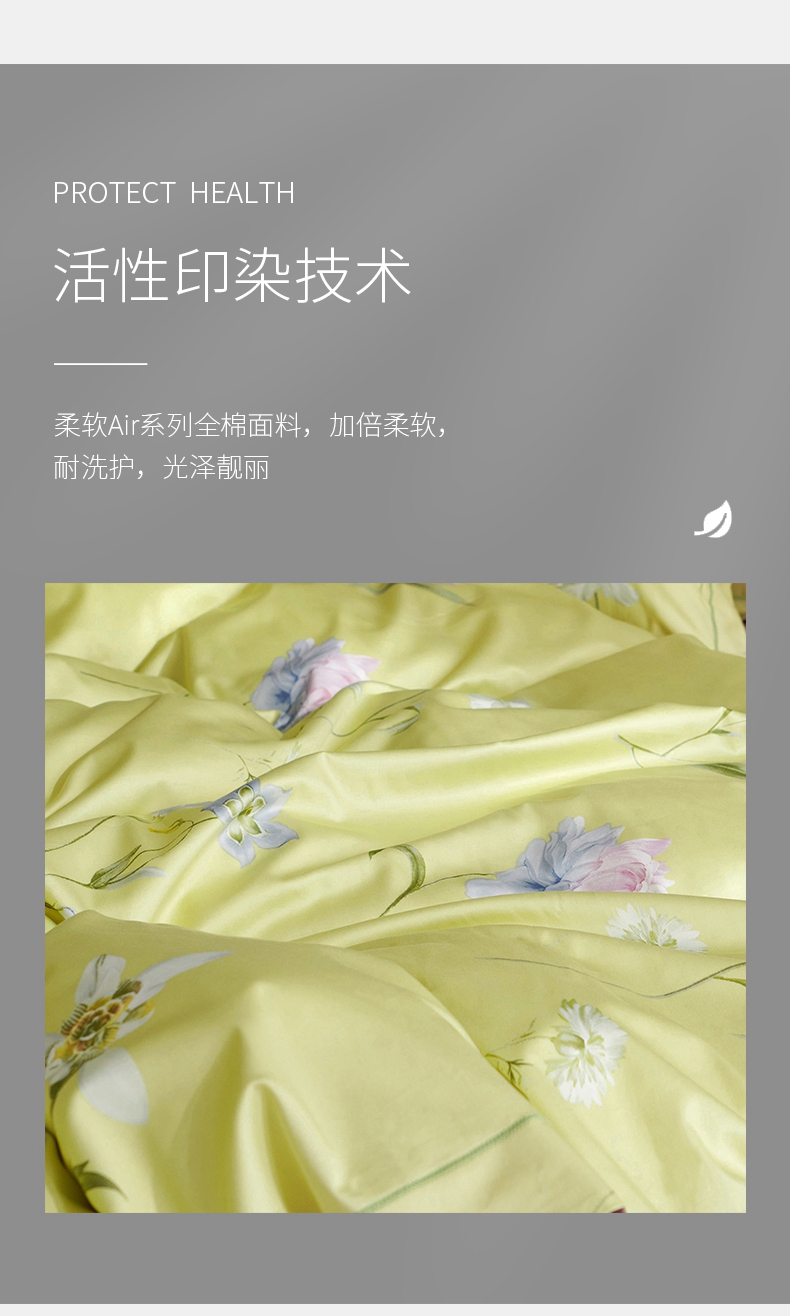 锦绣缎全棉60支纱四件套 活性印染工艺 柔软贴身面料被套床单4件套-随风摇曳