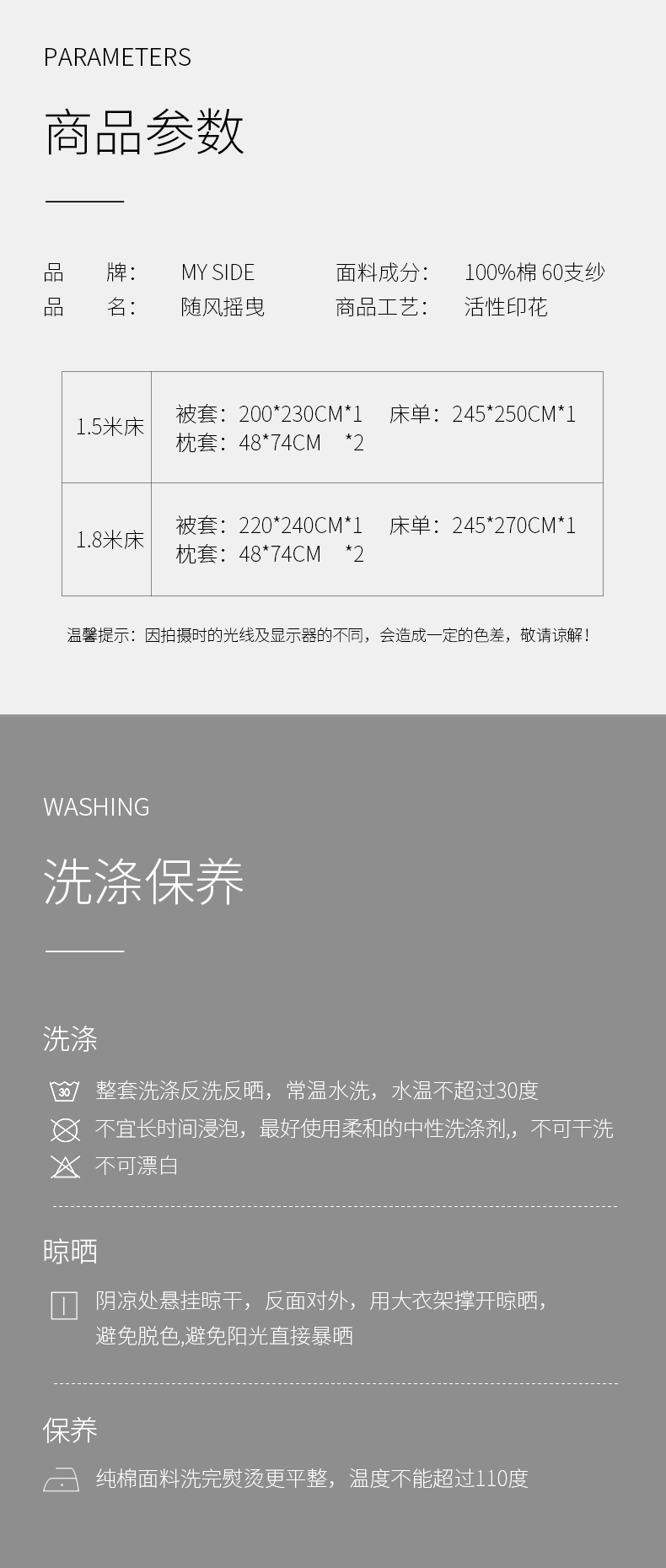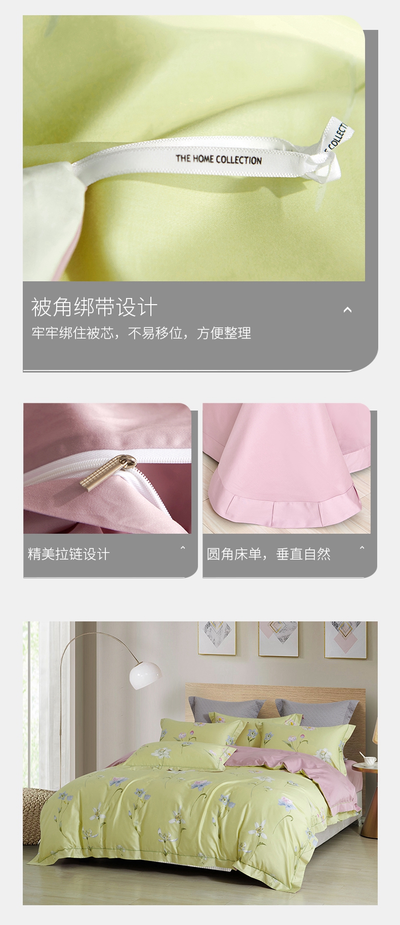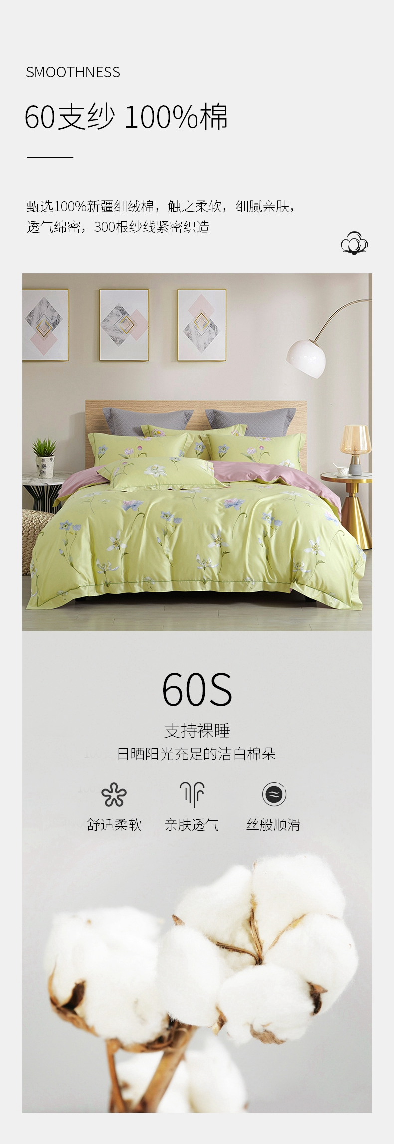 锦绣缎全棉60支纱四件套 活性印染工艺 柔软贴身面料被套床单4件套-随风摇曳