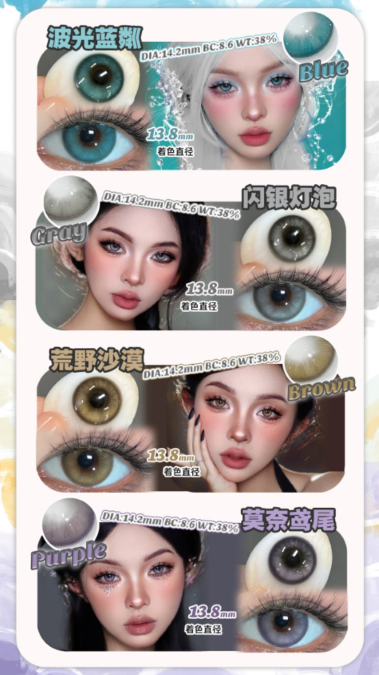 Pupil Magic 波光蓝麟/闪银灯泡 灰/莫奈鸢尾 紫/荒野沙漠 棕 14.2mm 年抛