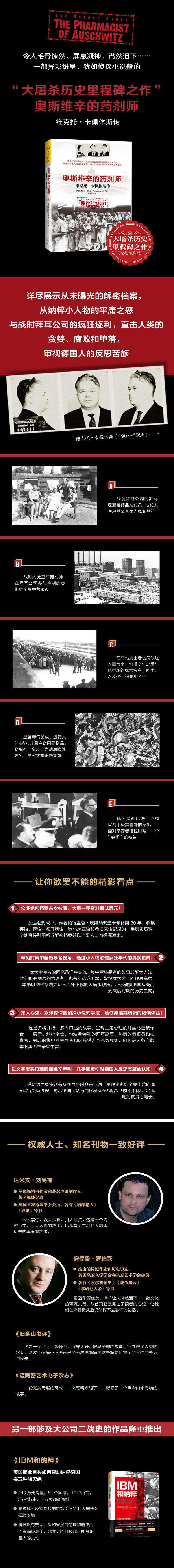 本书以纳粹大屠杀为背景,以贪婪和谋杀为主题,借助解密文件讲述了一个真实故事。战前的卡佩休斯是罗马尼亚拜耳公司药品推销员,与犹太人频繁往来;战时的他摇身一变成为奥斯维辛集中营的主任药剂师:为人体实验分配药品、在火车站挑选老弱病残者处死……甚至盗窃死人的物品和口中的金牙;战后的他则在去纳粹化调查中极力掩盖自己的罪行。