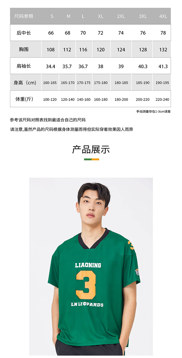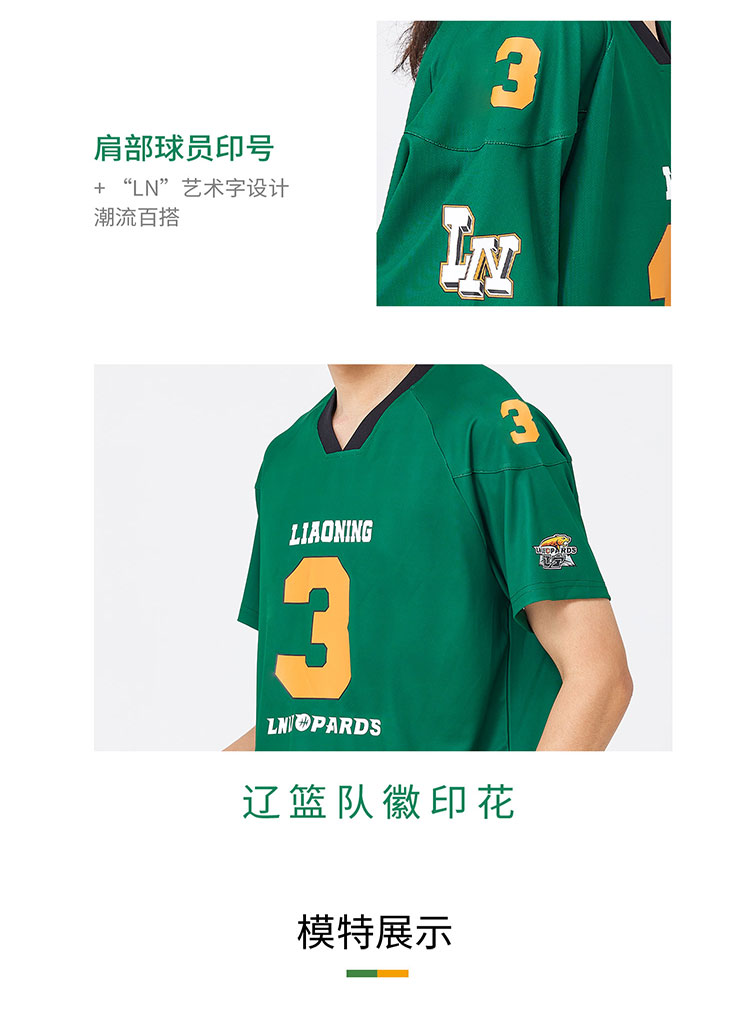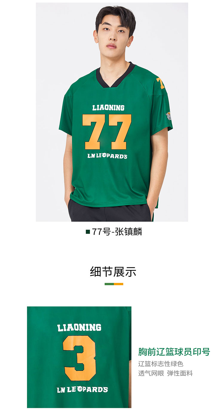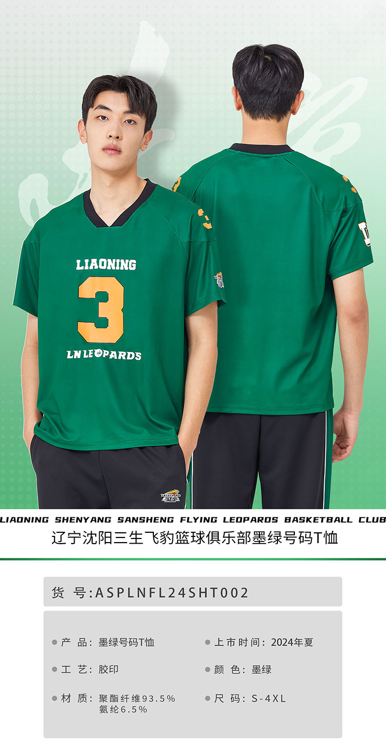辽宁飞豹男篮官方商品丨辽篮球员印号墨绿色T恤美式潮流短袖球迷