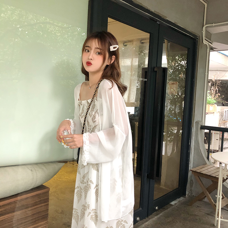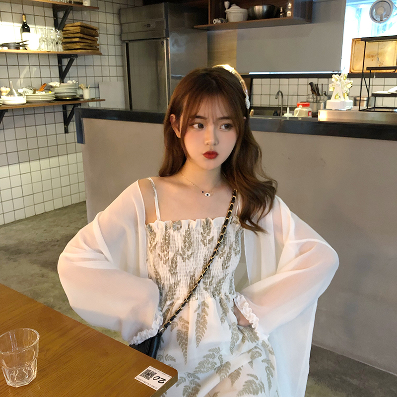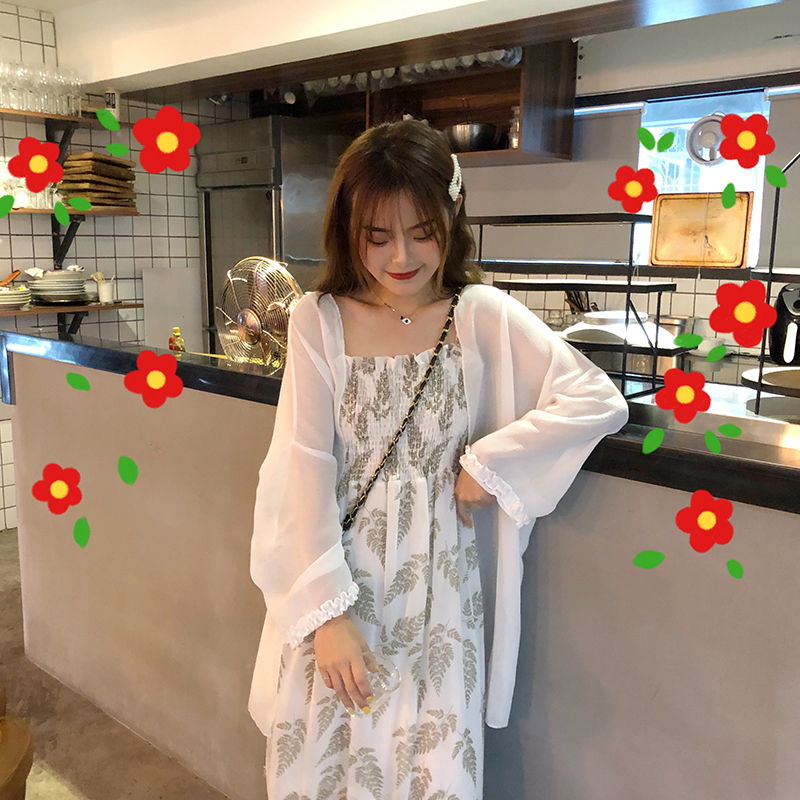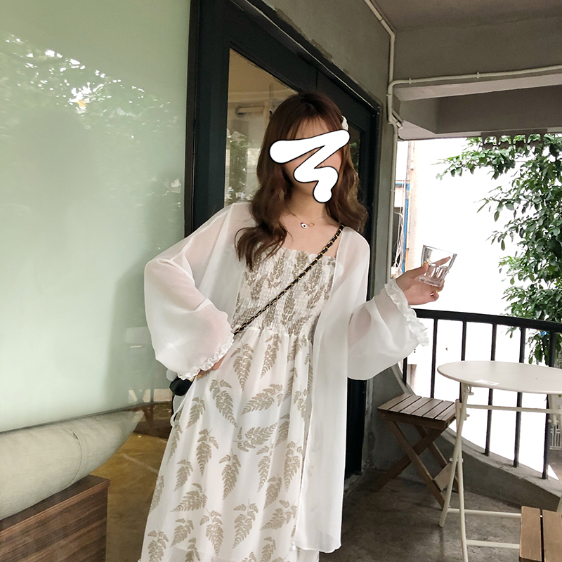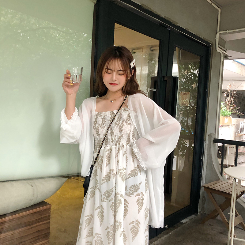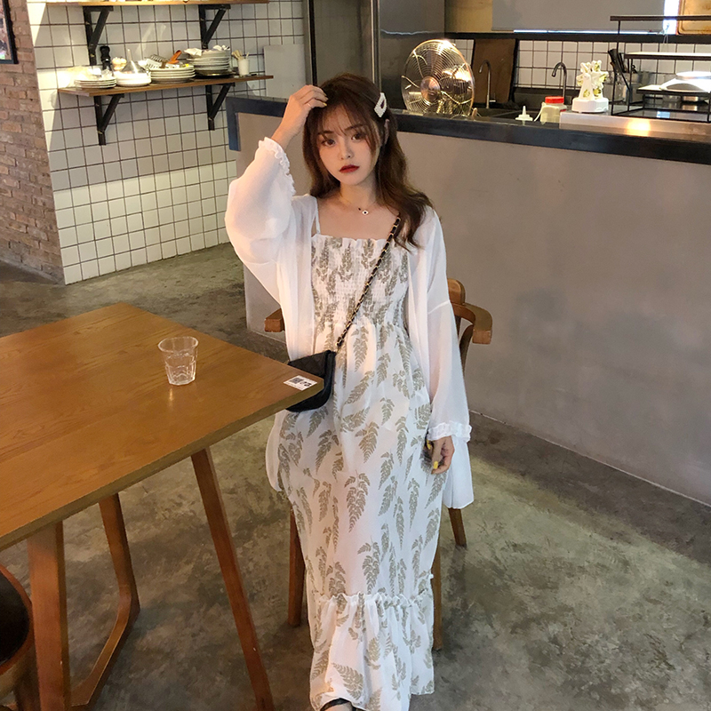 【防晒连衣裙】夏季新款防晒衣收腰显瘦碎花吊带裙超仙雪纺连衣裙学生气质仙女裙子防晒