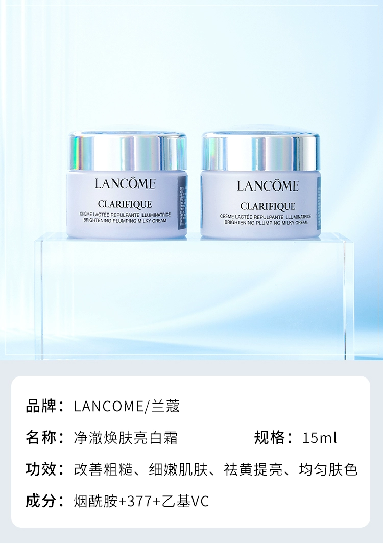 【小样】兰蔻净澈焕肤亮白霜15ml/102173 焕白透亮亲肤水润实力保湿