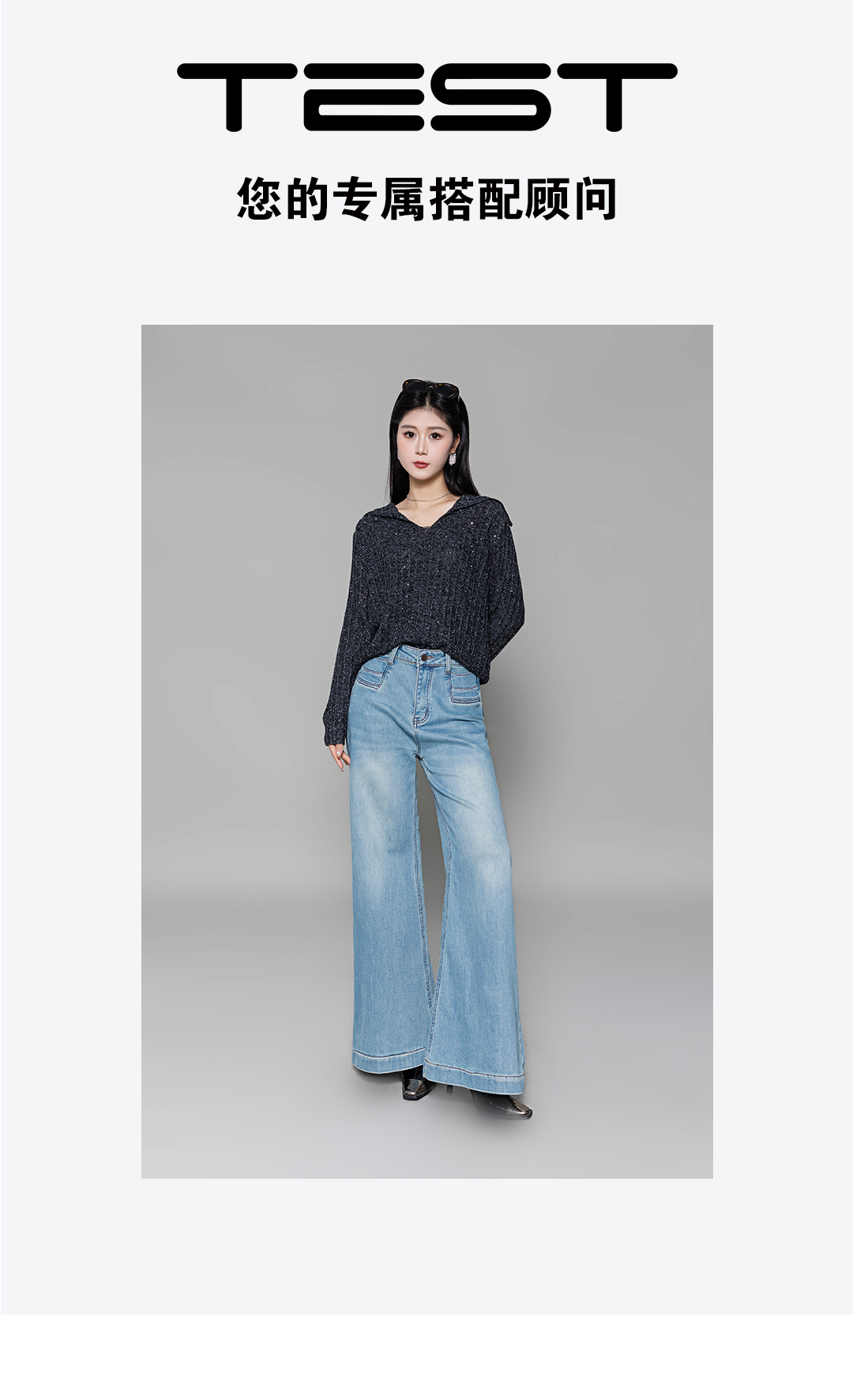 冬上新慵懒随性V领显瘦又吸睛黑色连帽毛衣1254041 商品图2