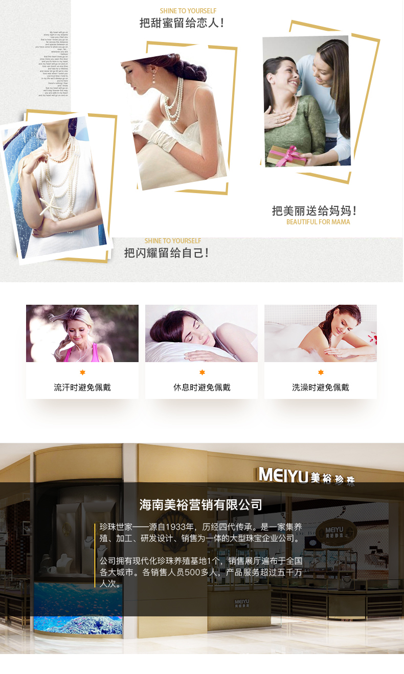 - 珍珠世家,代代相传。美裕珍珠,1933年起源于印尼,成长于海南岛。依托海南资源优势和自身专业优势,以经营南珠、南洋珠为主,专注于珍珠文化的挖掘和传播,把珍珠代表的爱意,永不间断地传承下去。