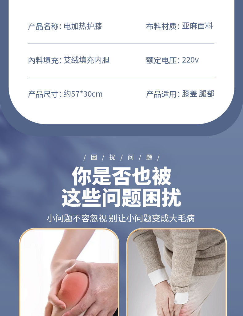 专为腿部设计!【电加热艾绒护膝宝】送父母 送自己 ! 陈年艾绒 腿部热敷 外层亚麻面料 内里艾绒填充 9档智能温控模式 穿脱方便 远离老寒腿!