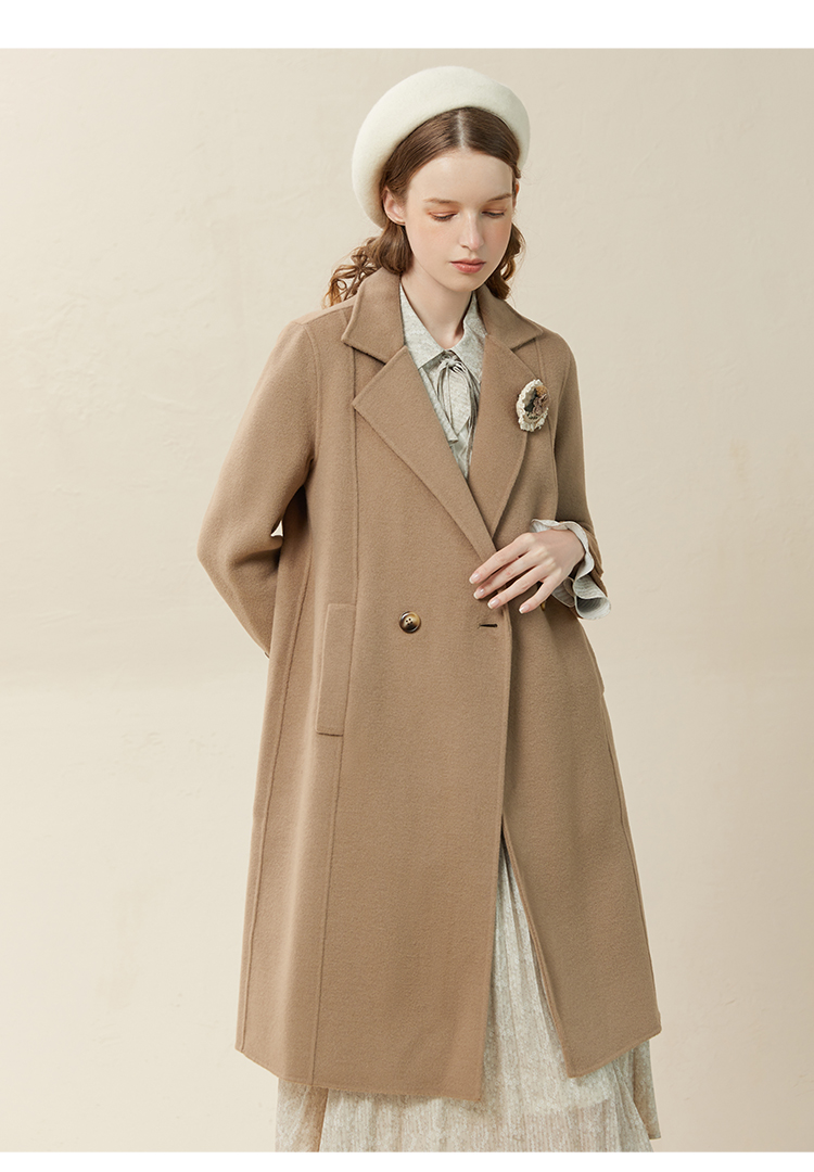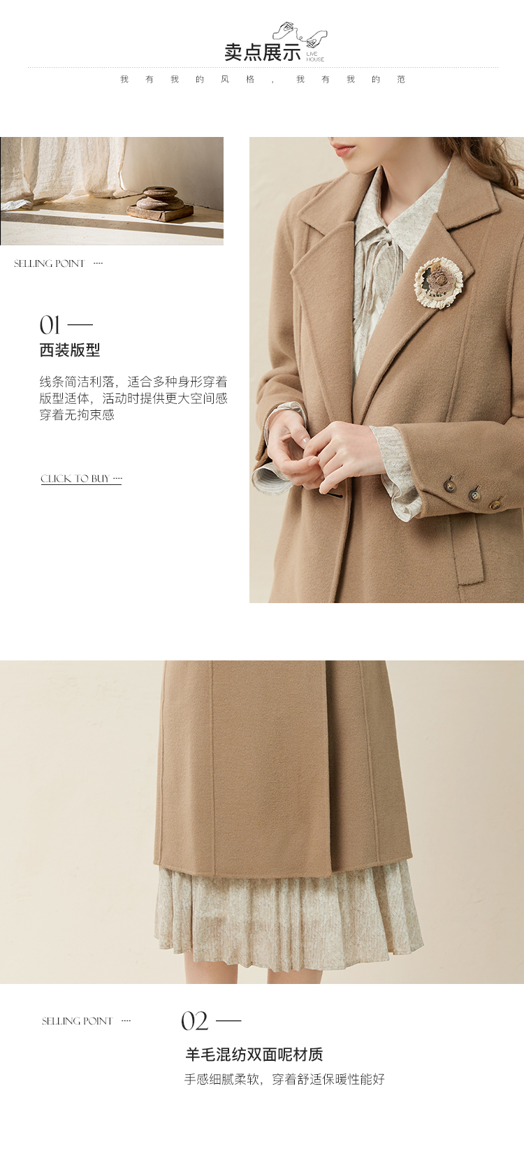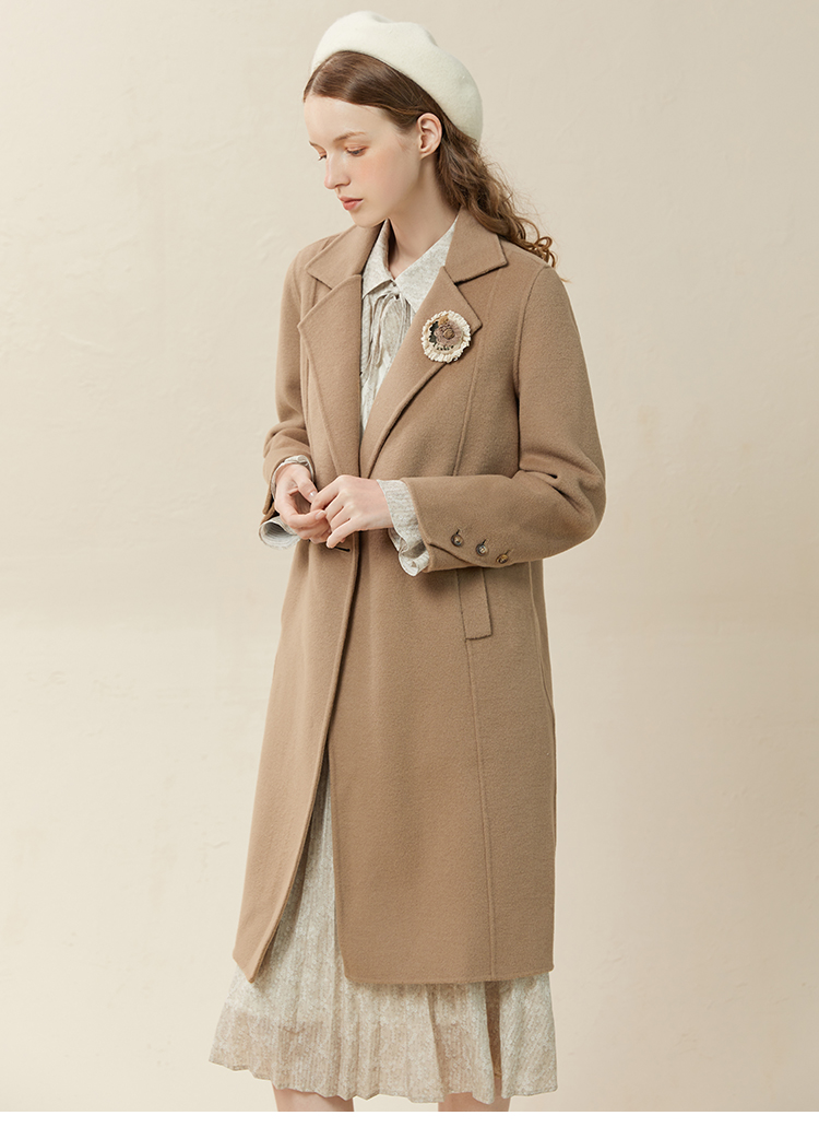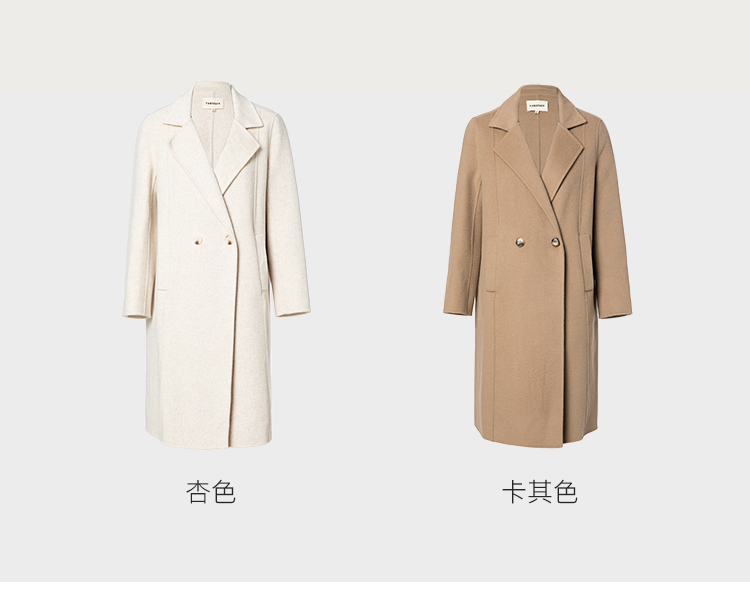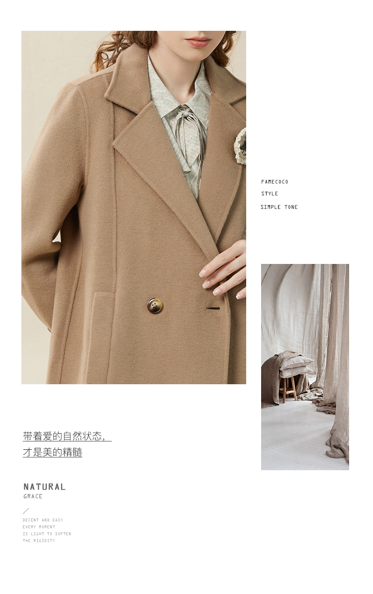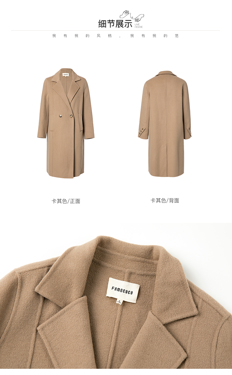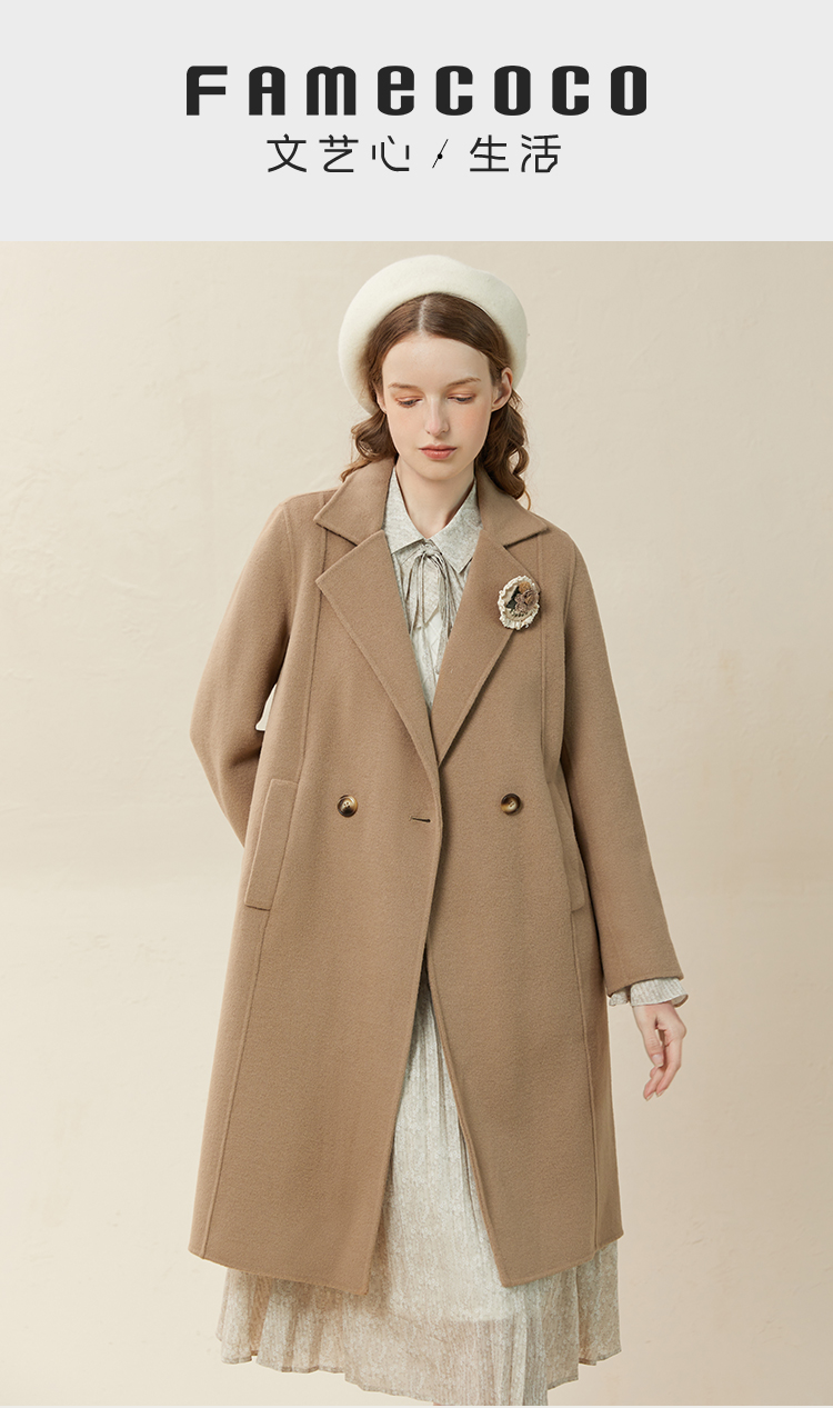 Famecoco范可儿西装领毛呢外套女冬季羊毛混纺中长双面呢大衣F228AQ007
