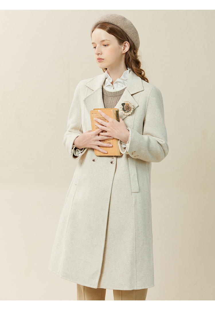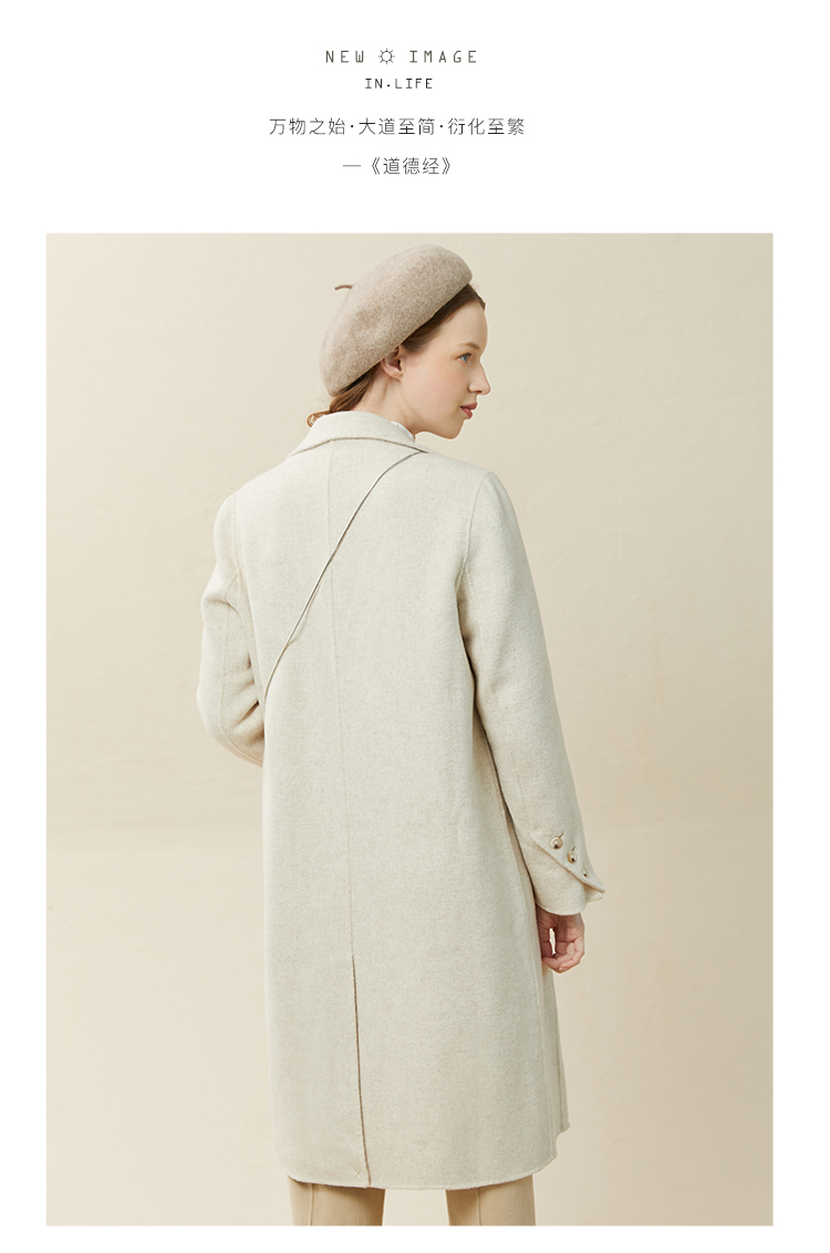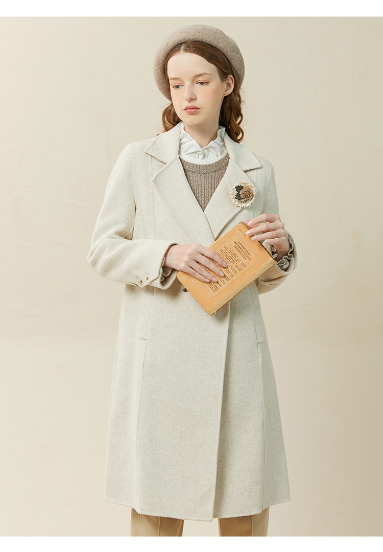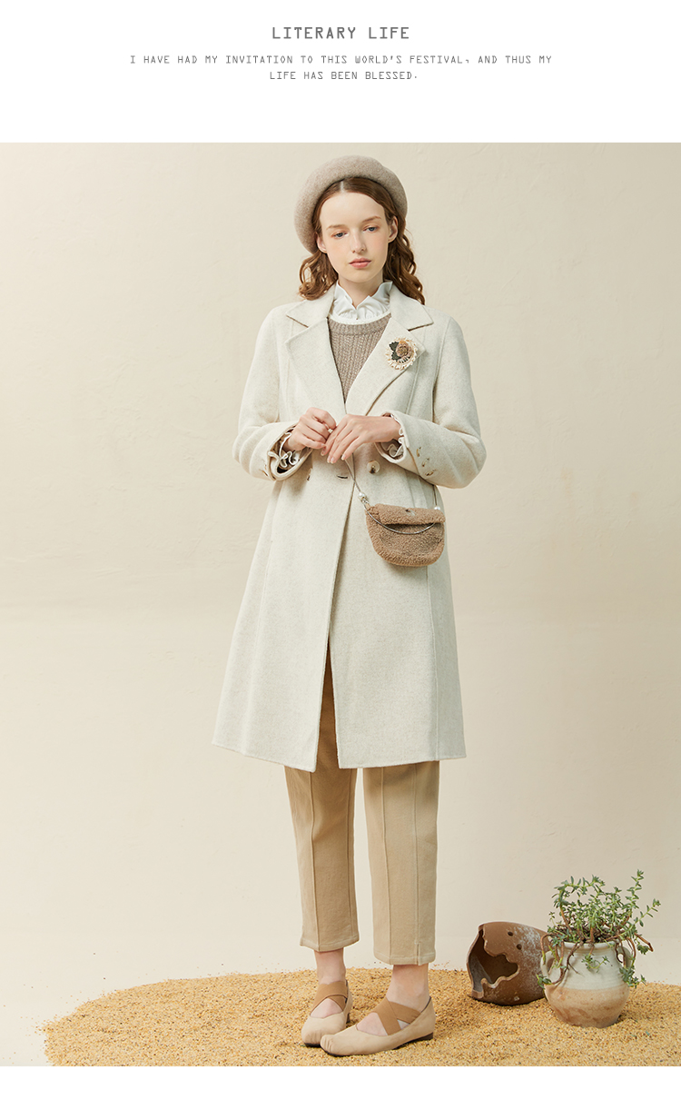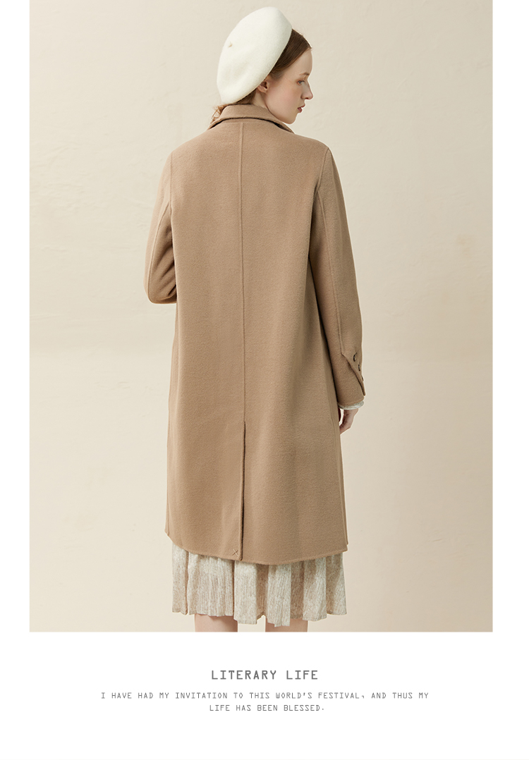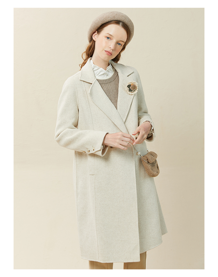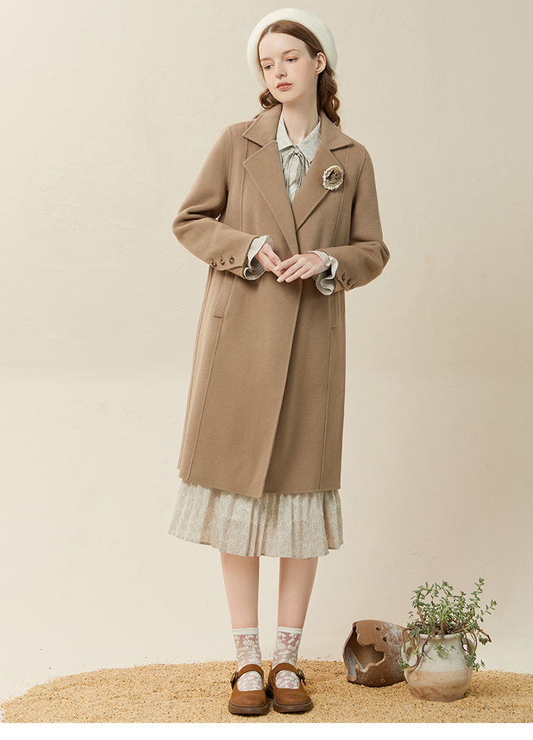 Famecoco范可儿西装领毛呢外套女冬季羊毛混纺中长双面呢大衣F228AQ007