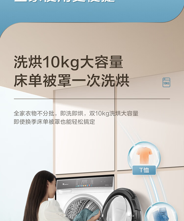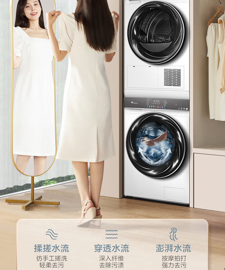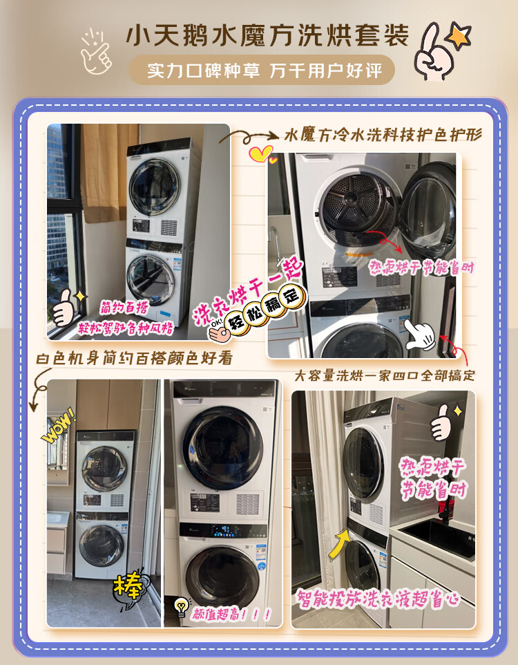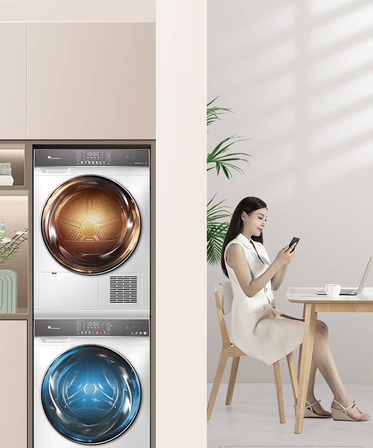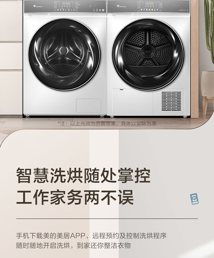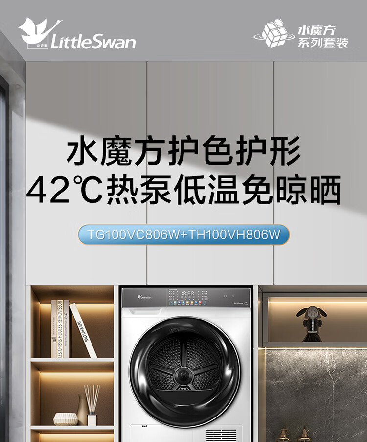 小天鹅(LittleSwan)水魔方洗烘套装 10KG滚筒洗衣机全自动+热泵烘干机 智能投放 1.1洗净比 白色 TG100VC806W+806