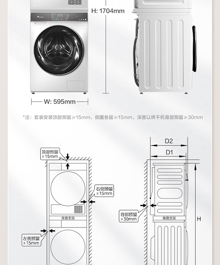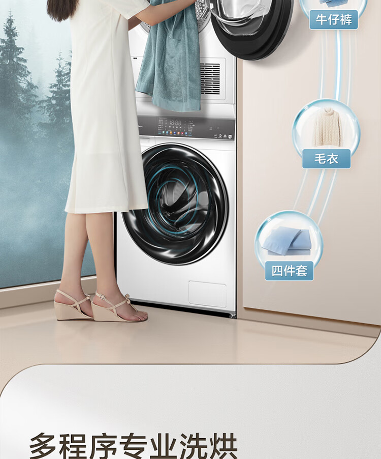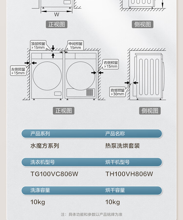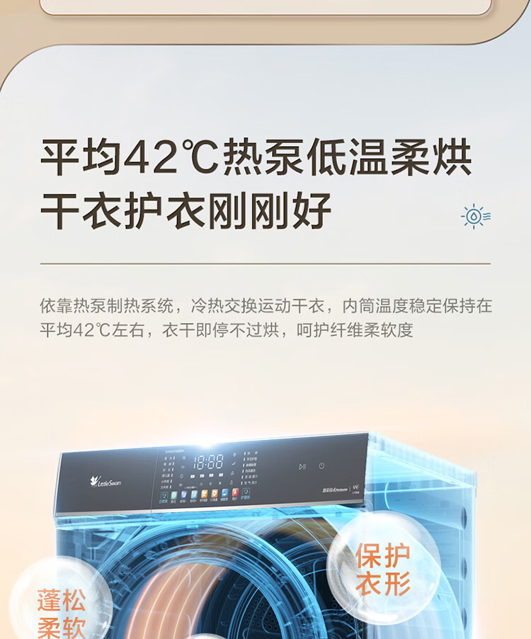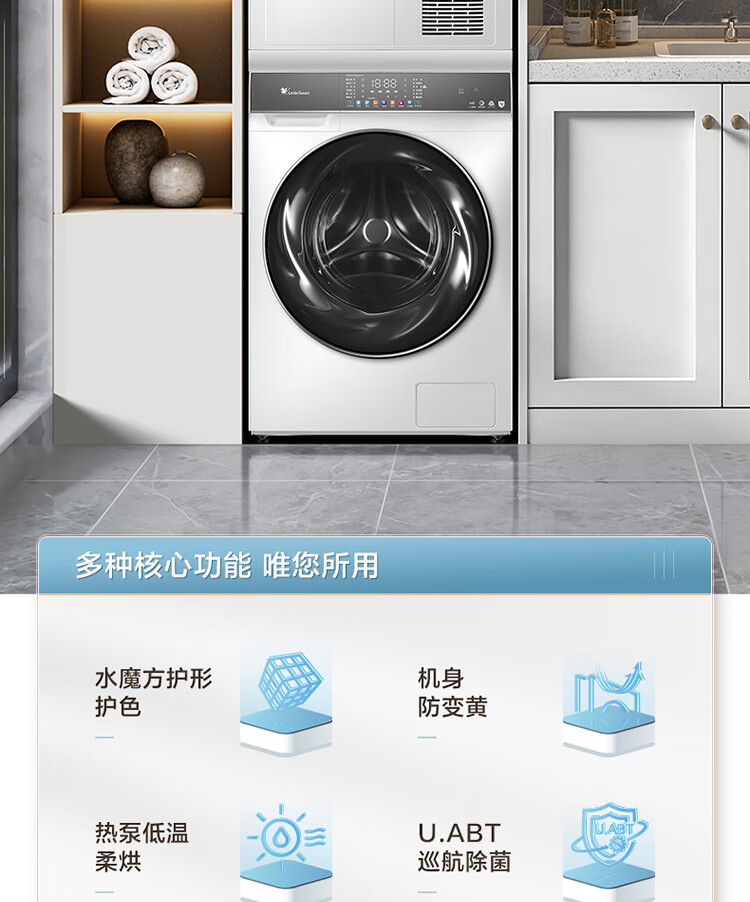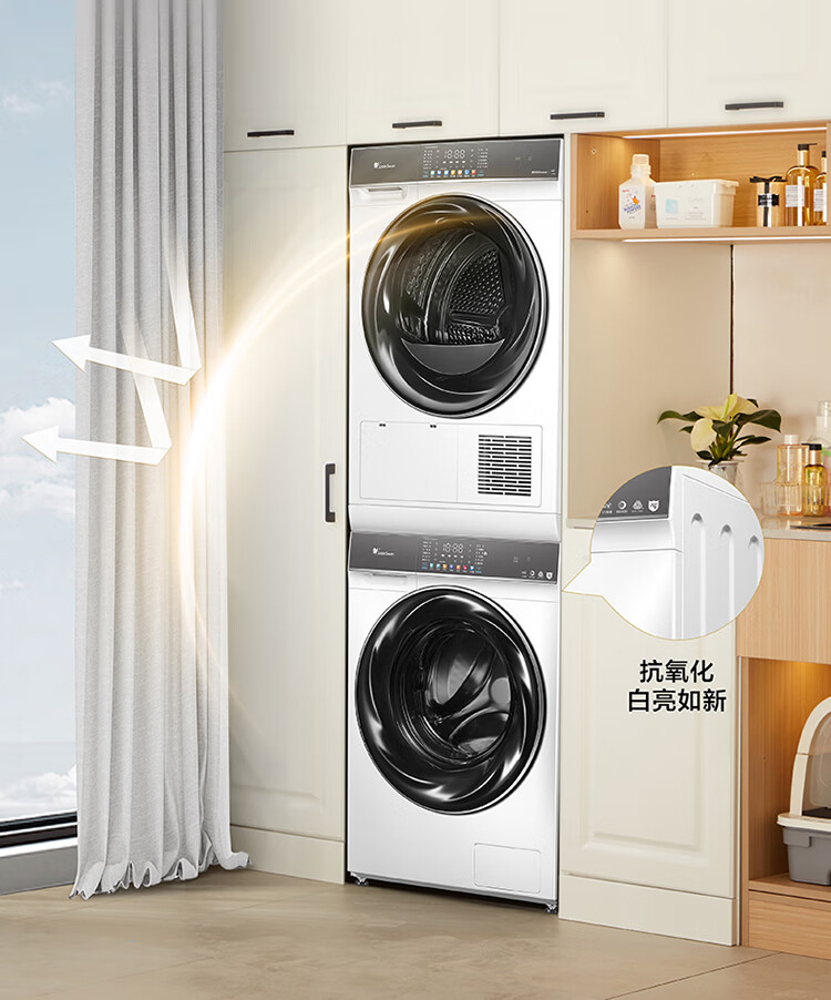 小天鹅(LittleSwan)水魔方洗烘套装 10KG滚筒洗衣机全自动+热泵烘干机 智能投放 1.1洗净比 白色 TG100VC806W+806