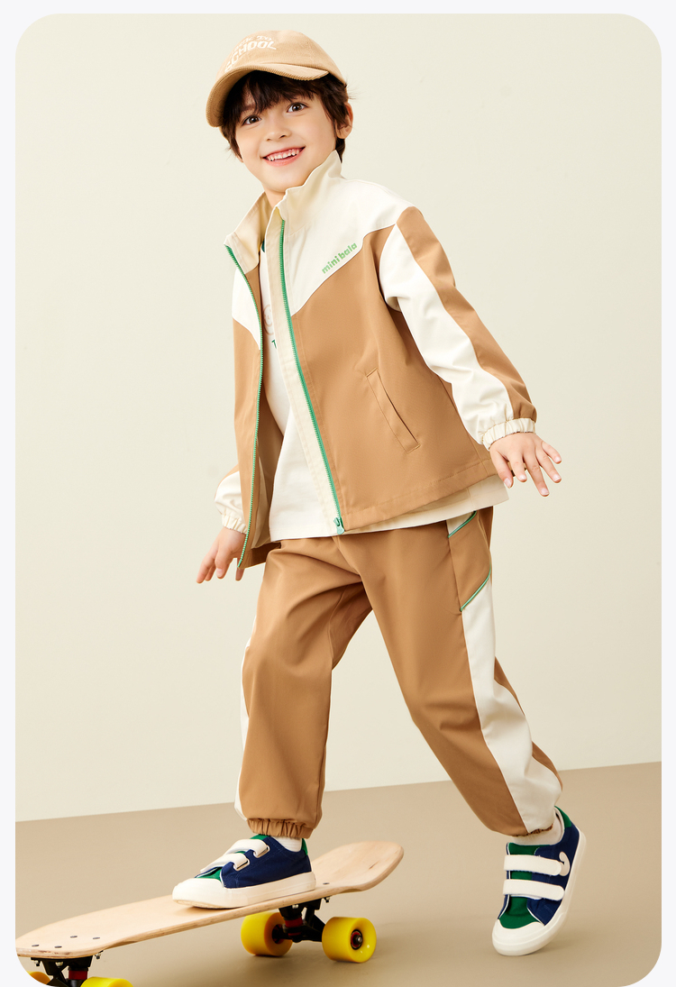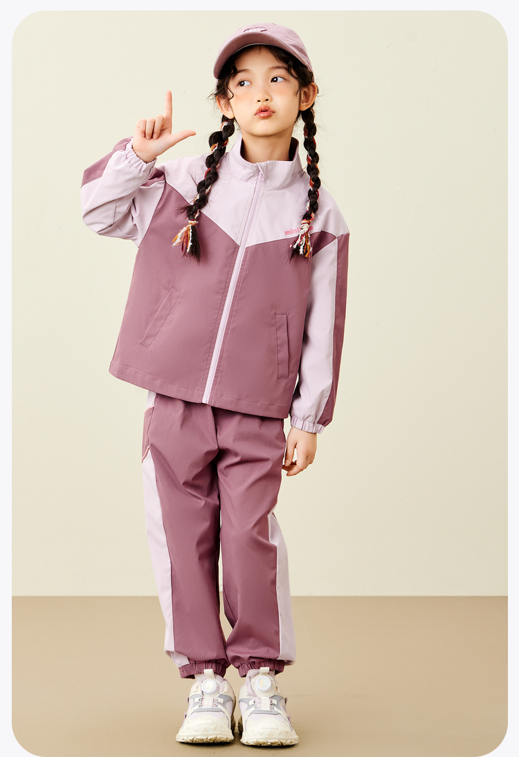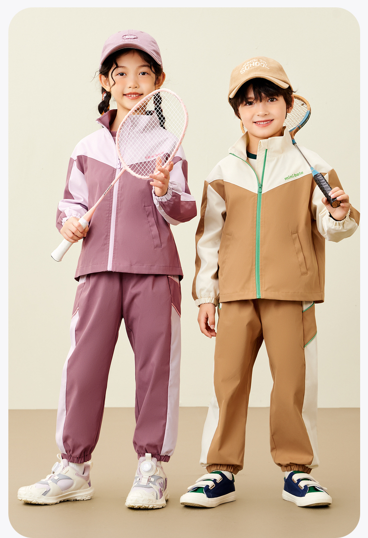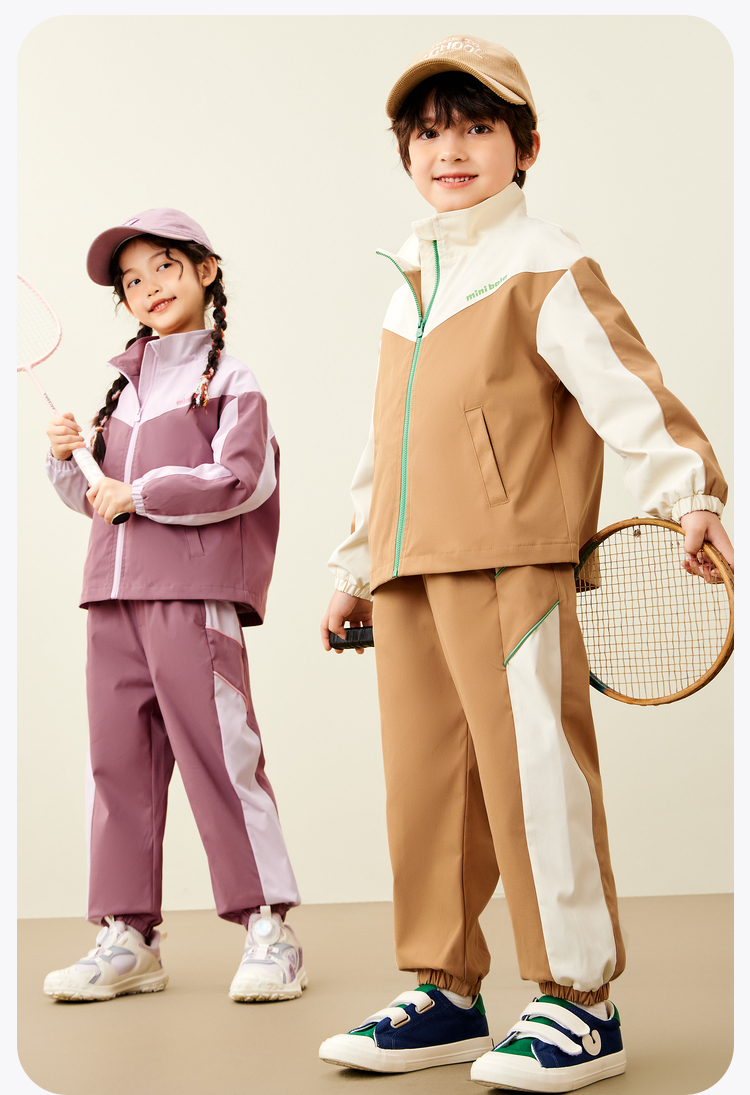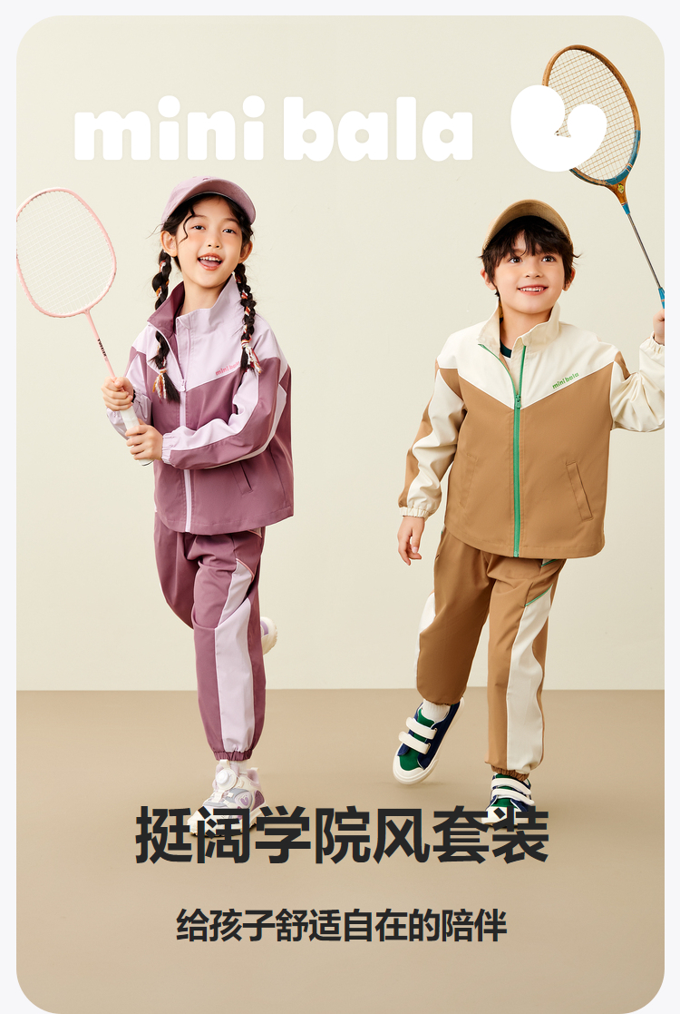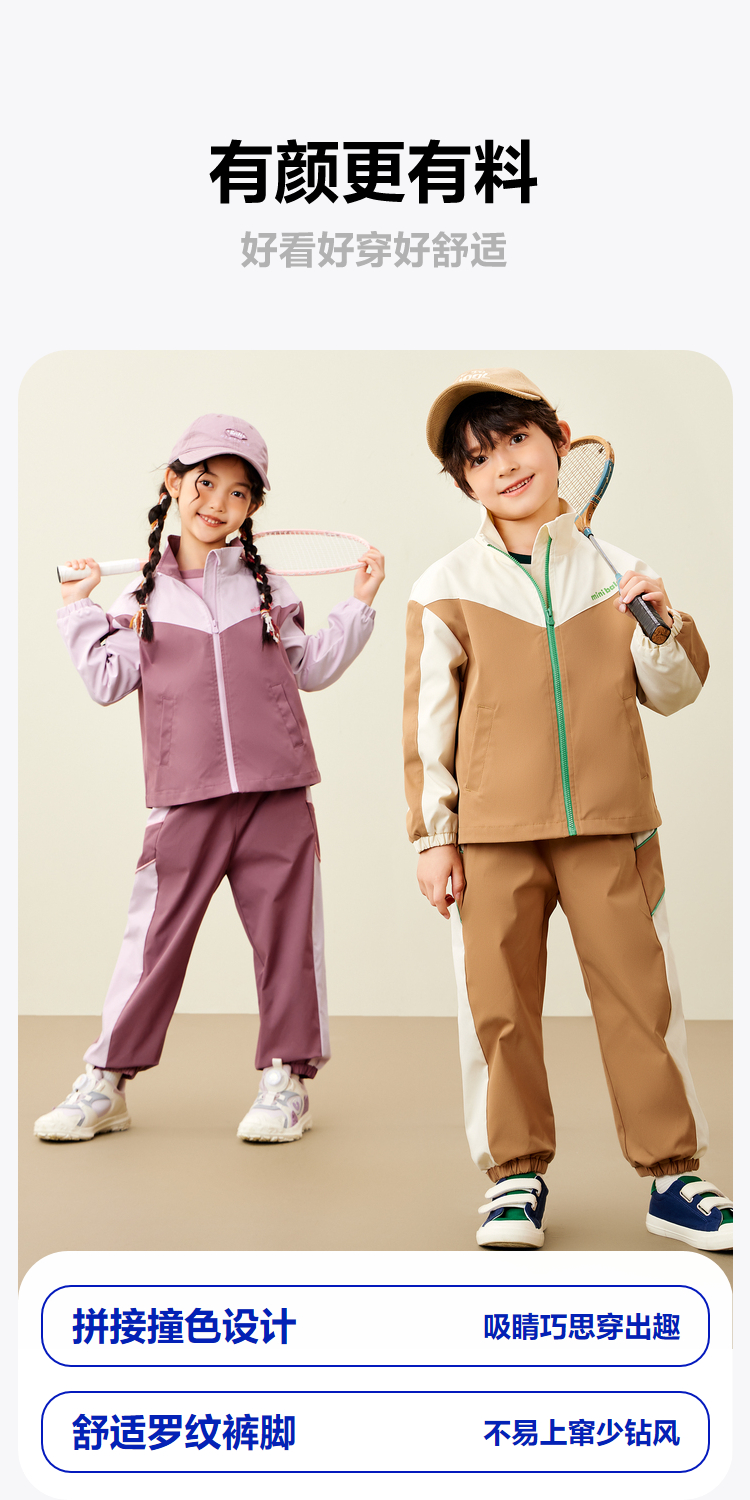迷你巴拉运动风长袖套装男女童儿童户外风活力撞色秋款