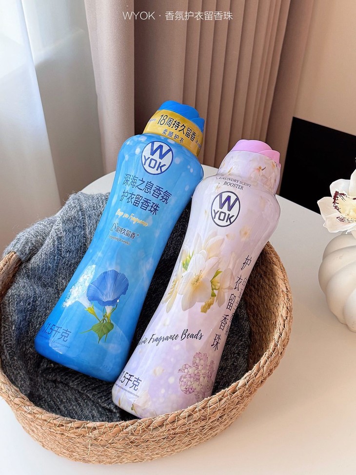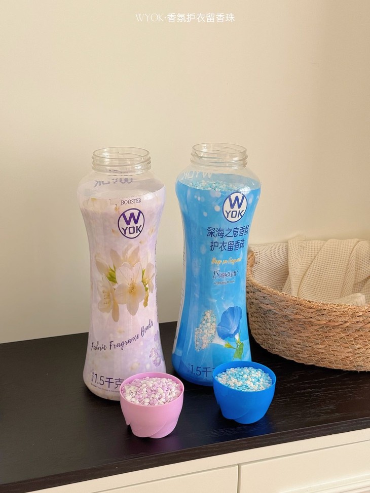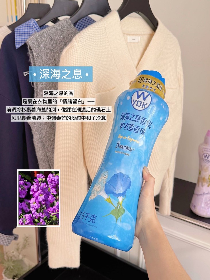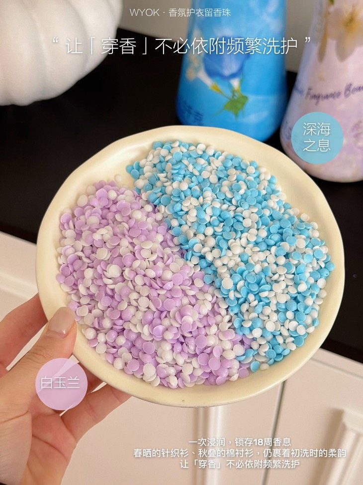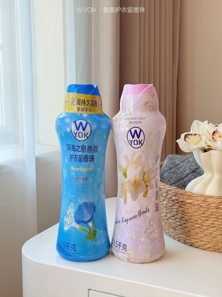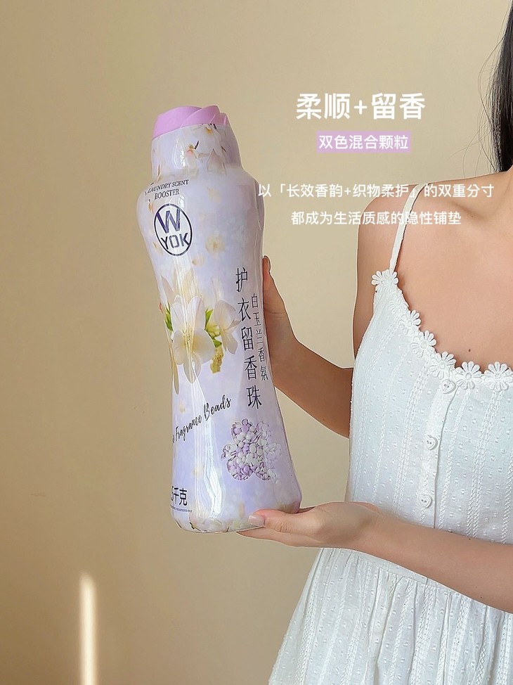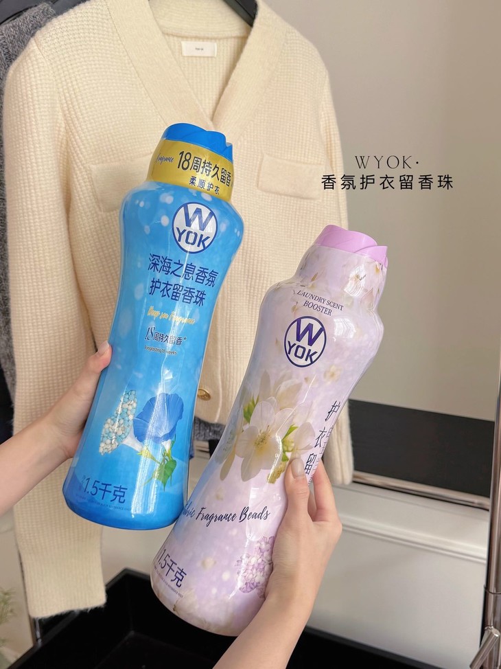 WYOK·香氛护衣留香珠 香型:白玉兰、深海之息 净含量:1.5kg 香,是织物的无形灵魂;柔,是日常的隐性精致 WYOK香氛护衣珠,以18周锁香科技为骨 以沙龙级调香为韵,让每一件衣物 都成为承载质感的移动香氛 长效锁香·质感长存:18周香息驻留, 非临时附着,而是织物自带的气息记忆 让精致跨越洗护周期,始终在线。