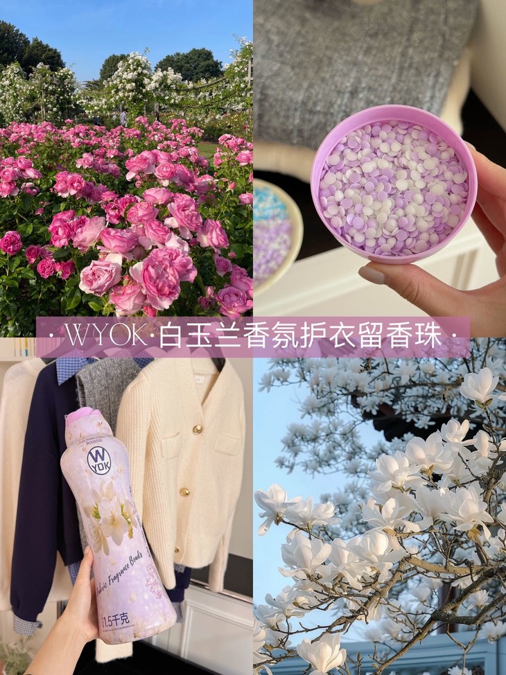*白玉兰香氛护衣留香珠 白玉兰香调:「玉露凝香,柔润成诗」 18周锁香因子深植纤维 让叠在衣柜深处的衬衫、常穿的针织衫 每次触碰都能嗅到如初洗般的柔香, 似江南春日的风,温润不张扬