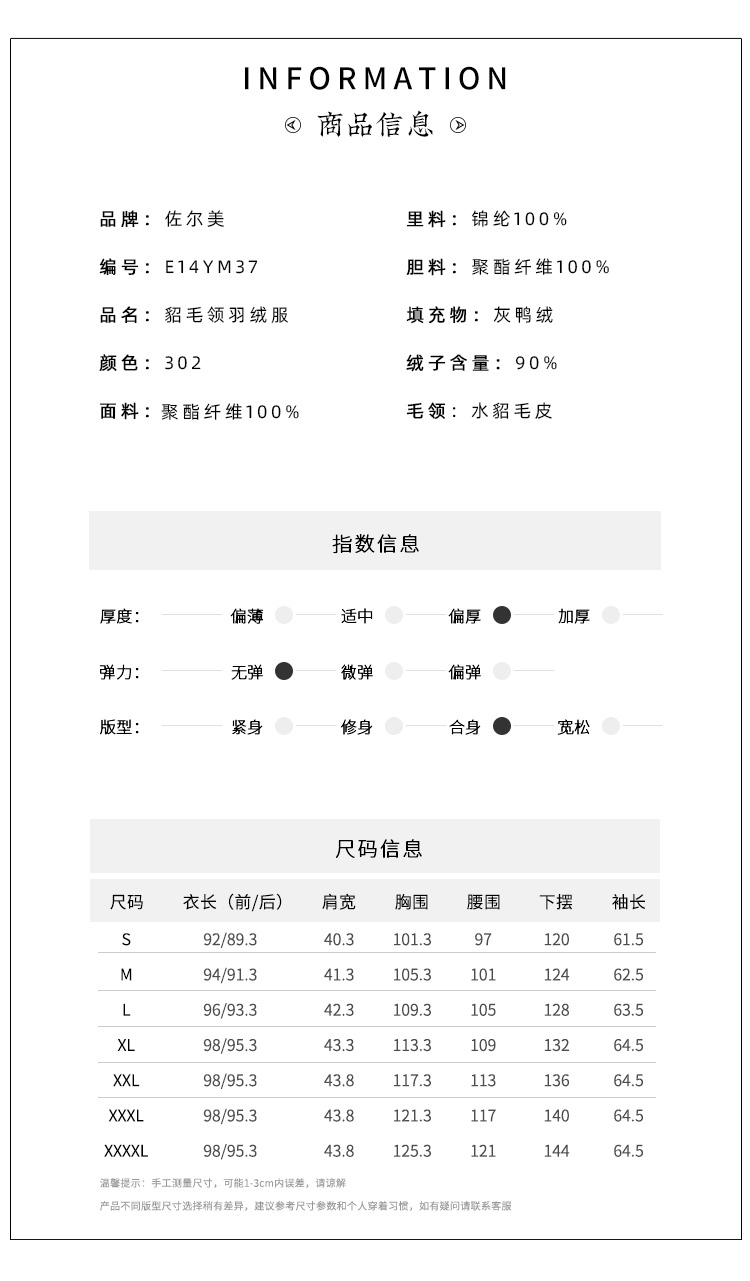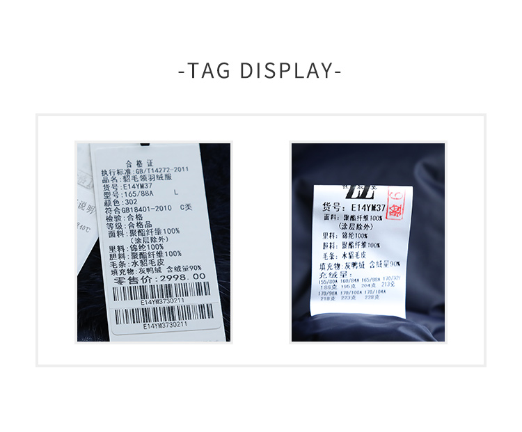佐尔美冬季新款 经典简约貂毛领羽绒服外套女E14YM37