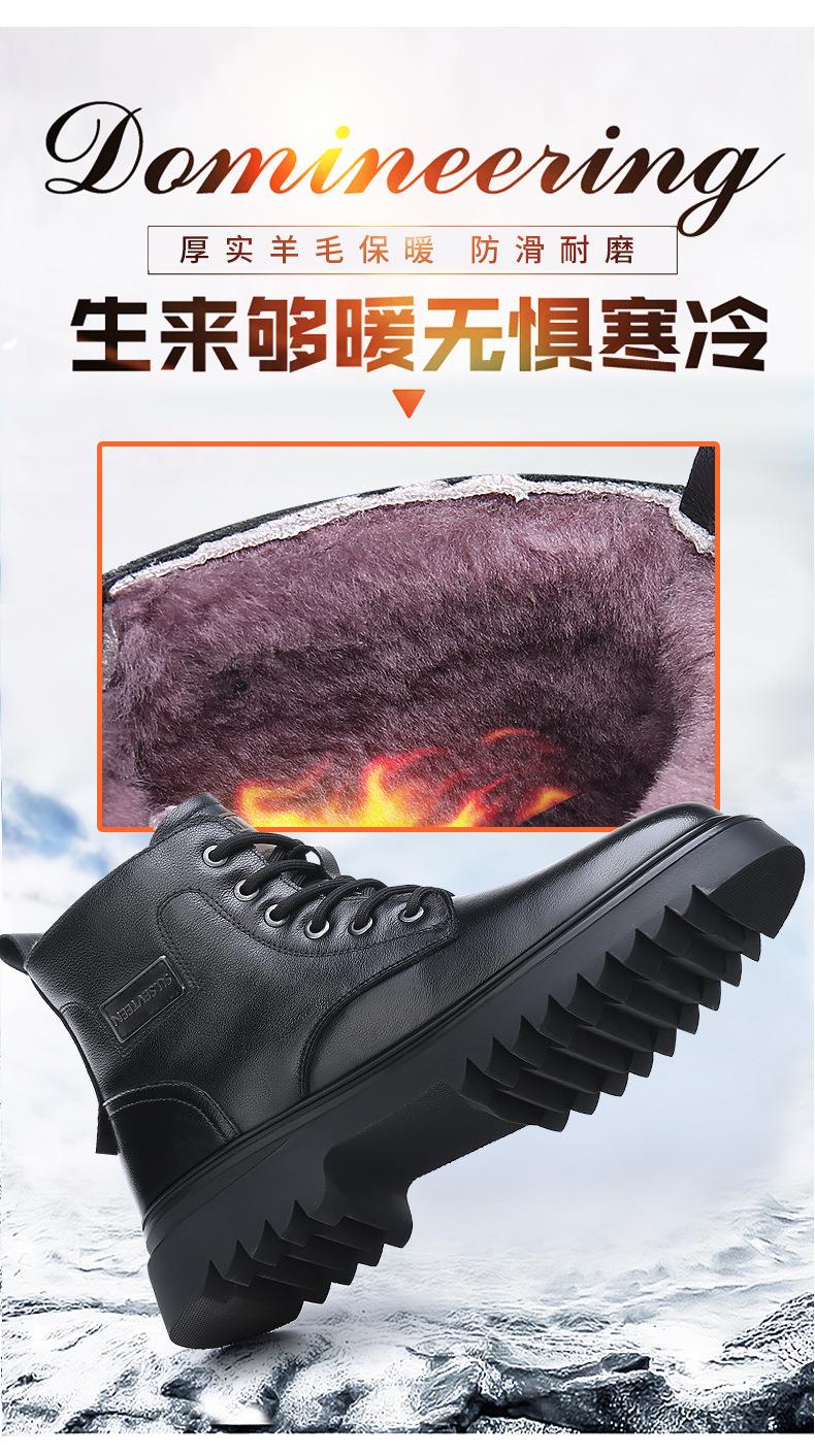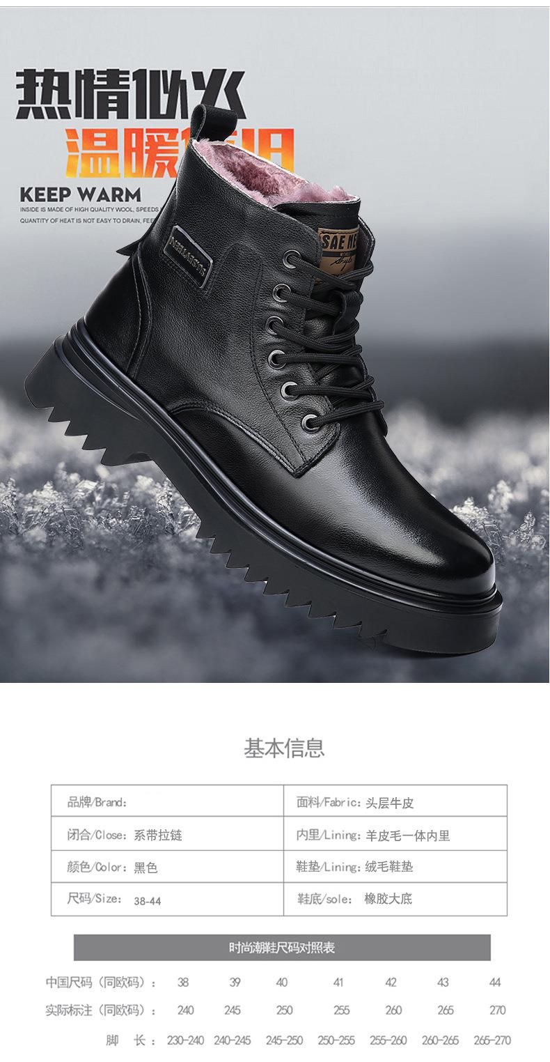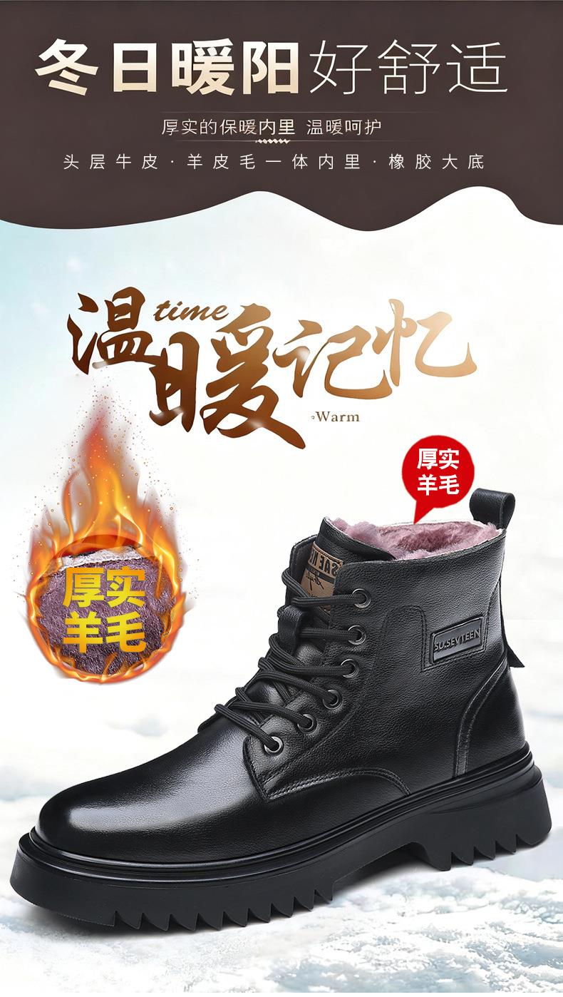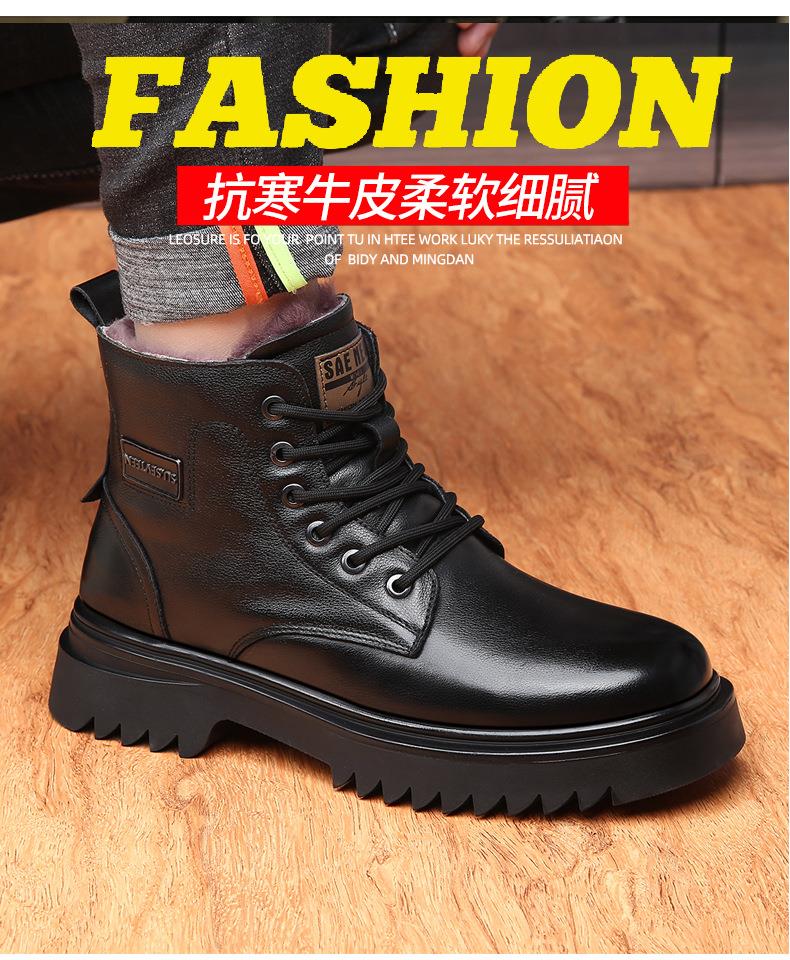头层牛皮马丁靴男款冬季羊毛一体加厚靴子男士厚底防滑保暖雪地靴