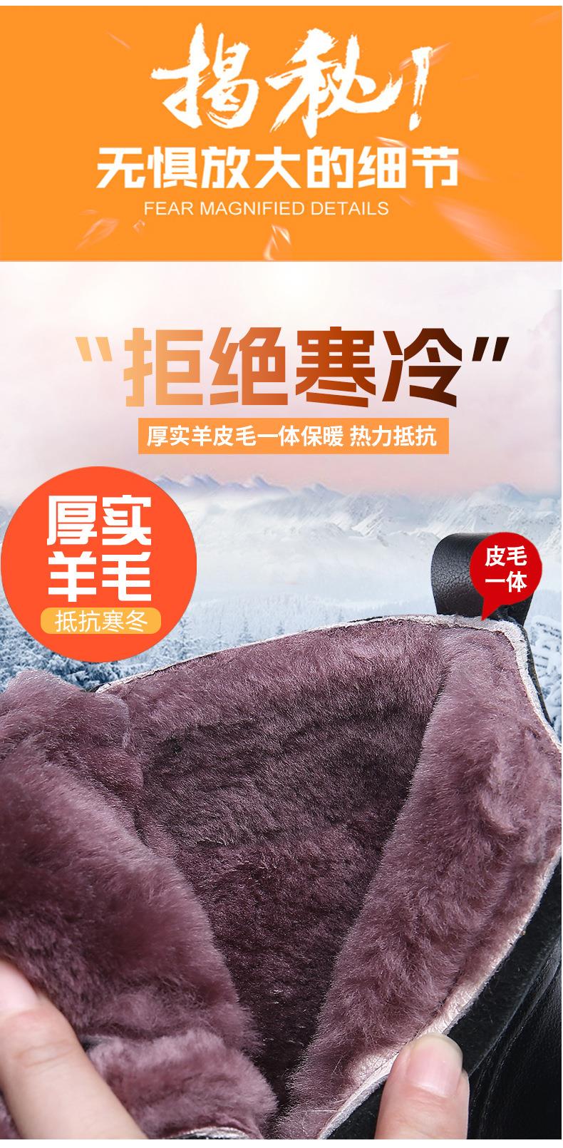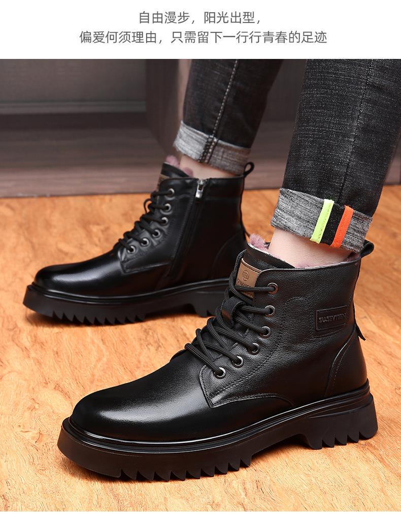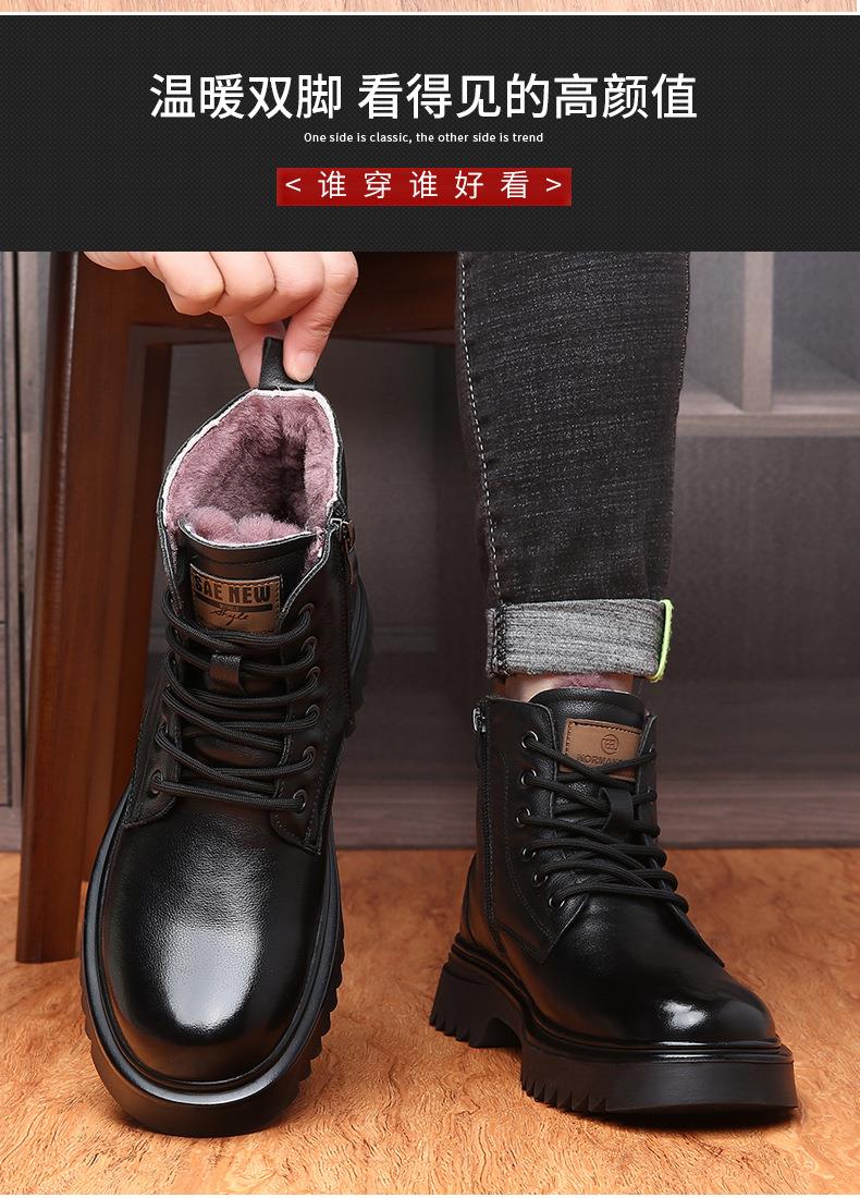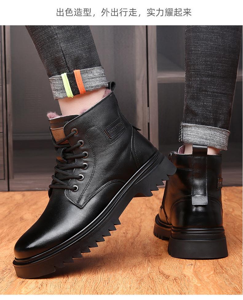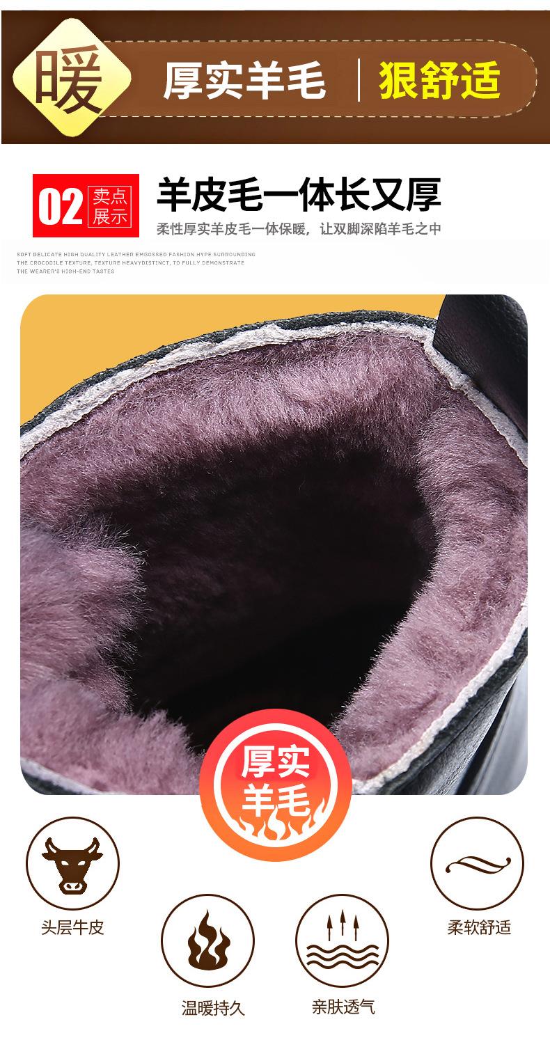 头层牛皮马丁靴男款冬季羊毛一体加厚靴子男士厚底防滑保暖雪地靴