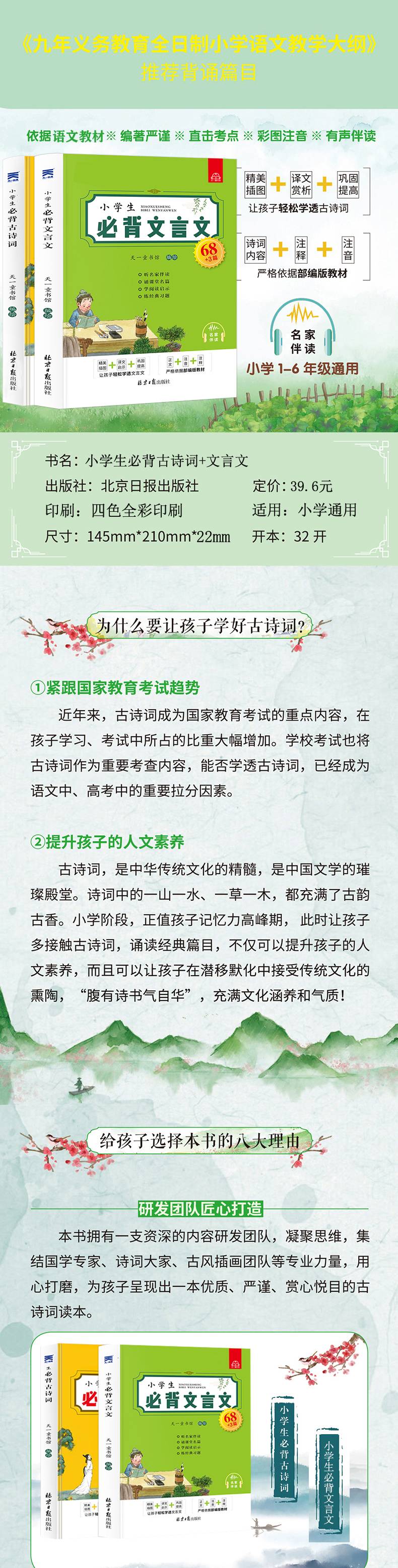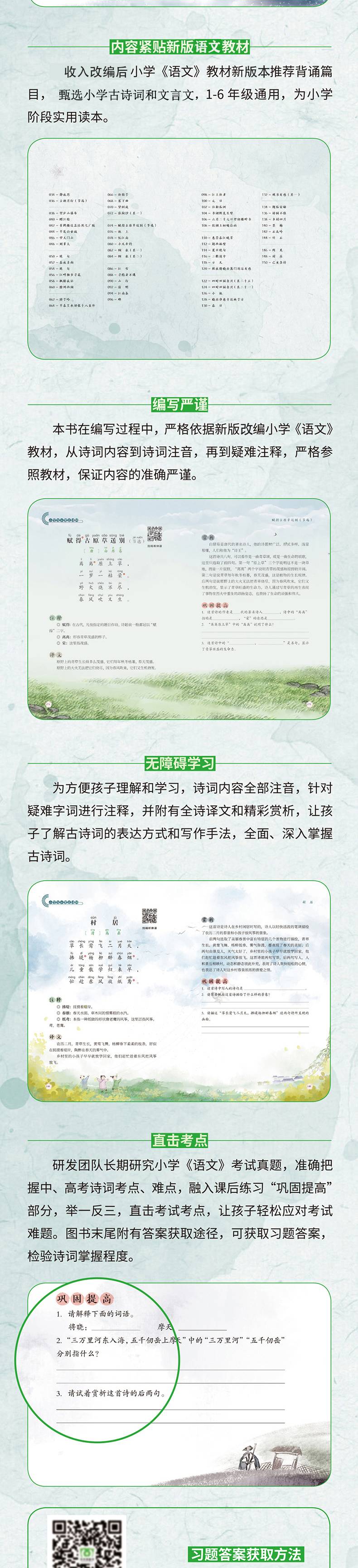 【7-12岁】《小学生必背古诗词+文言文》(全2册)名家伴读 精美插图 直击考点 小学通用