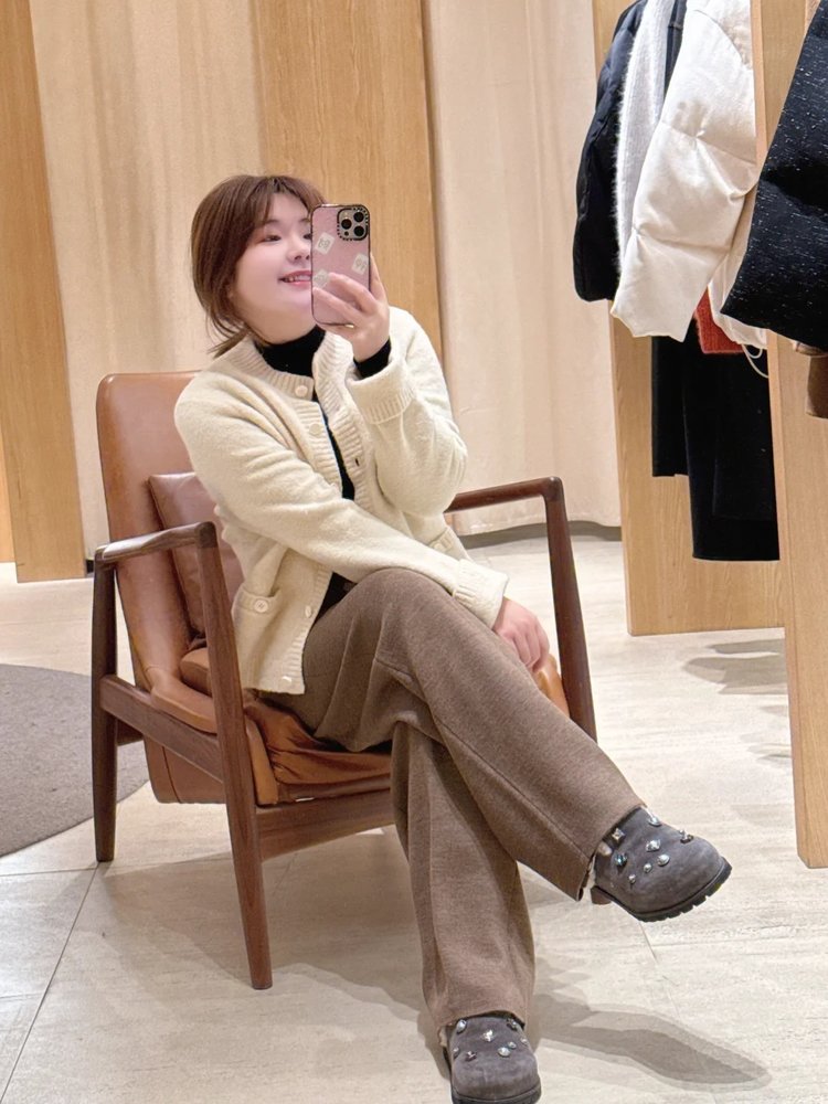 小禾同款新款牦牛绒圈圈纱圆领开衫,