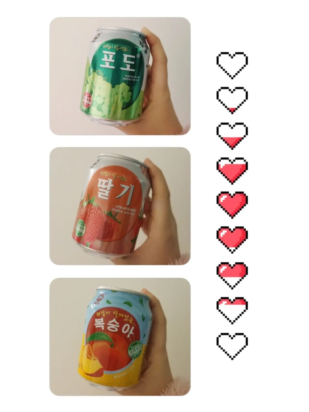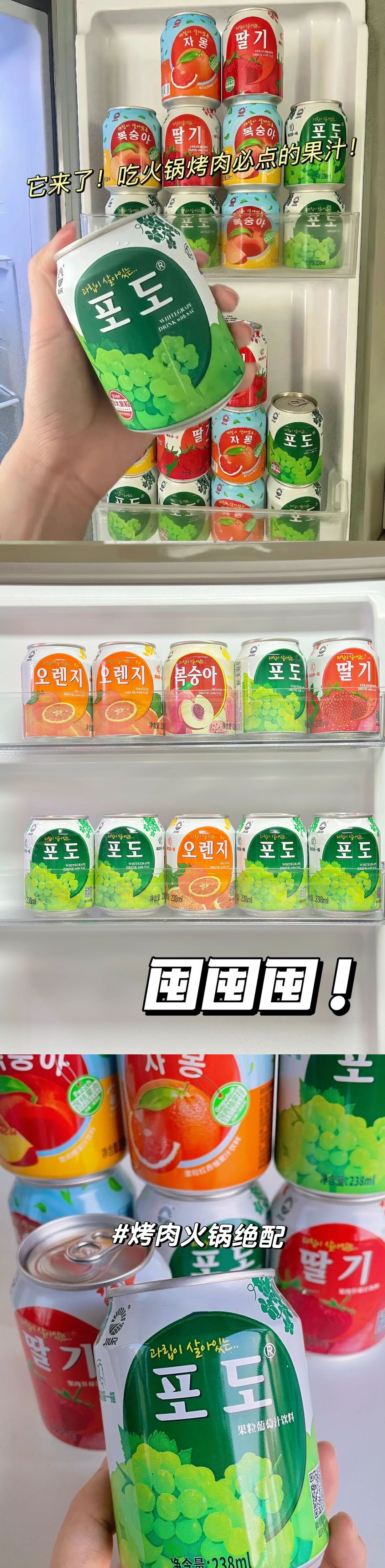 🍇葡萄:就是康师傅水晶葡萄的那个味道,只不过是加了果肉的版本,但我最爱这个口味,和烧烤、火锅这种油腻辛辣的食物都很搭;