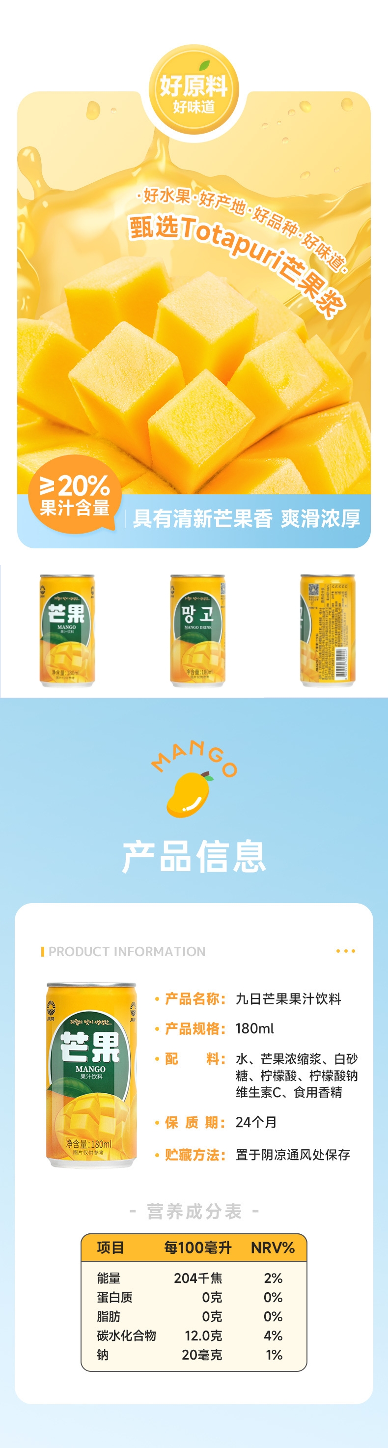 选用原产于印度的图塔普利(Totapuri)芒果浆,富含维生素A和为维生素C,且含有钙、铁等多种矿物质元素。