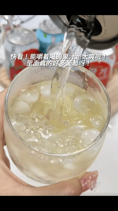 对了,喝前记得摇一摇,这样每口都能喝到果肉🍇太爱了!