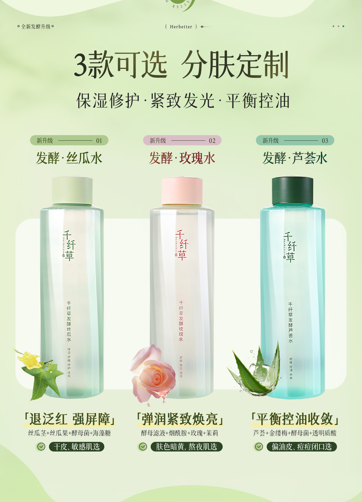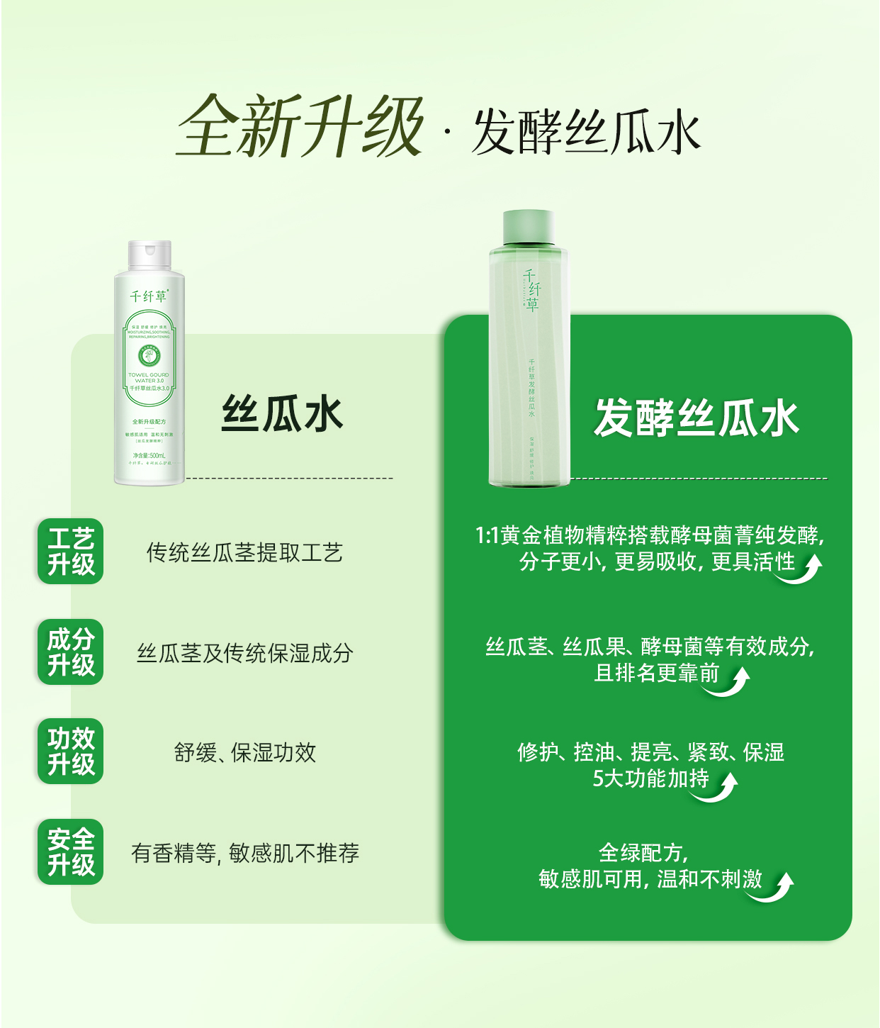 【2瓶59.8丨3瓶87.9】千纤草发酵丝瓜水/芦荟水/玫瑰水500ml(买就送无水精华小样)