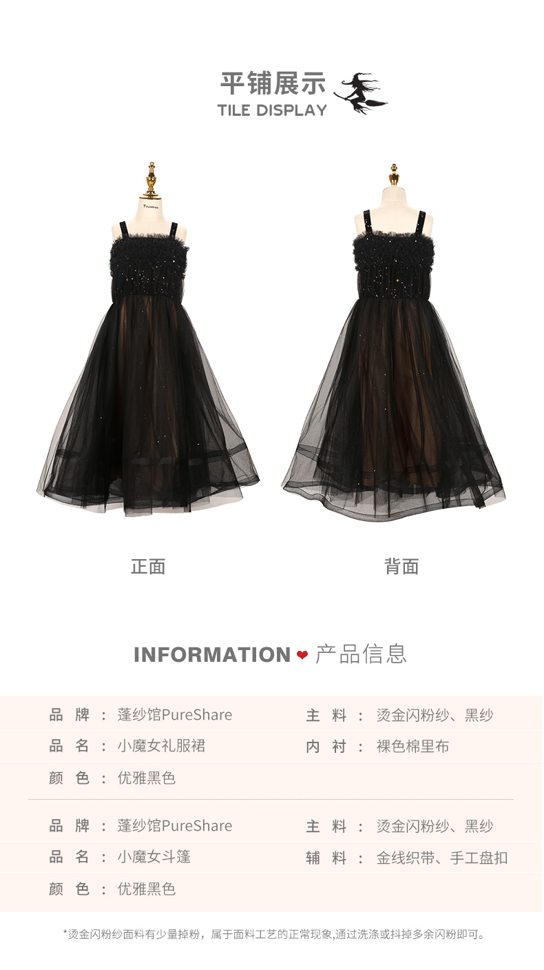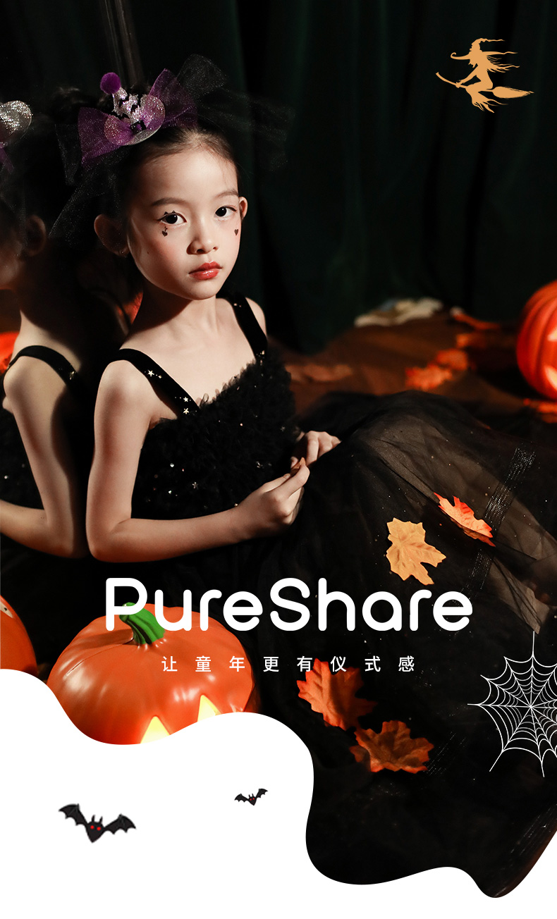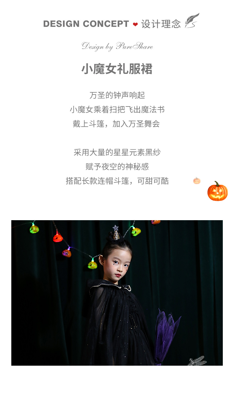 非质量问题不退换哦~pureshare 女童连衣裙新款秋装节日万圣派对公主裙礼服-小魔女