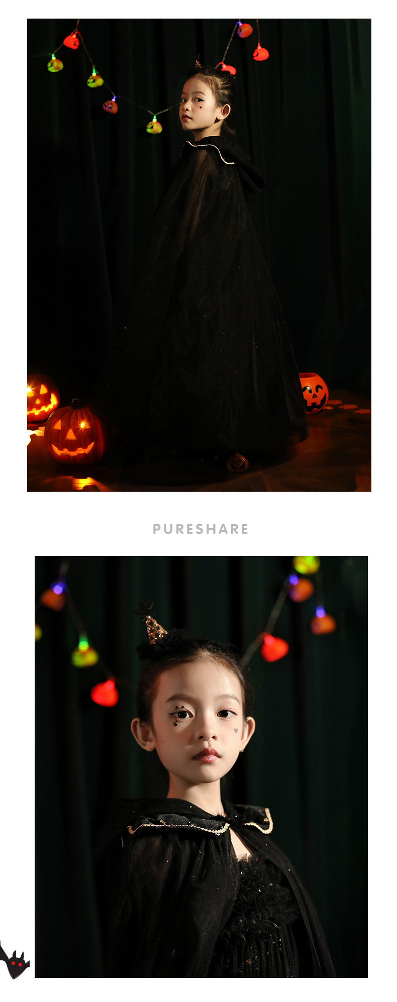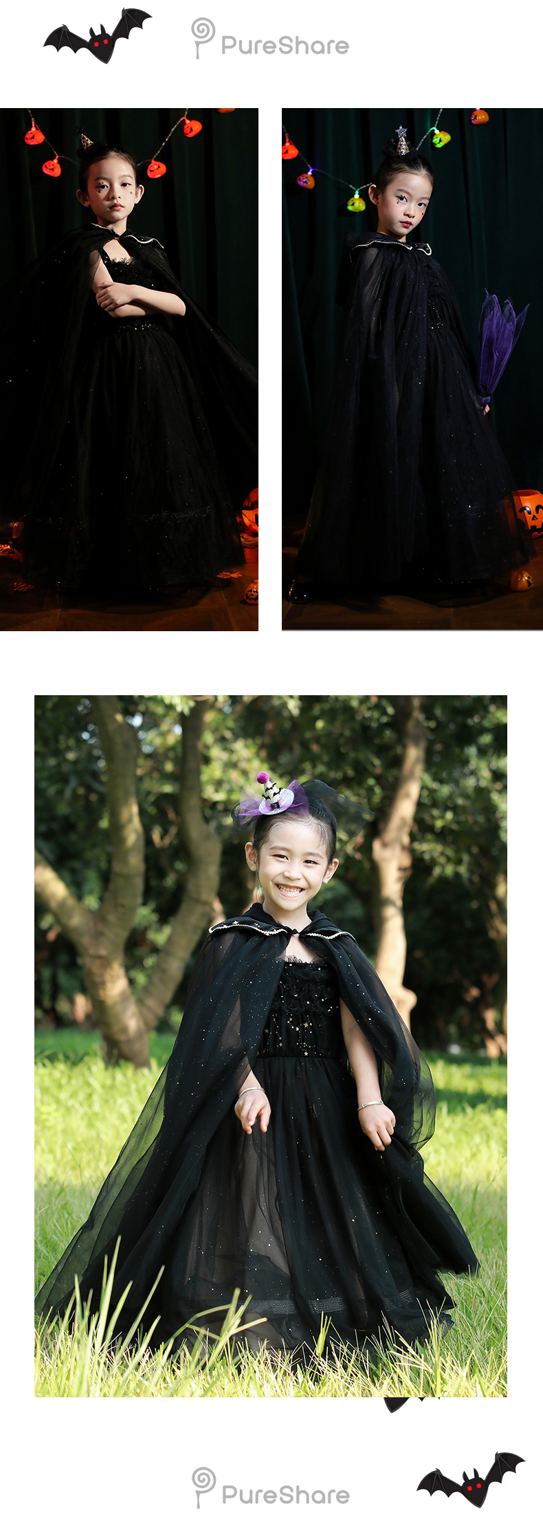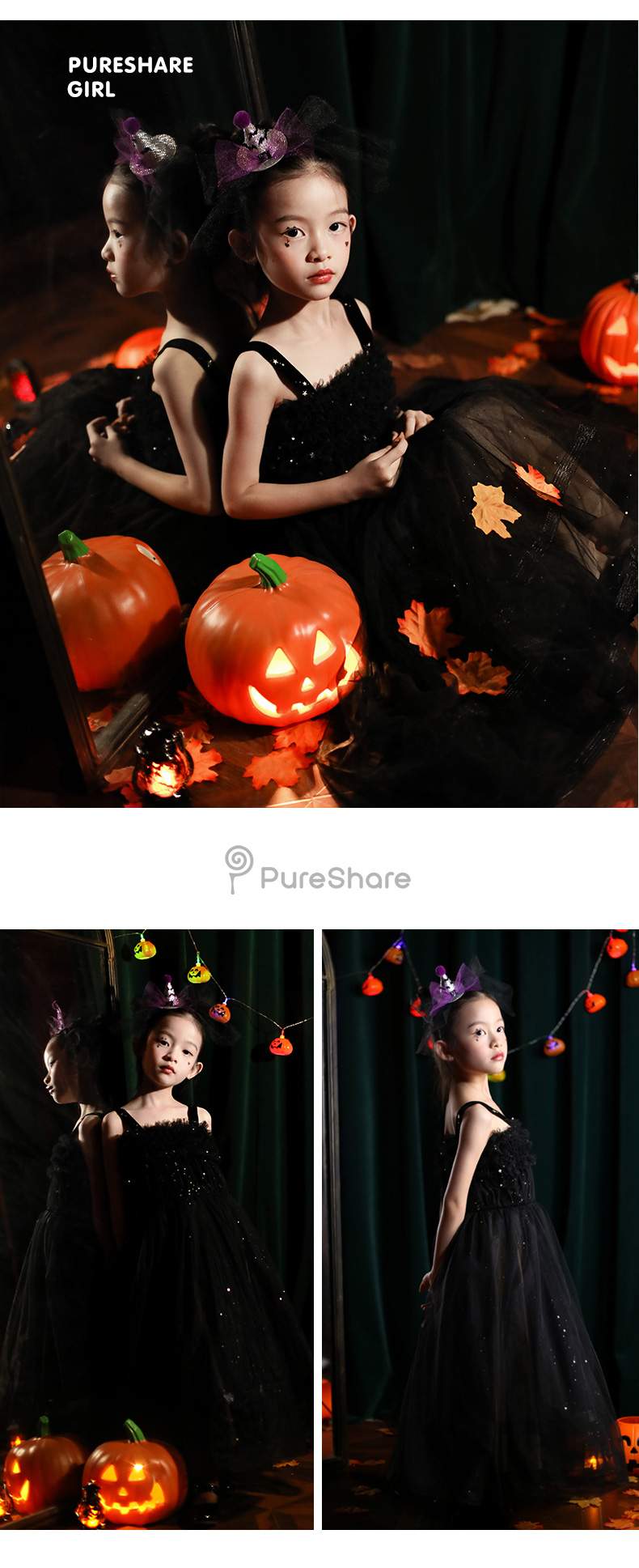 非质量问题不退换哦~pureshare 女童连衣裙新款秋装节日万圣派对公主裙礼服-小魔女