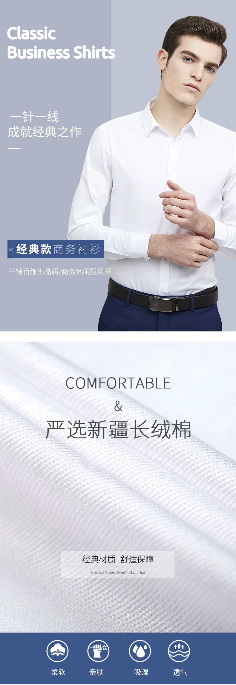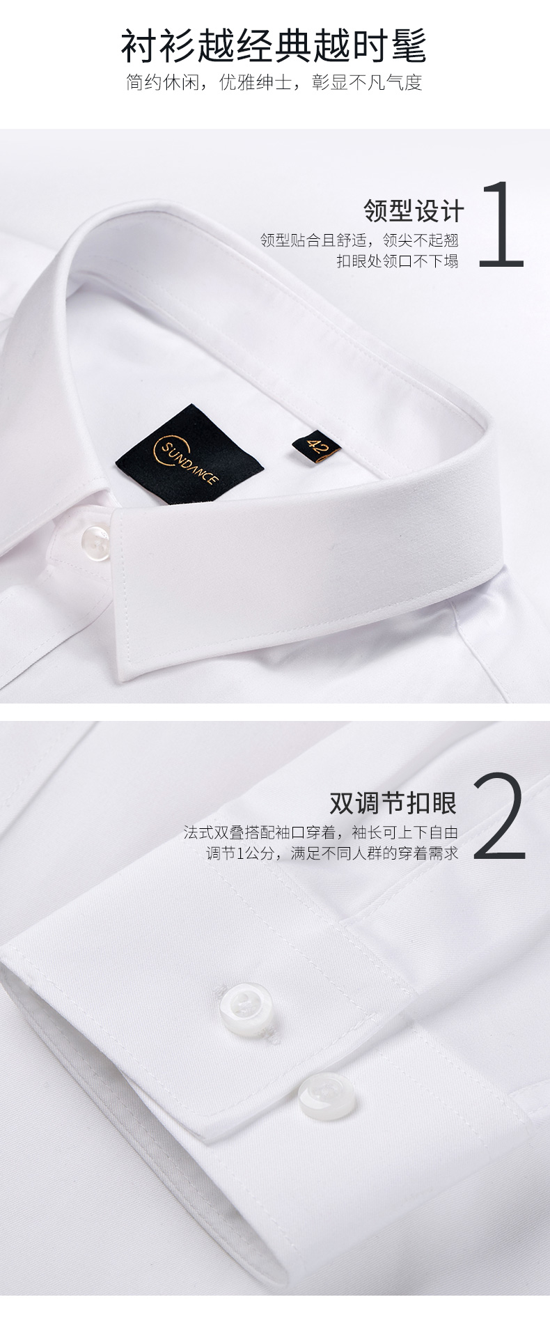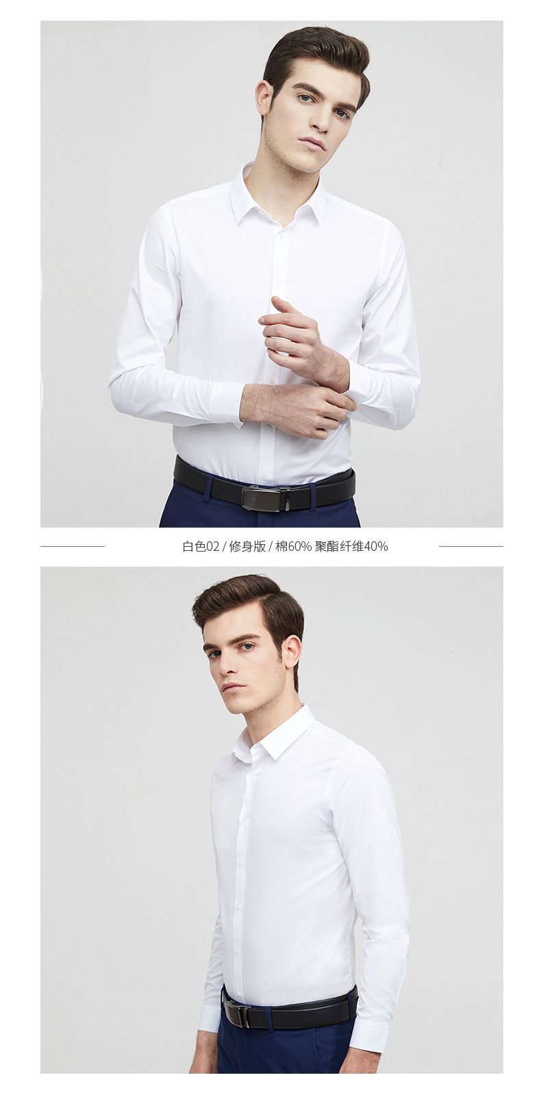 圣得西白色正装长袖衬衣男春季新款男纯色商务休闲品牌衬衫2032952801