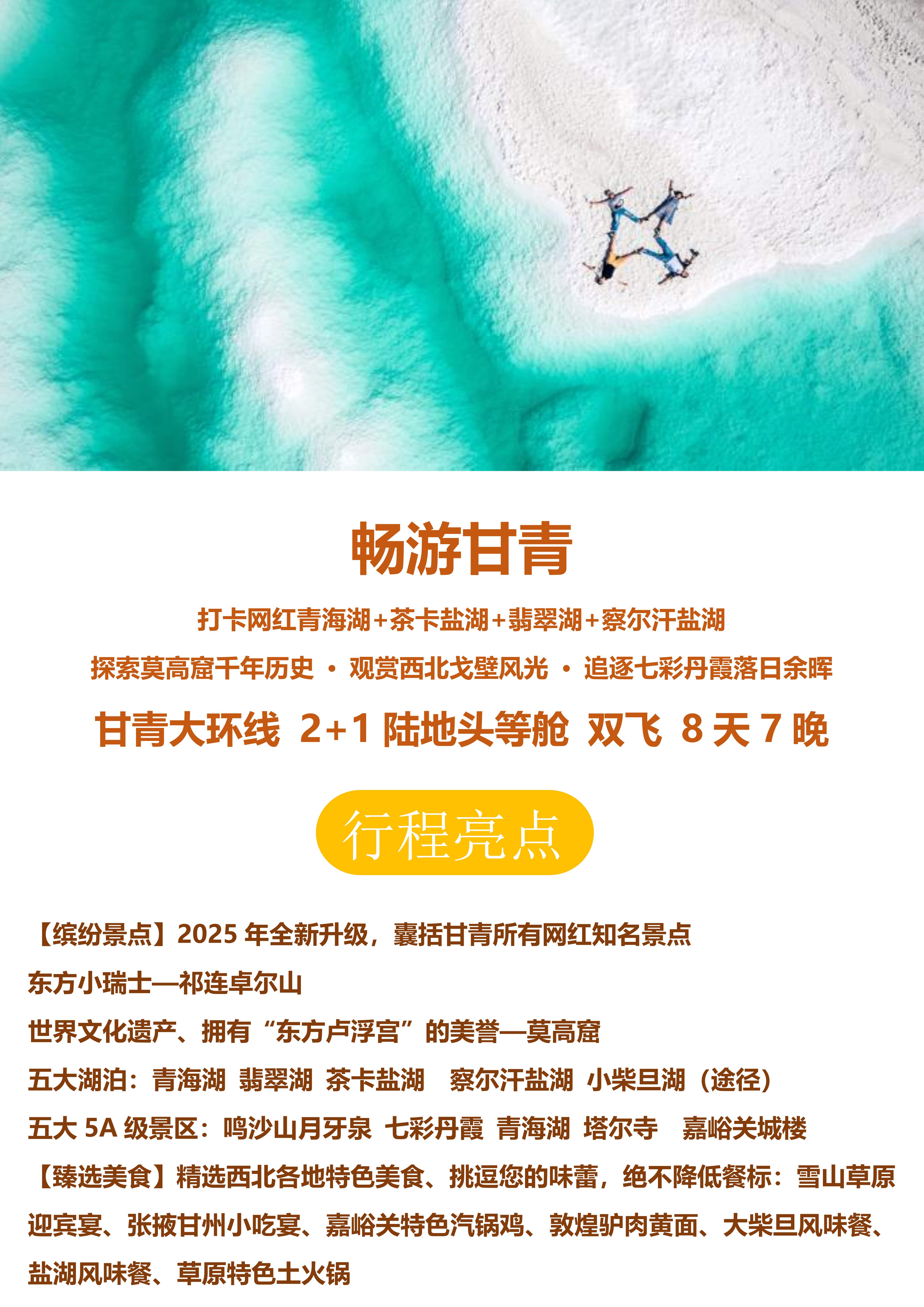 【畅游甘青】甘青大环线 2+1陆地头等舱 双飞 8天7晚